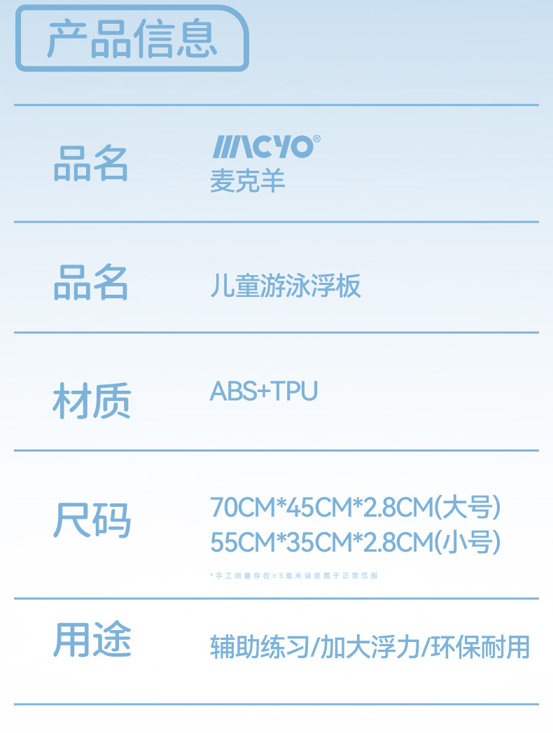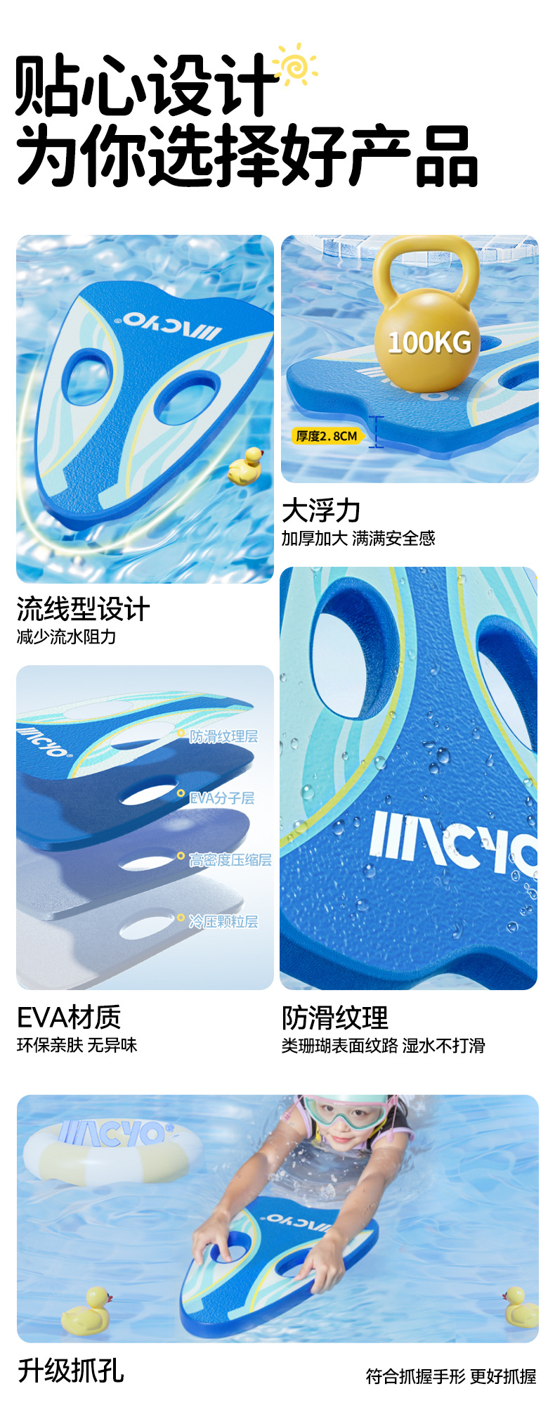 【加大加厚 湿水不打滑】MACYO/麦克羊儿童漂浮板 初学者游泳打水板 学游泳辅助装备