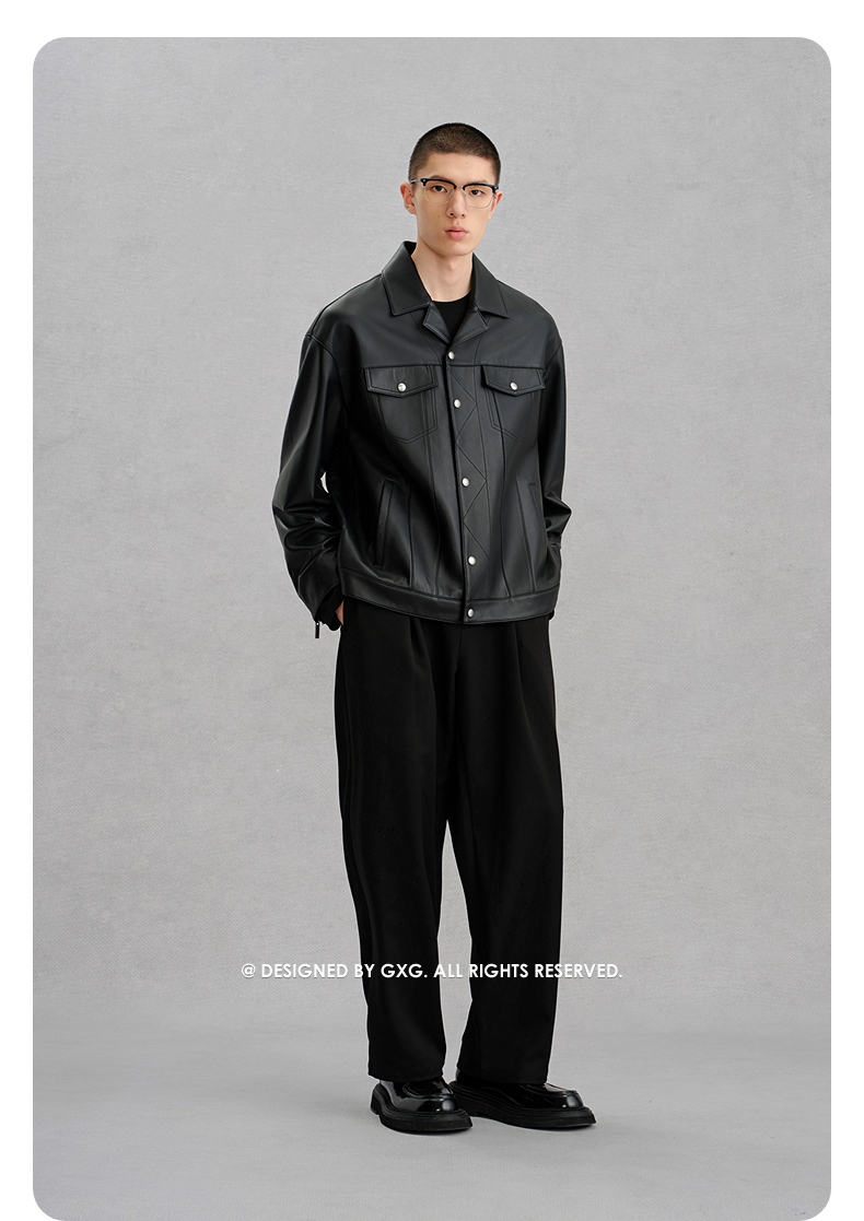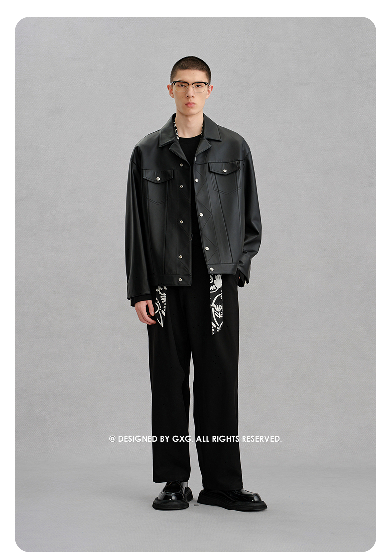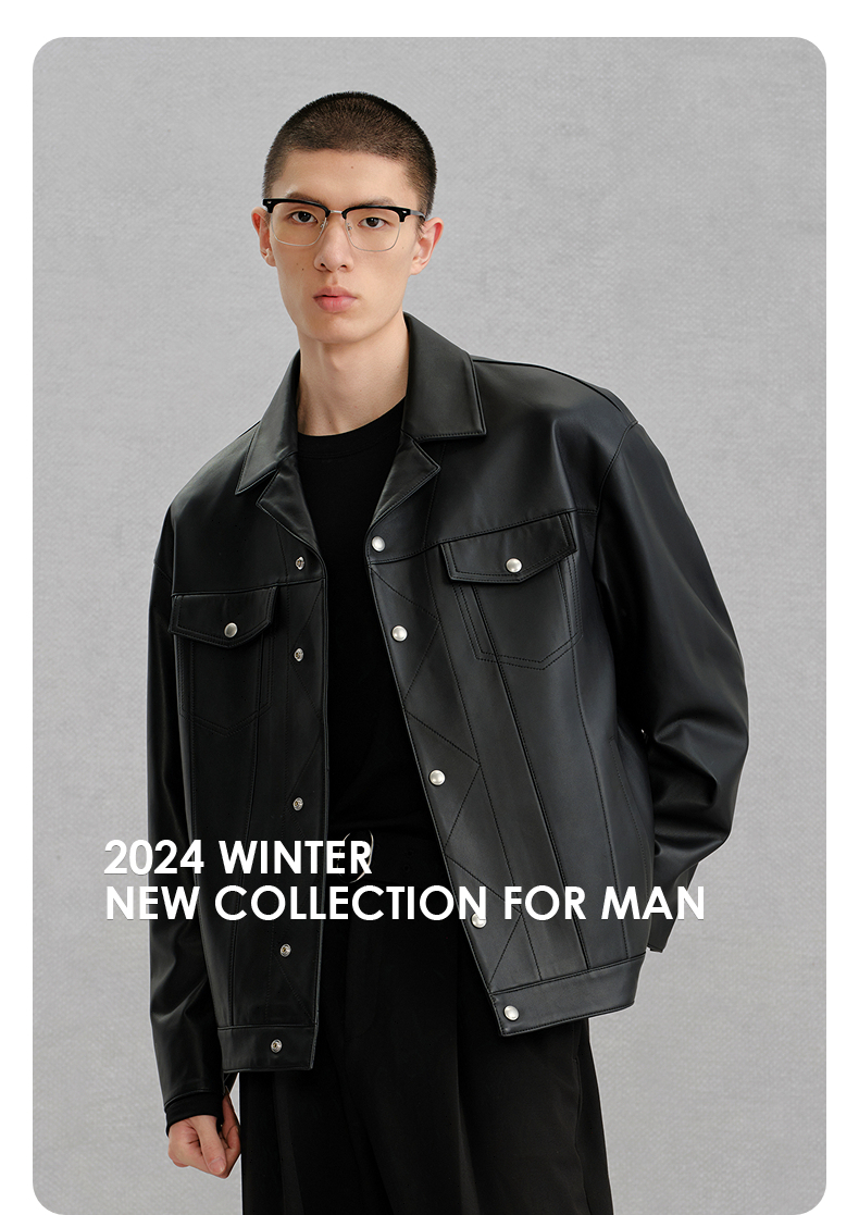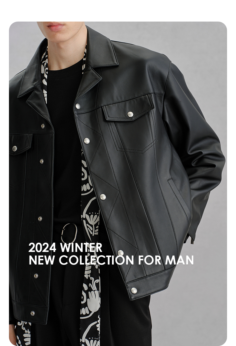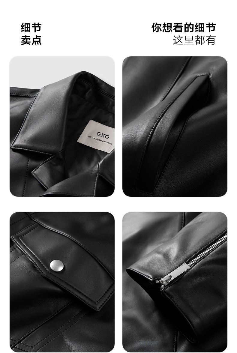 GXG男装 黑色真皮皮衣夹克男外套24冬季热卖夹克 G24X124001