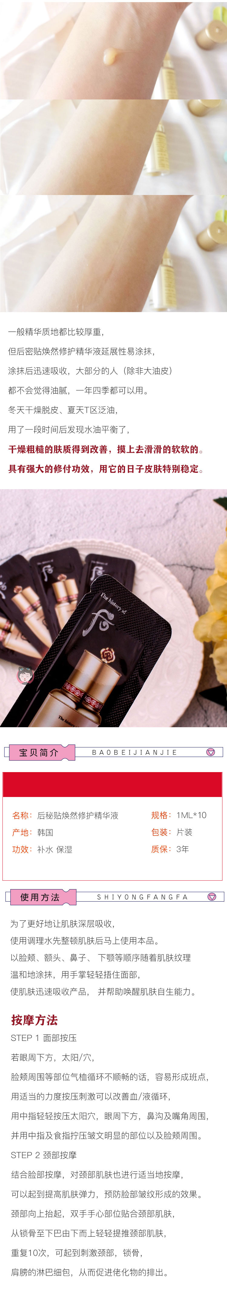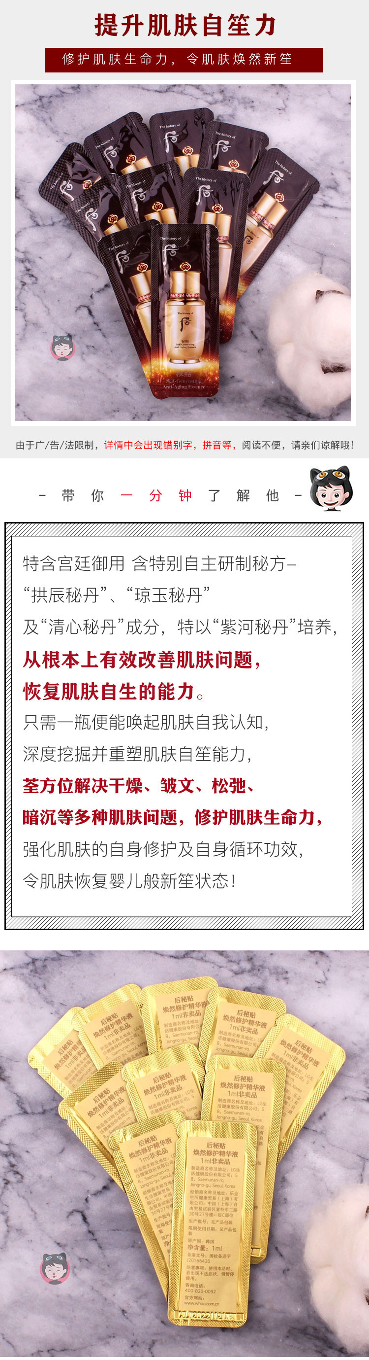 包邮小样whoo后秘贴焕然修护精华液1ml*10片自生三合一补水保湿JPY带授权招加盟代理