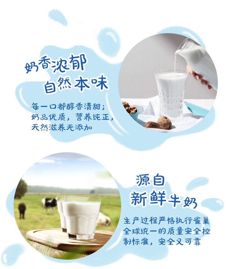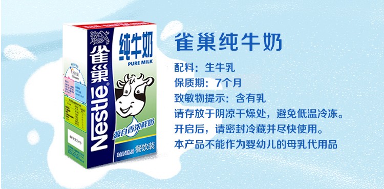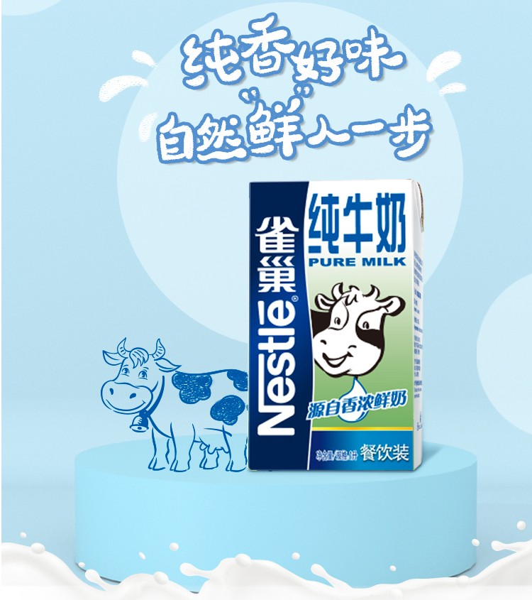 雀巢纯牛奶 全脂牛奶 1L纯牛奶 鲜牛奶 咖啡打奶泡餐饮装