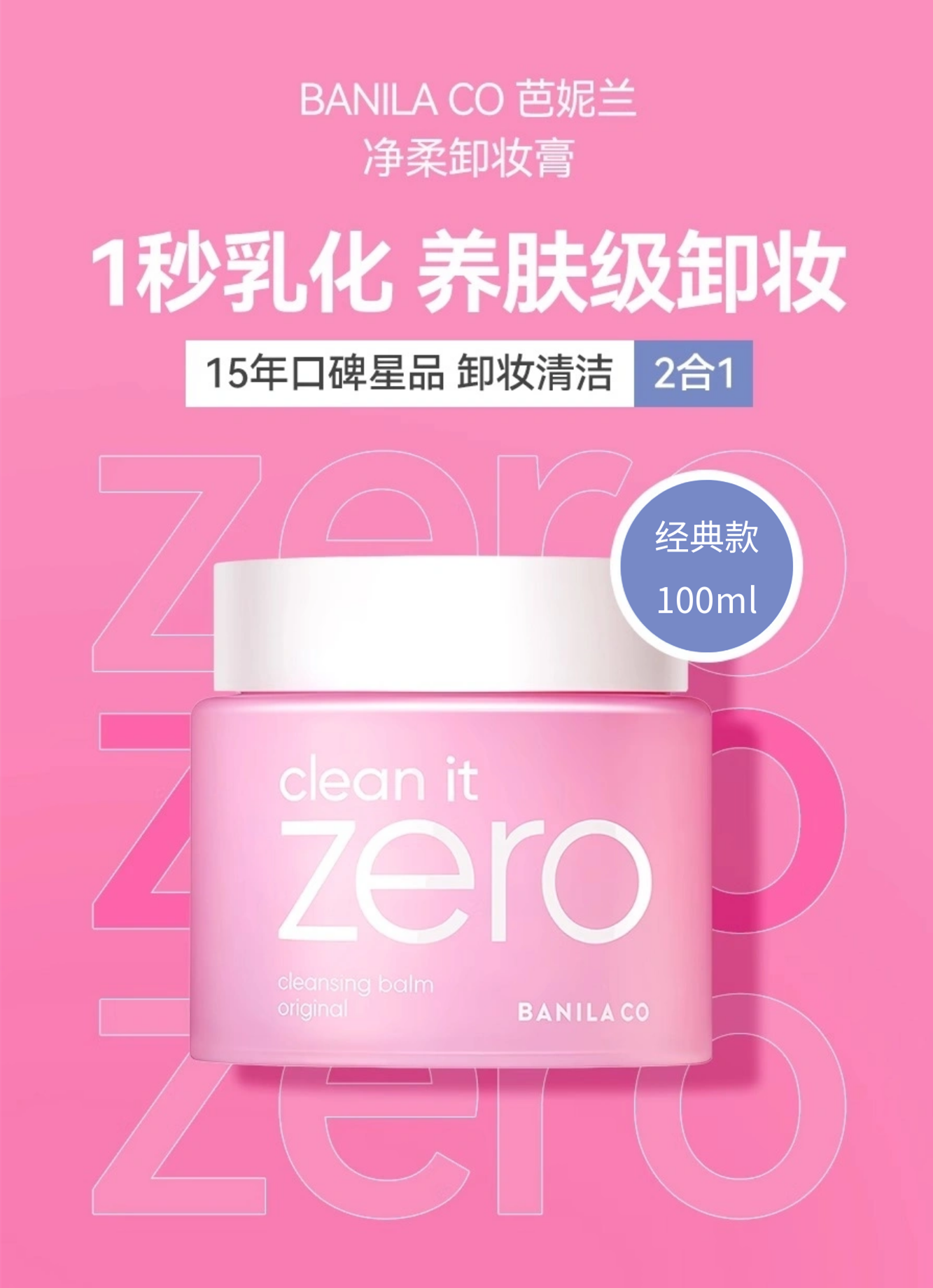 芭妮兰(BANILA CO)净柔卸妆膏经典款100ml 温和快速脸部眼唇可用