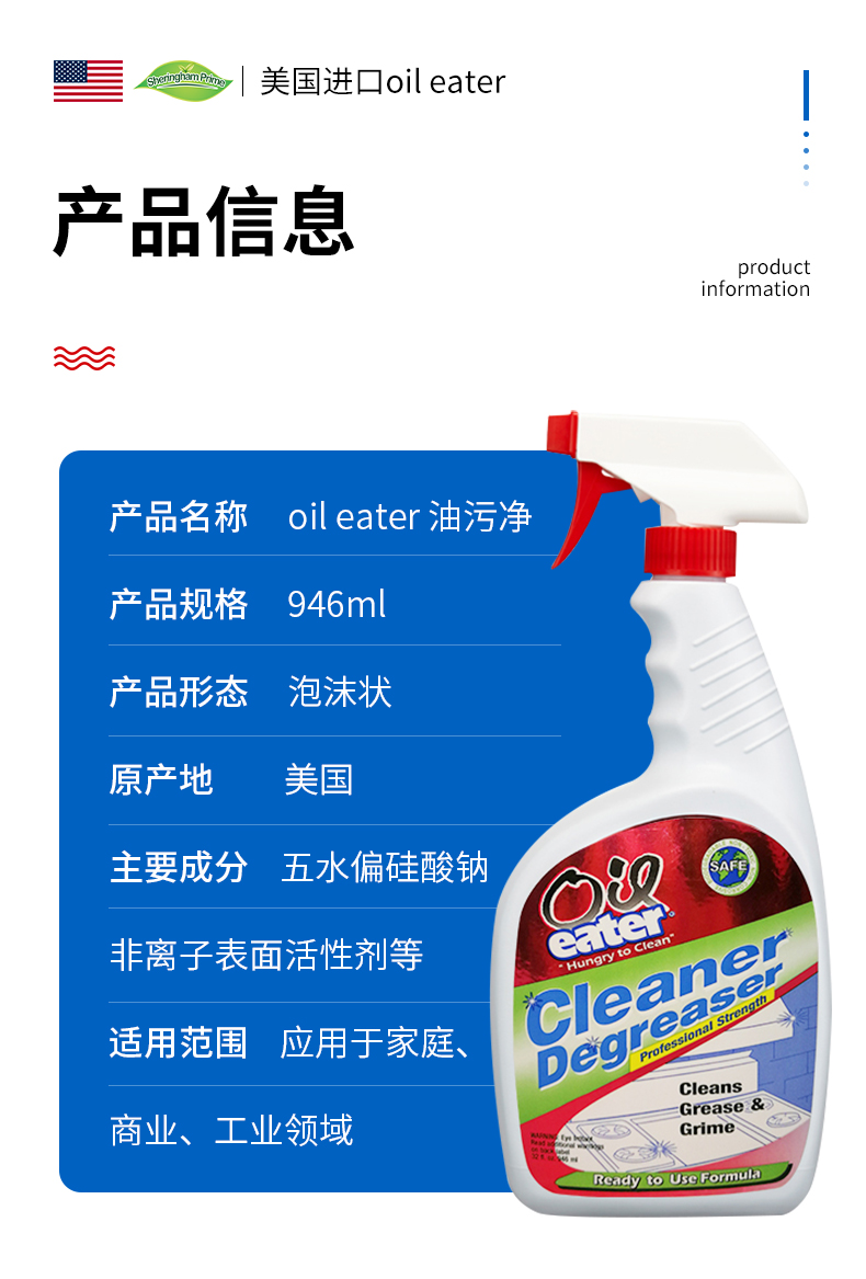 【美国oil eater浓缩油污净】2瓶装 高效分解油脂 安全温和