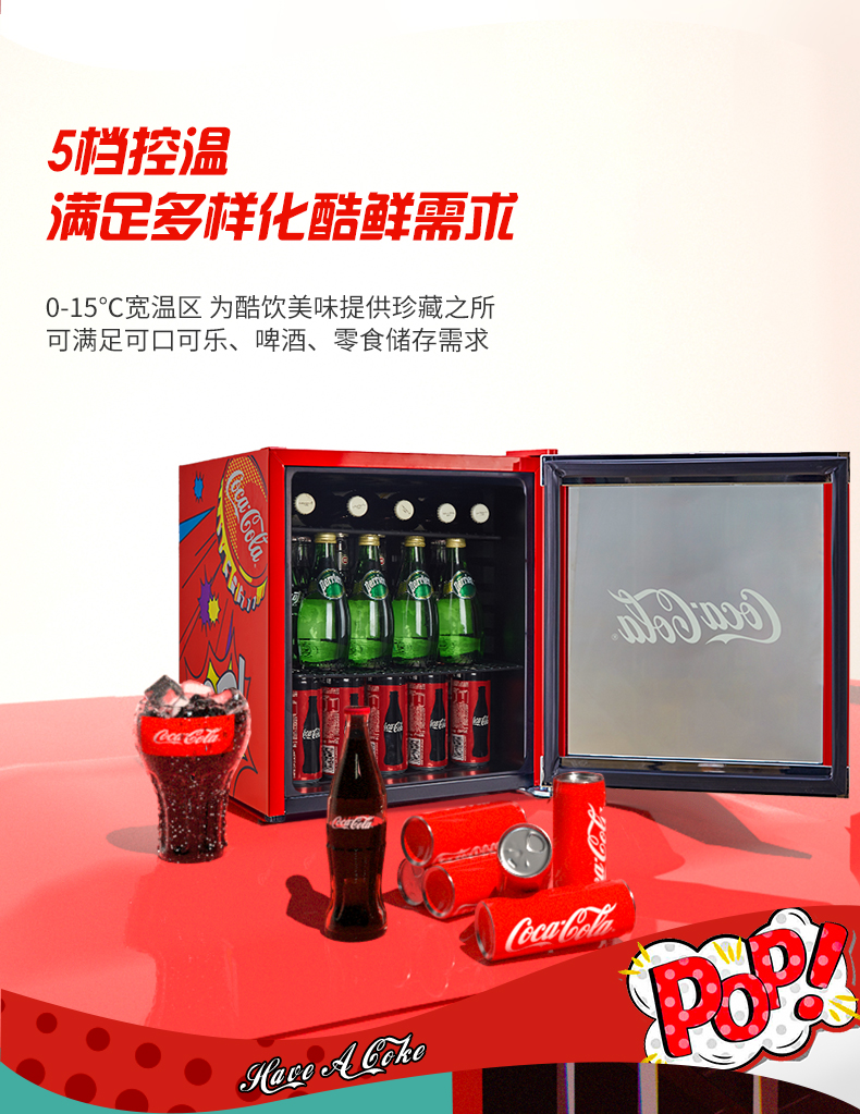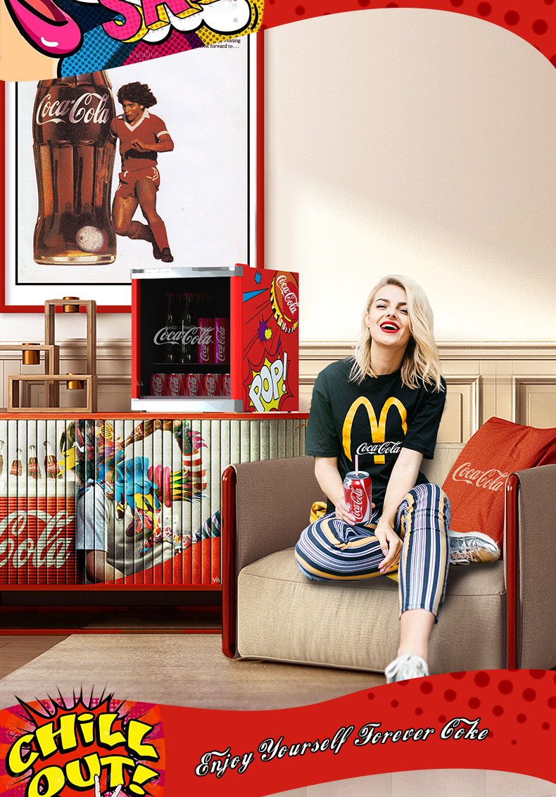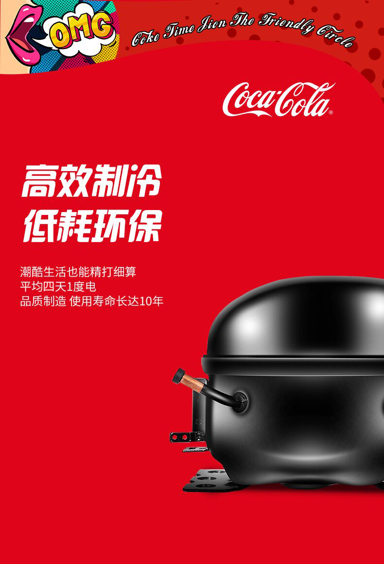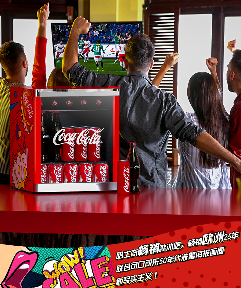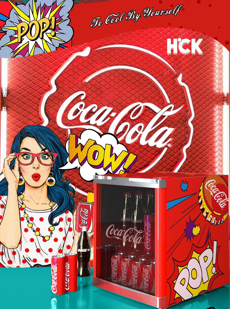 HCK哈士奇 SC-46BUA 冰吧可口可乐联名款家用客厅小型冰柜冰箱