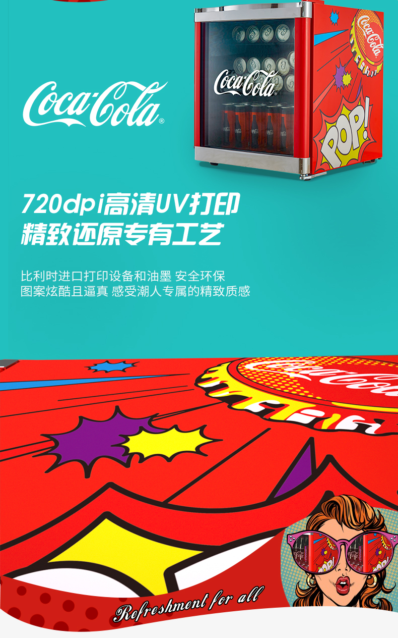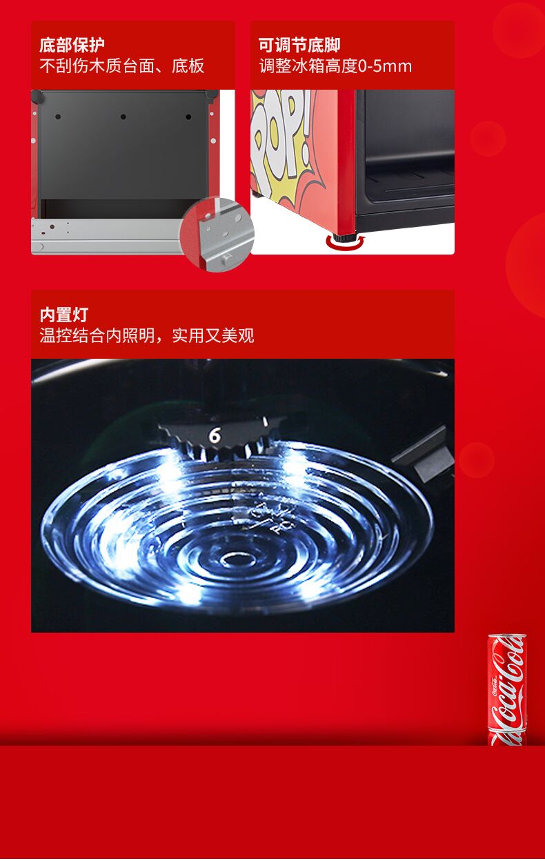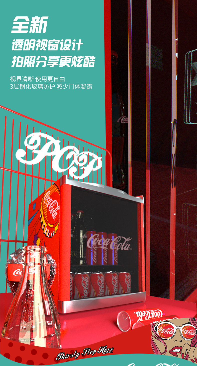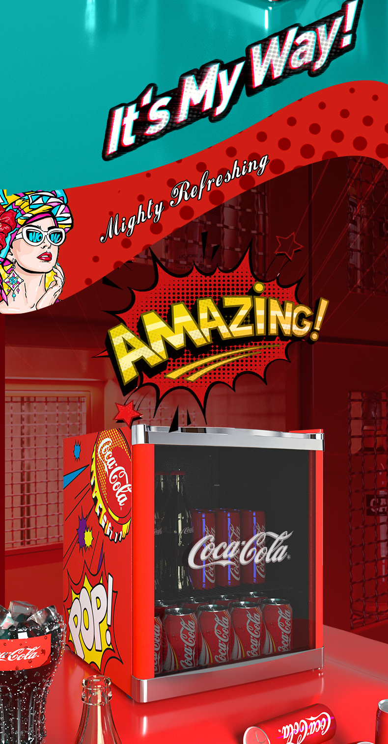 HCK哈士奇 SC-46BUA 冰吧可口可乐联名款家用客厅小型冰柜冰箱