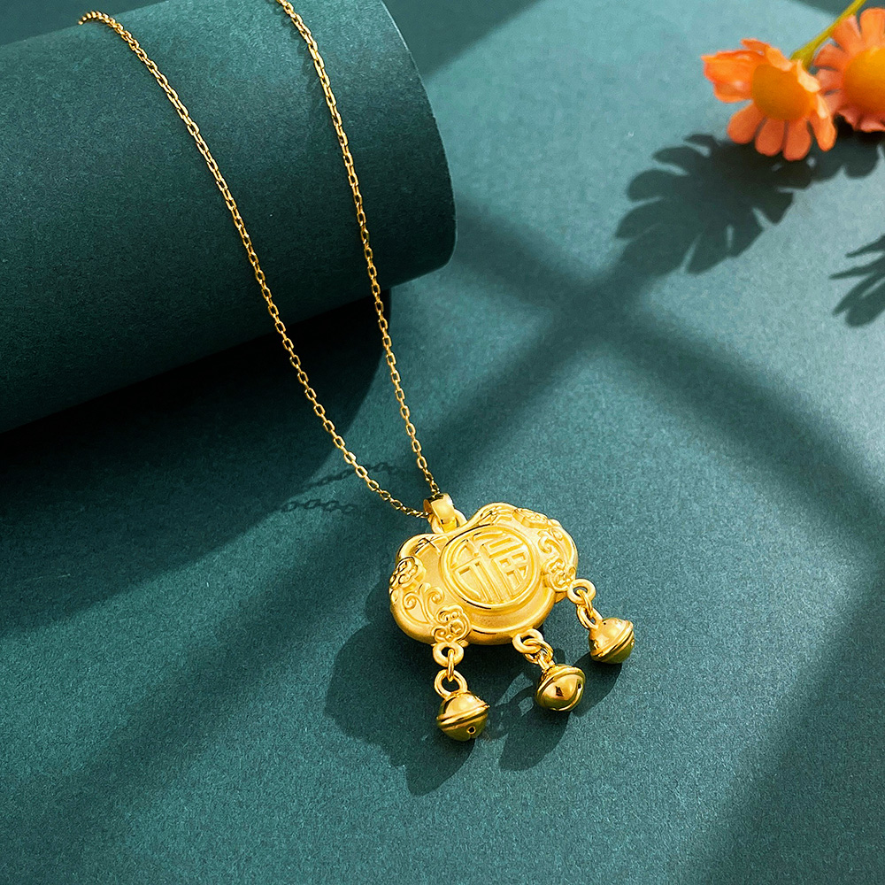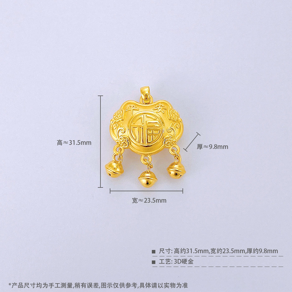 【限时克减150元】足金 3D硬金空心铃铛平安快乐福字锁包吊坠(不含链)(AR3DDZ00193)(预售产品下单后不退款不退货不换货不补差价)(预售产品下单后不退款不退货不换货不补差价)