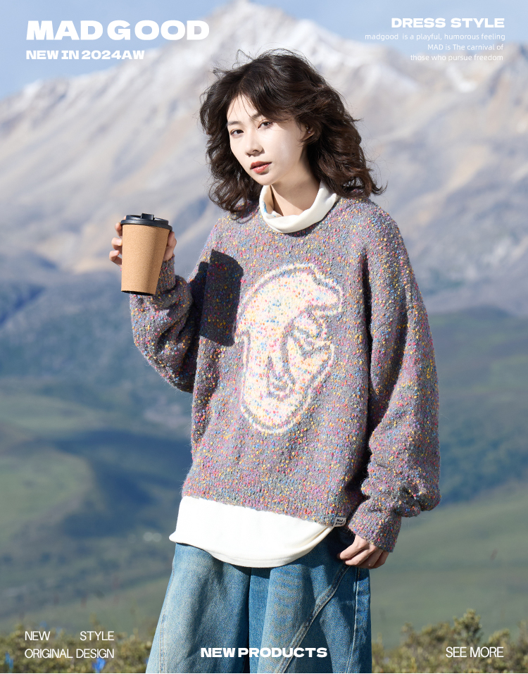 马得工地/MDGDMY244338/海豚提花彩点圆领毛衣