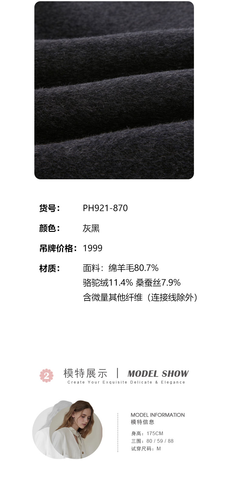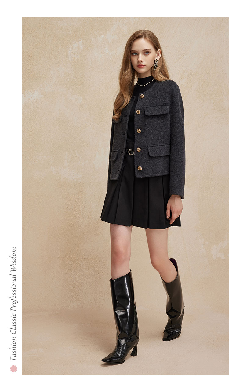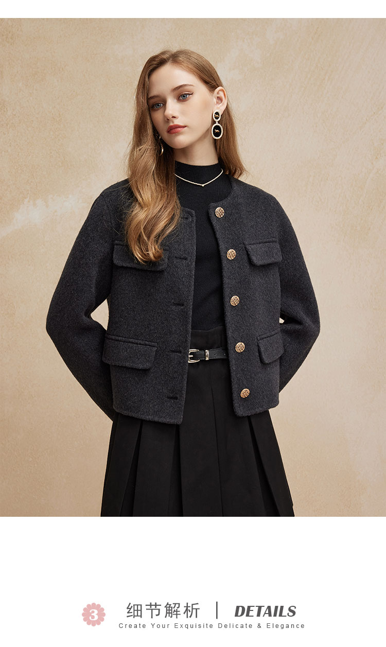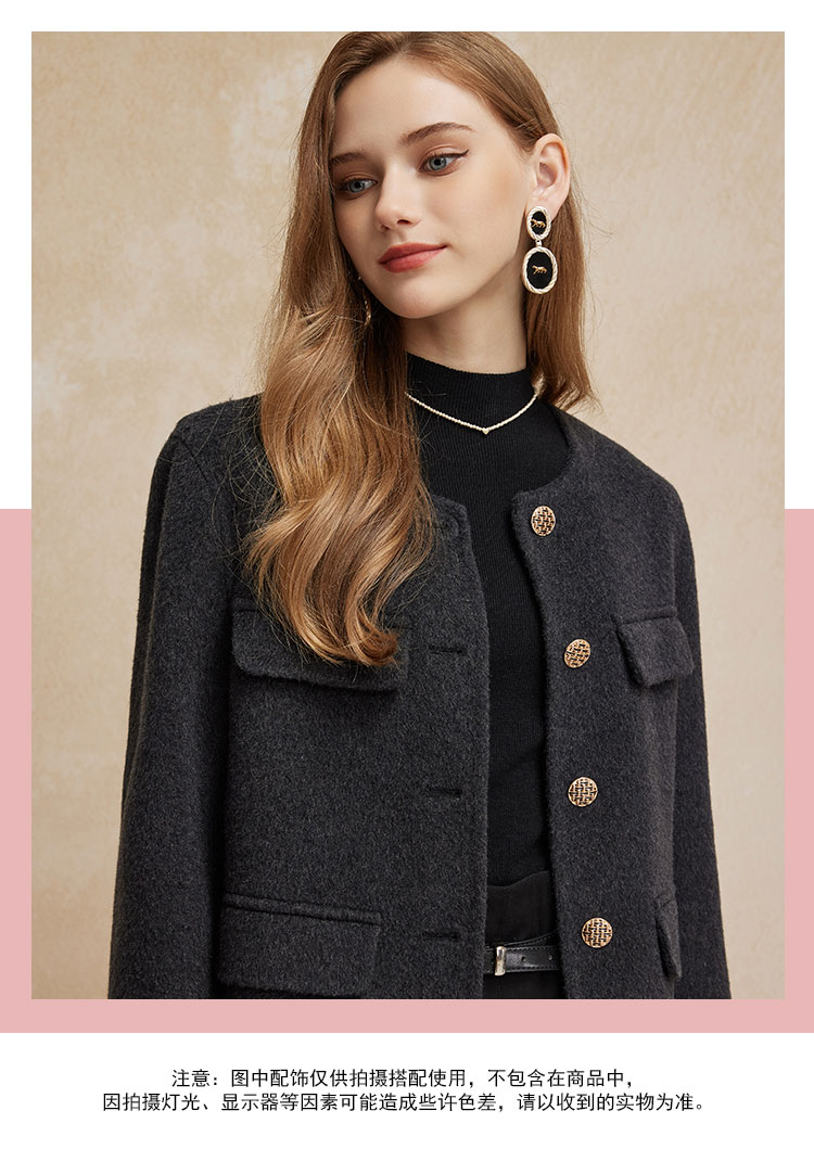 PH92124新款小香风精致白领短款显瘦双面呢羊毛大衣
