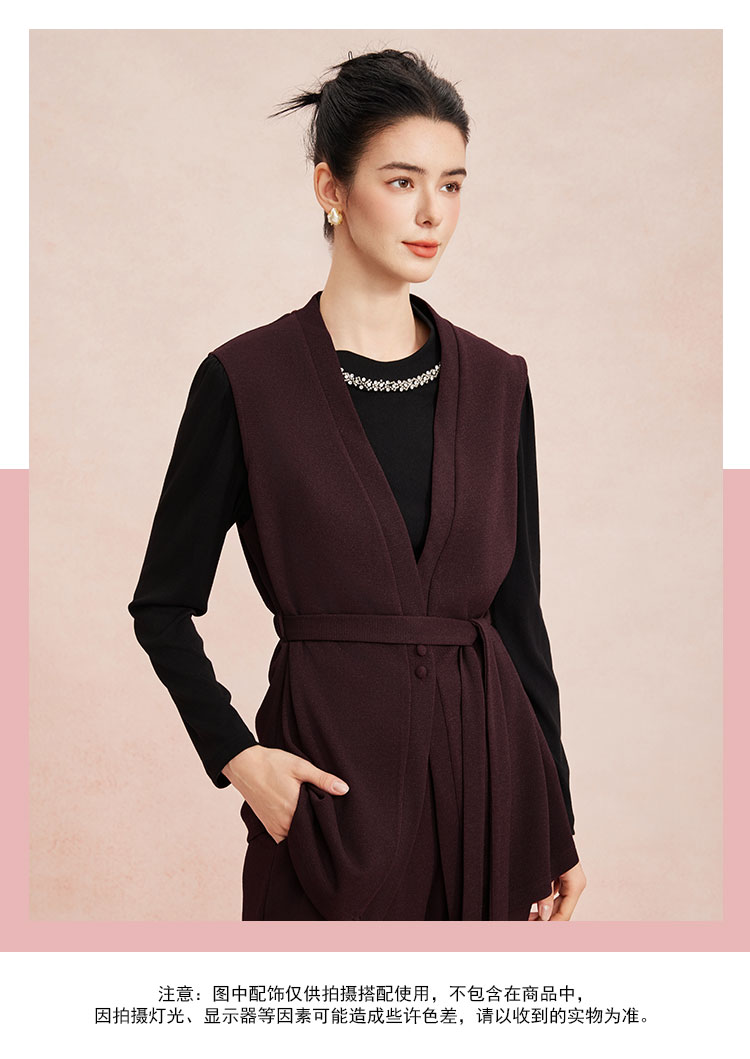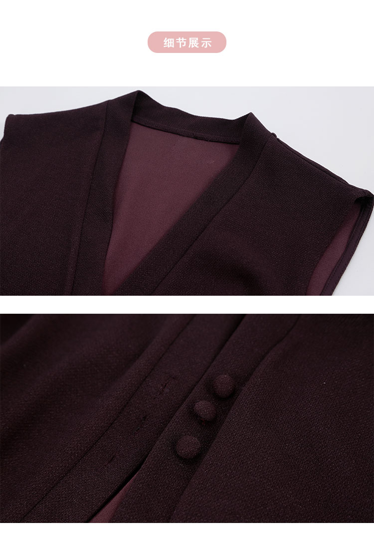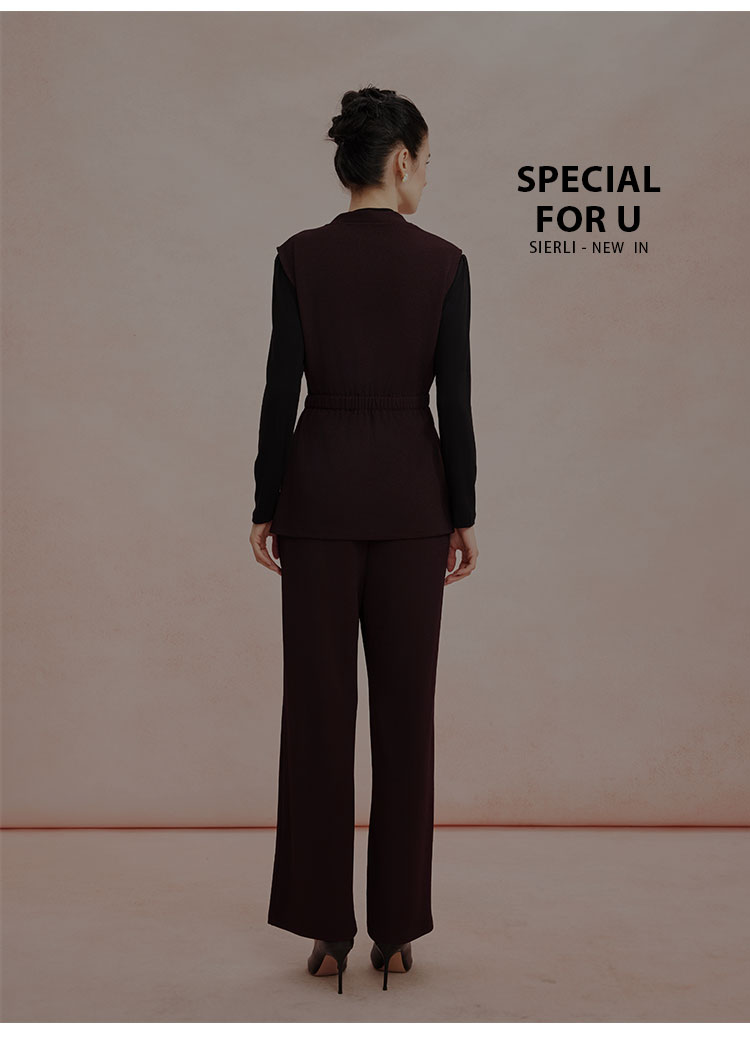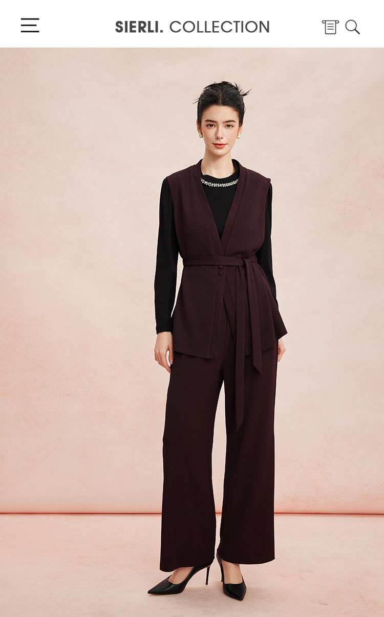 RE401斯尔丽26新款小香风V领马甲外套+打底衫+直筒长裤免搭配三件套装