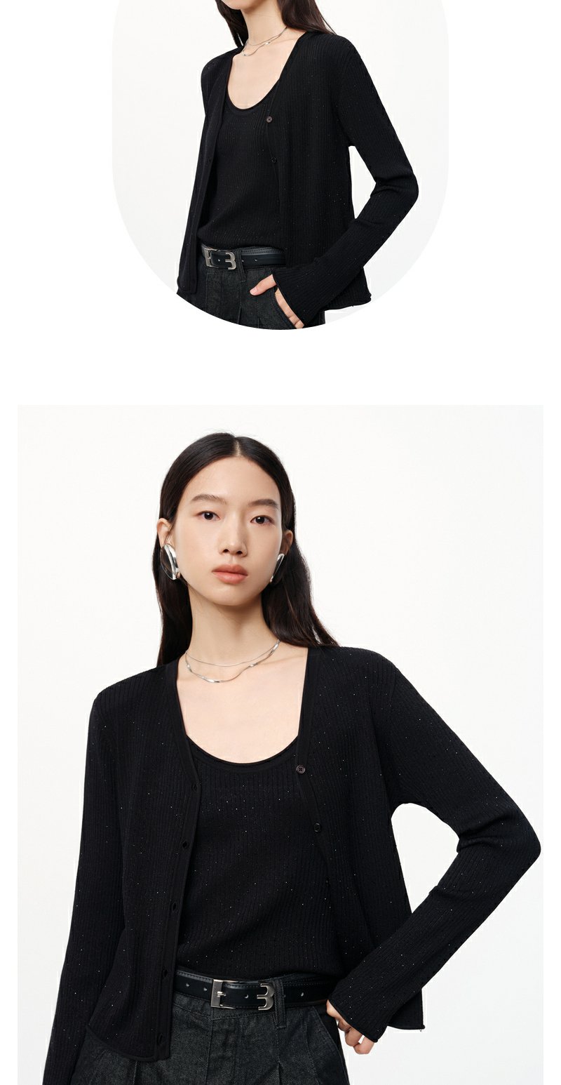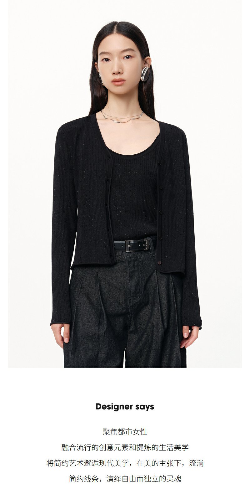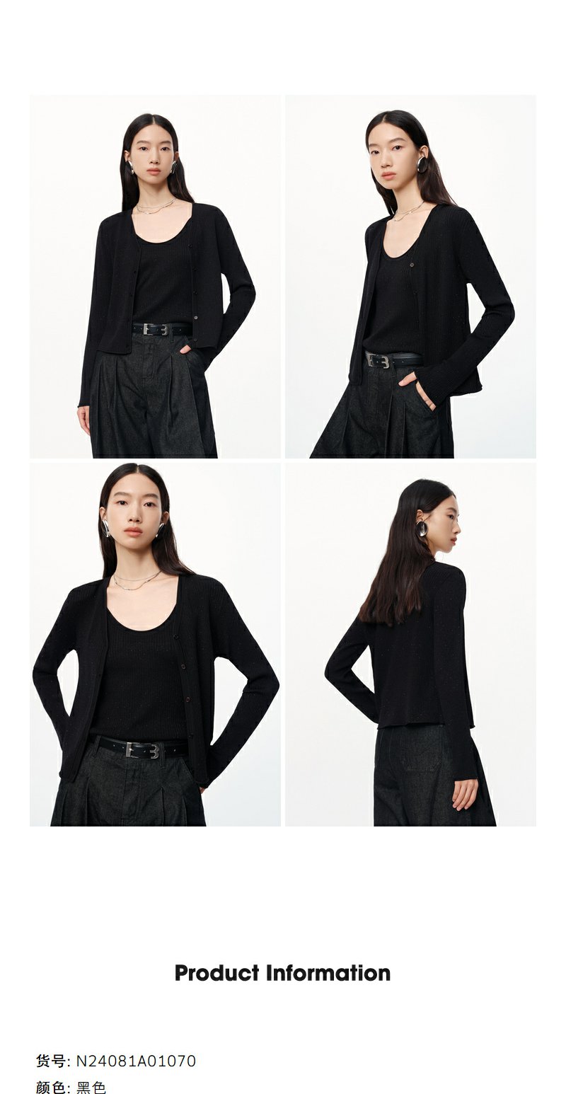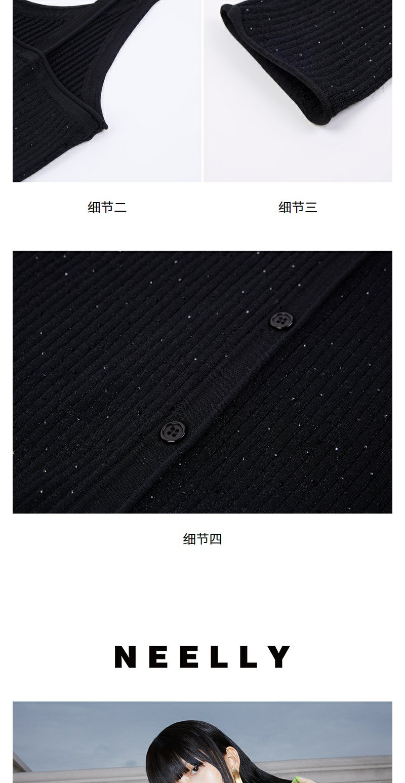 NEELLY纳俪商场同款秋季新款显瘦通勤简约黑色两件套针织衫上衣女N24081A01070
