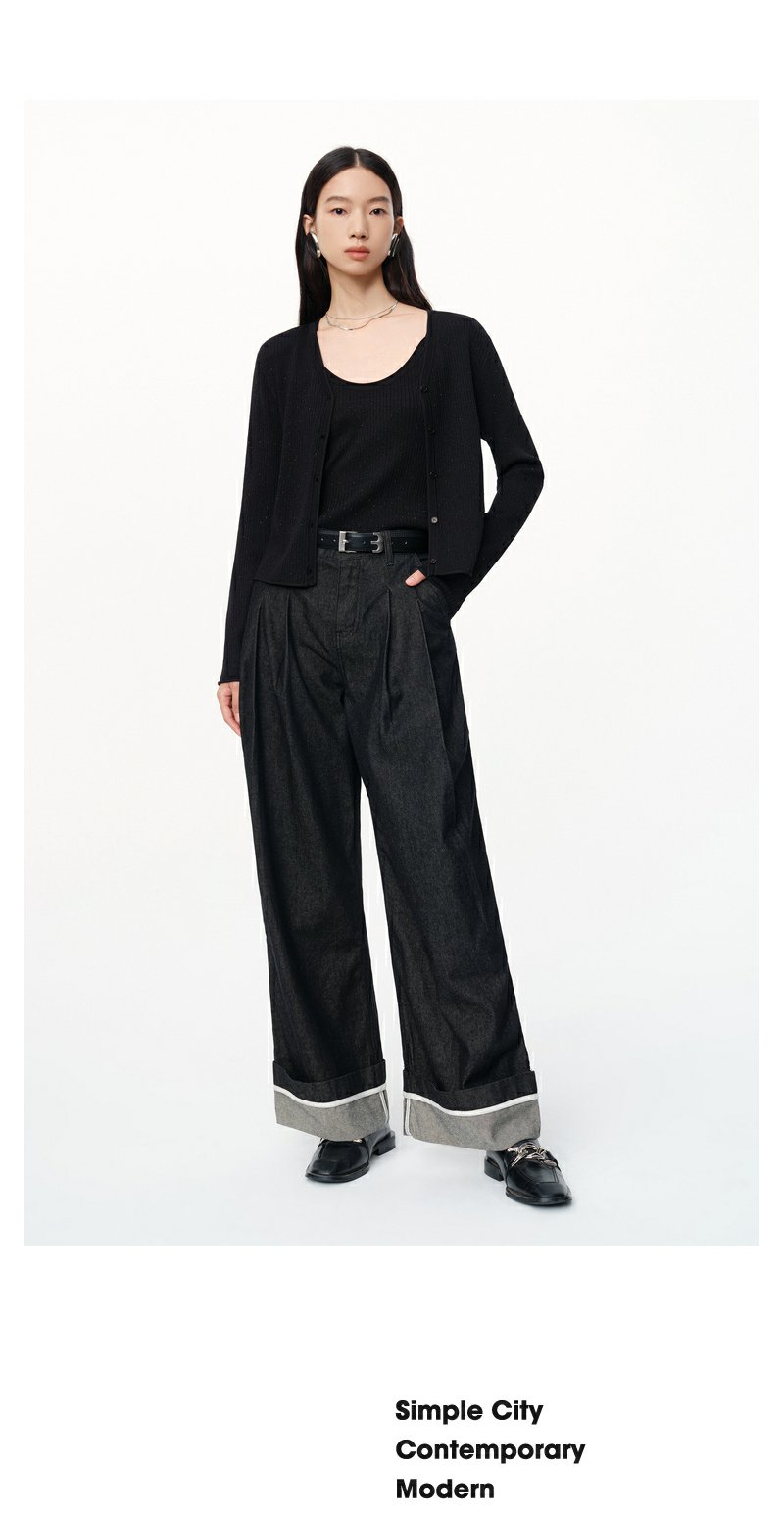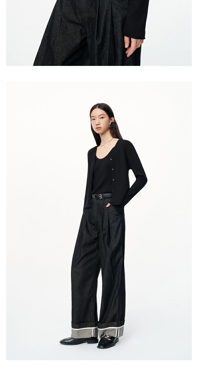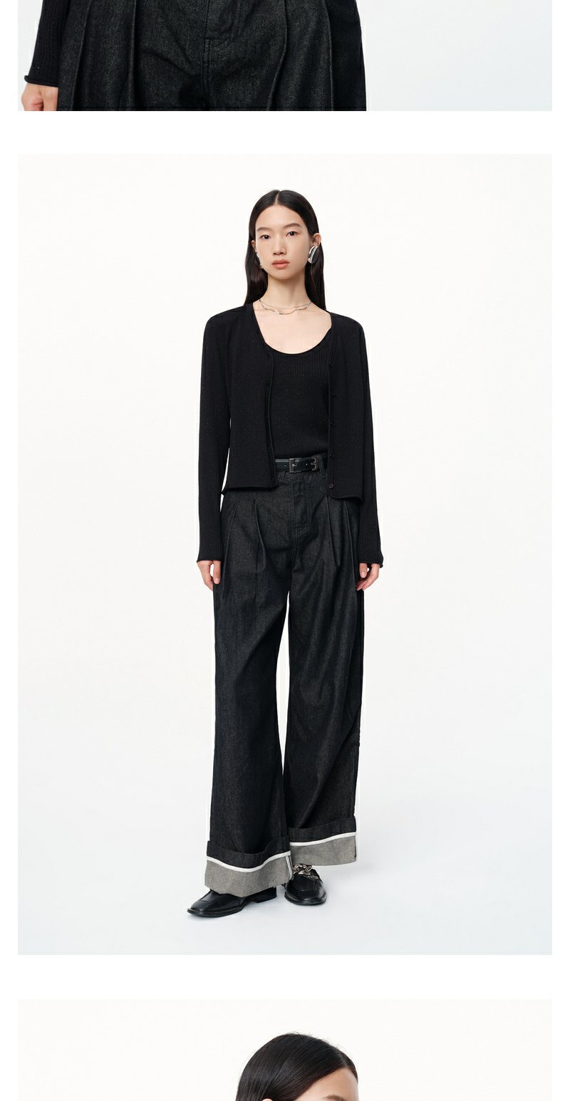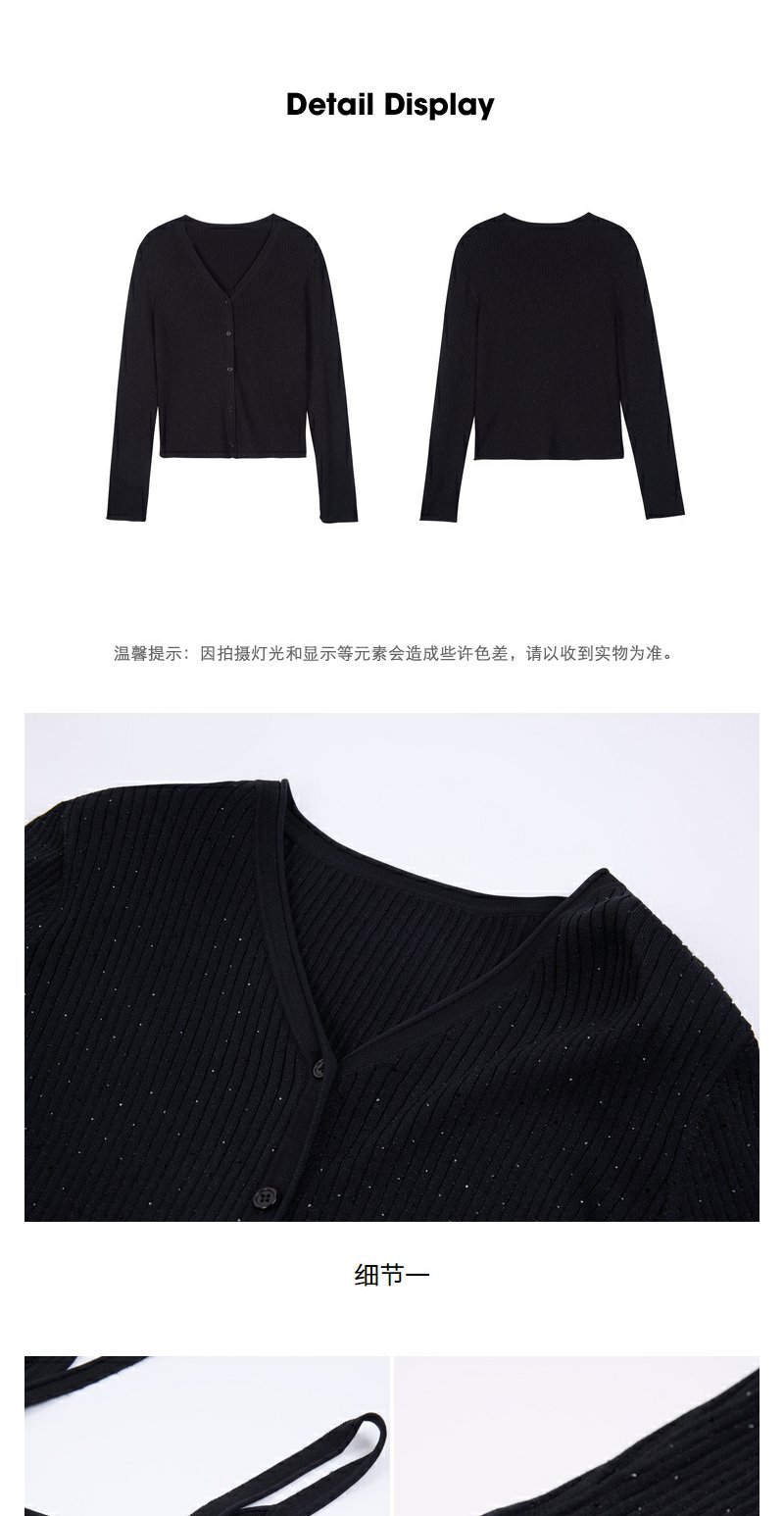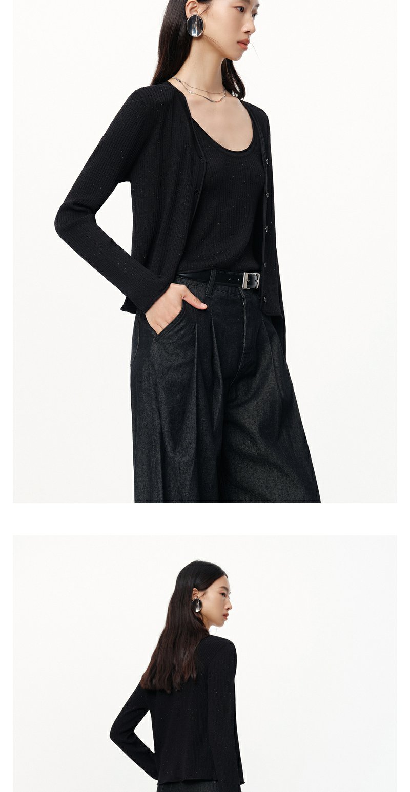 NEELLY纳俪商场同款秋季新款显瘦通勤简约黑色两件套针织衫上衣女N24081A01070