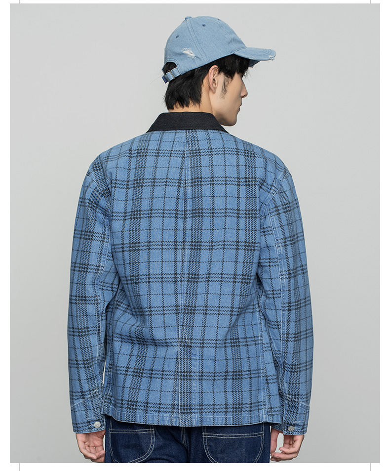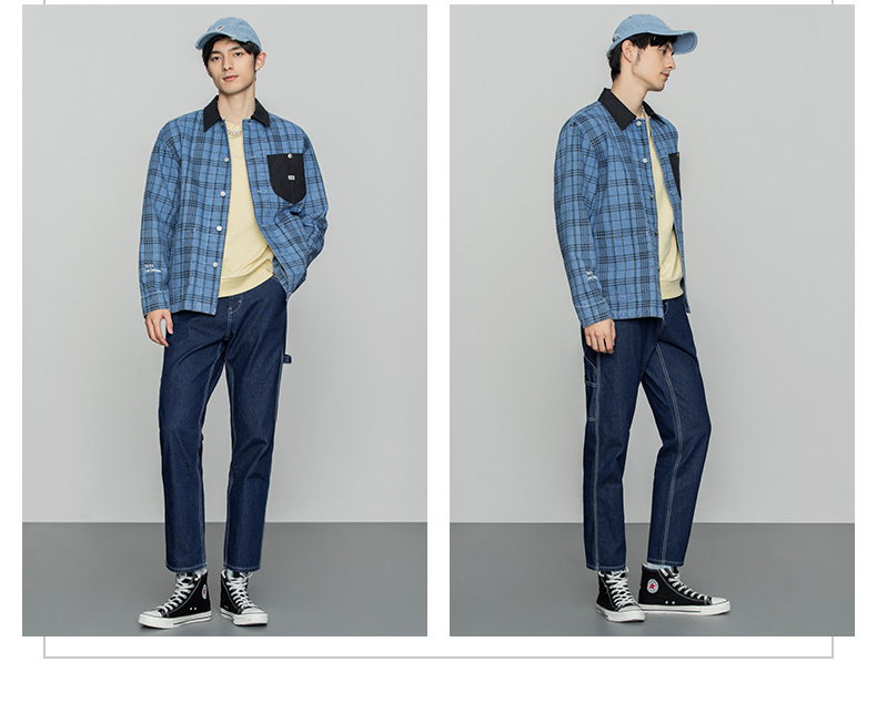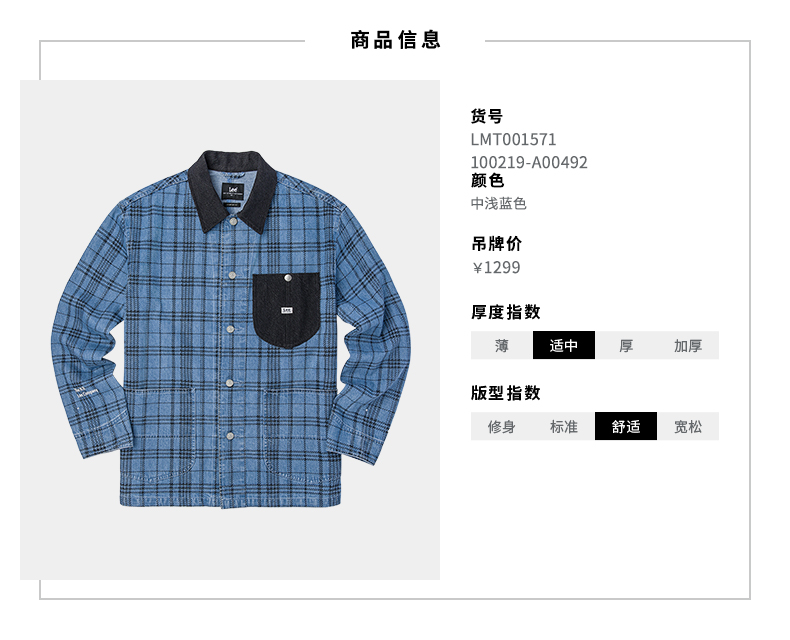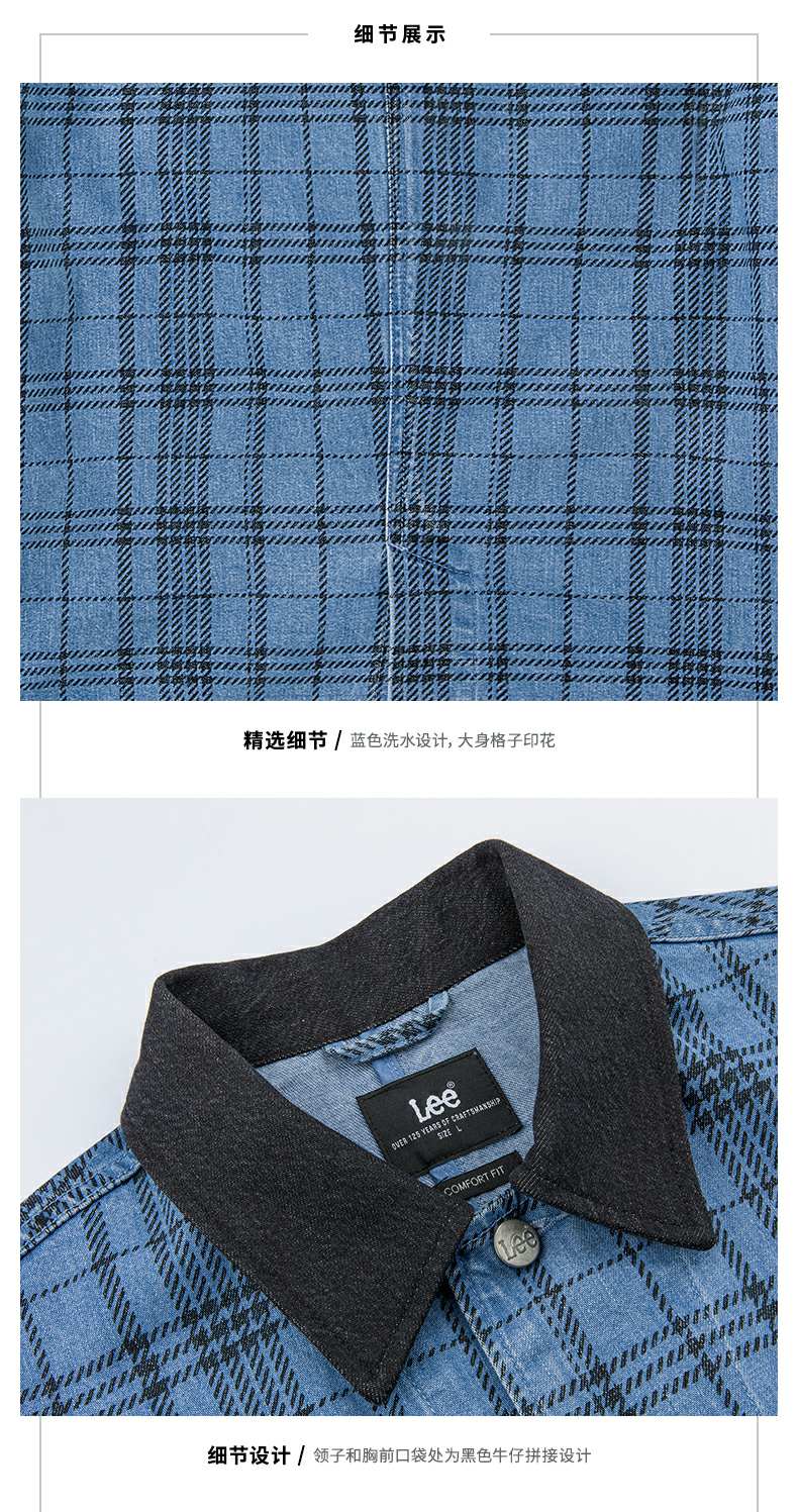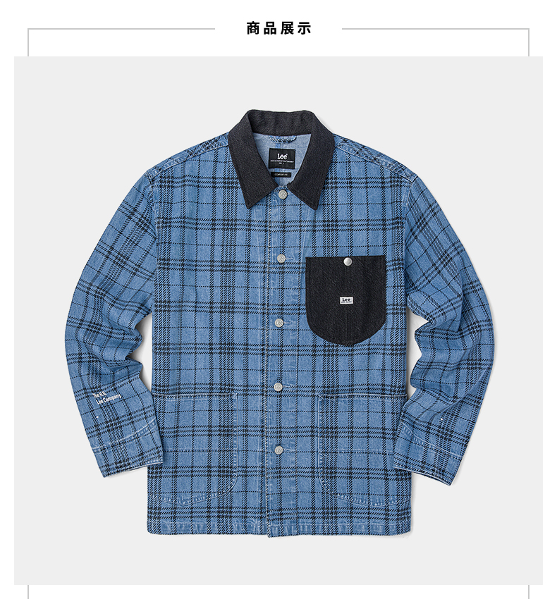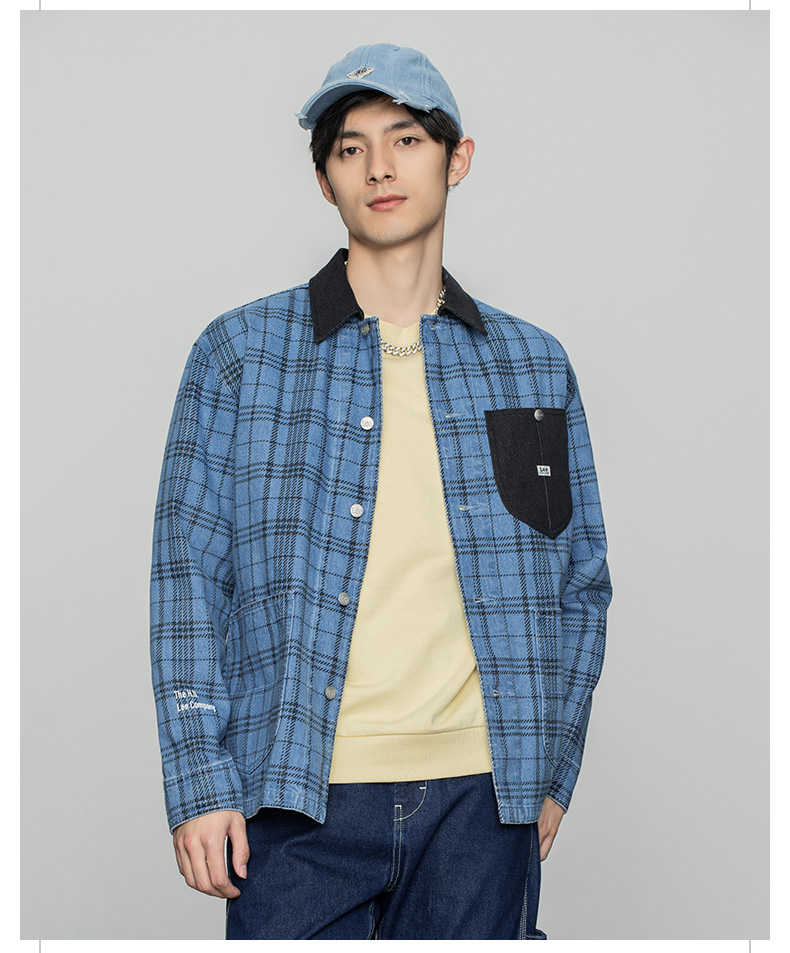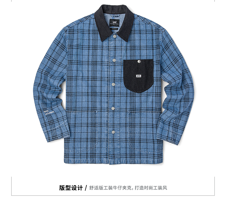 Lee商场同款22春季新品舒适蓝色格子男牛仔外套LMT001571100-492