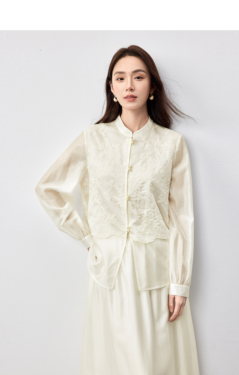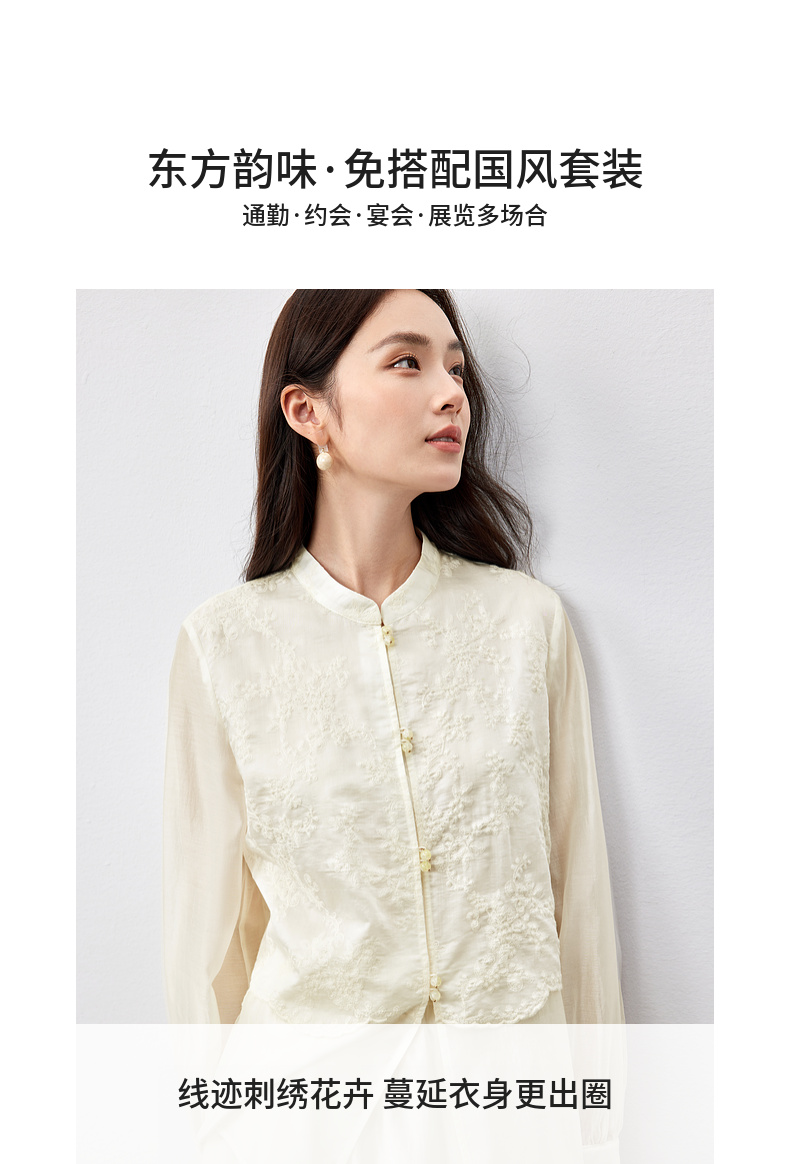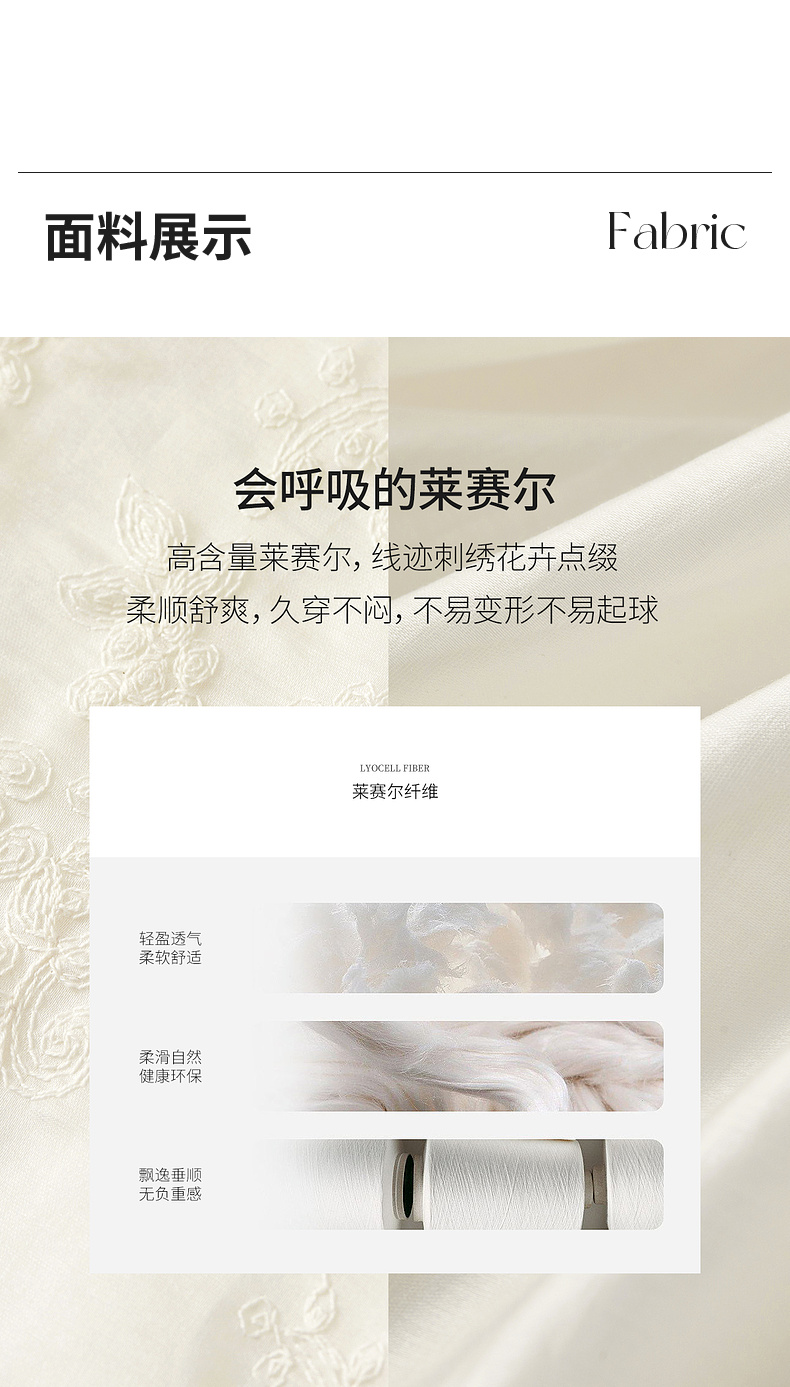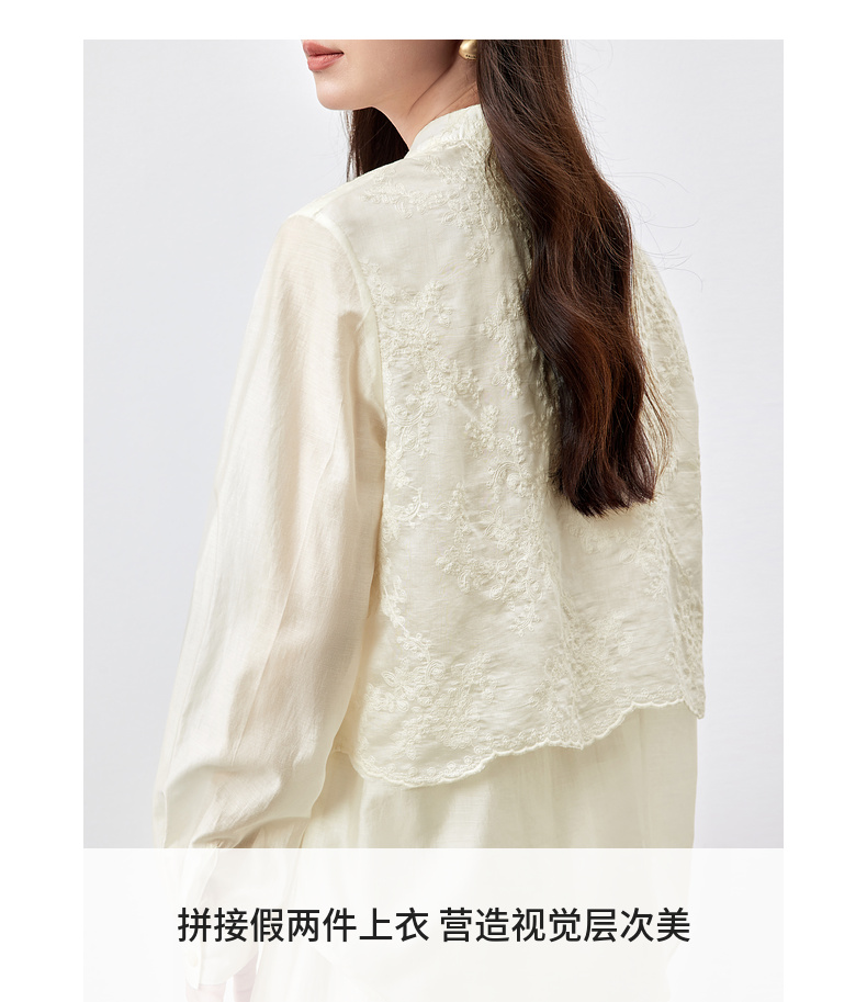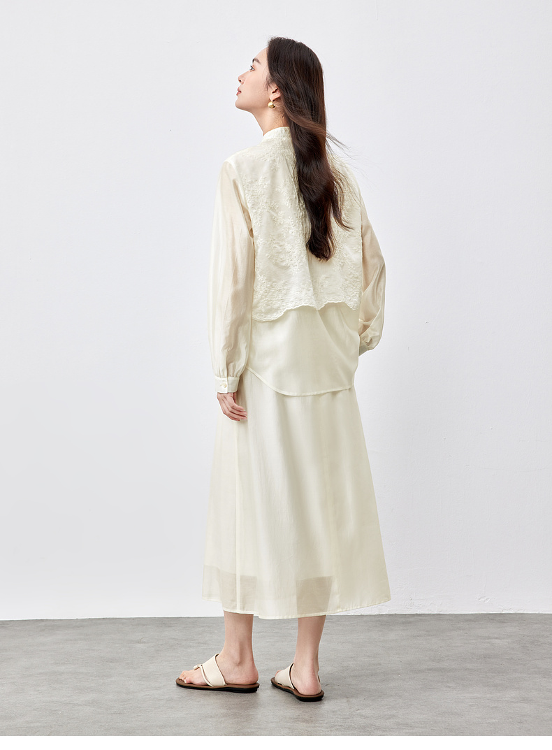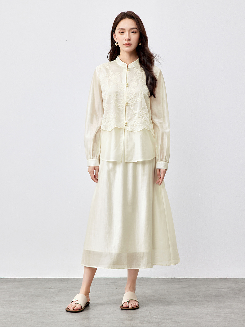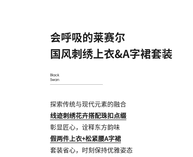 【内购】【抗起球莱赛尔套装】国风拼接假两件上衣&松紧腰中长A字裙两件套-151Z57874