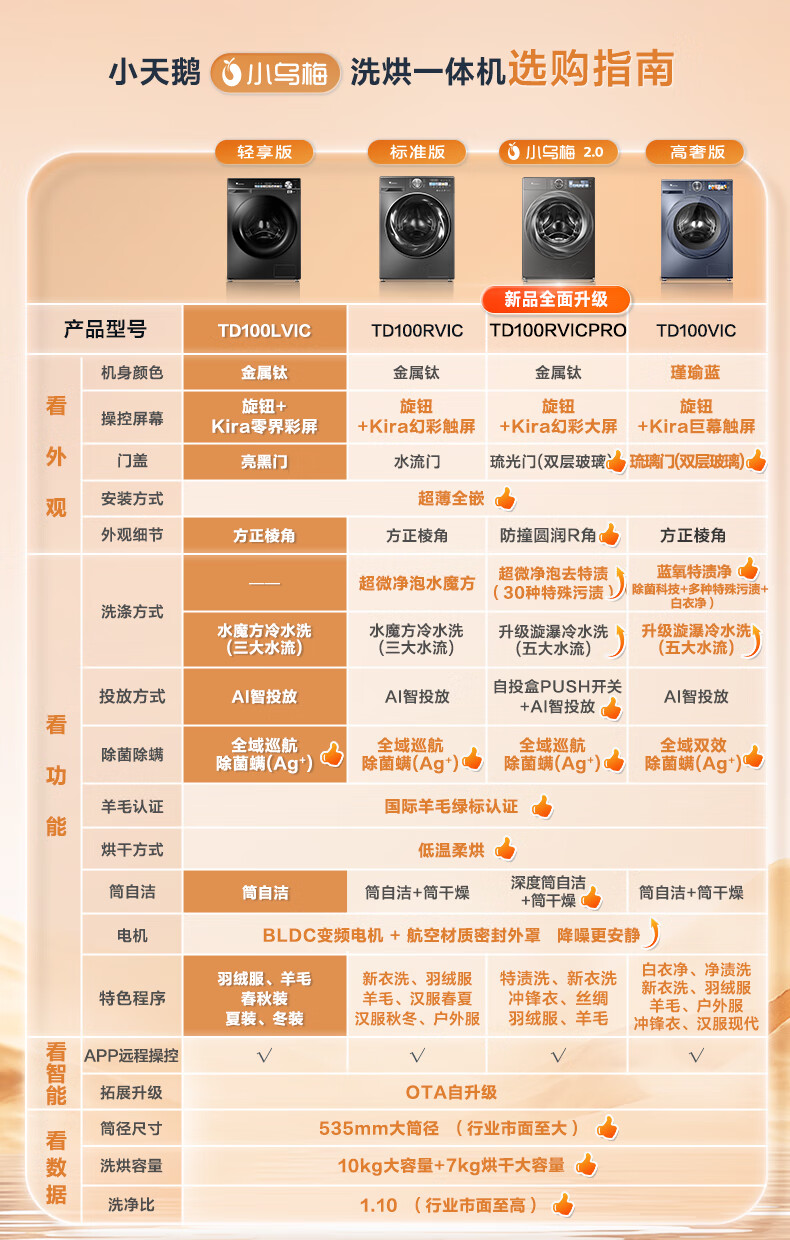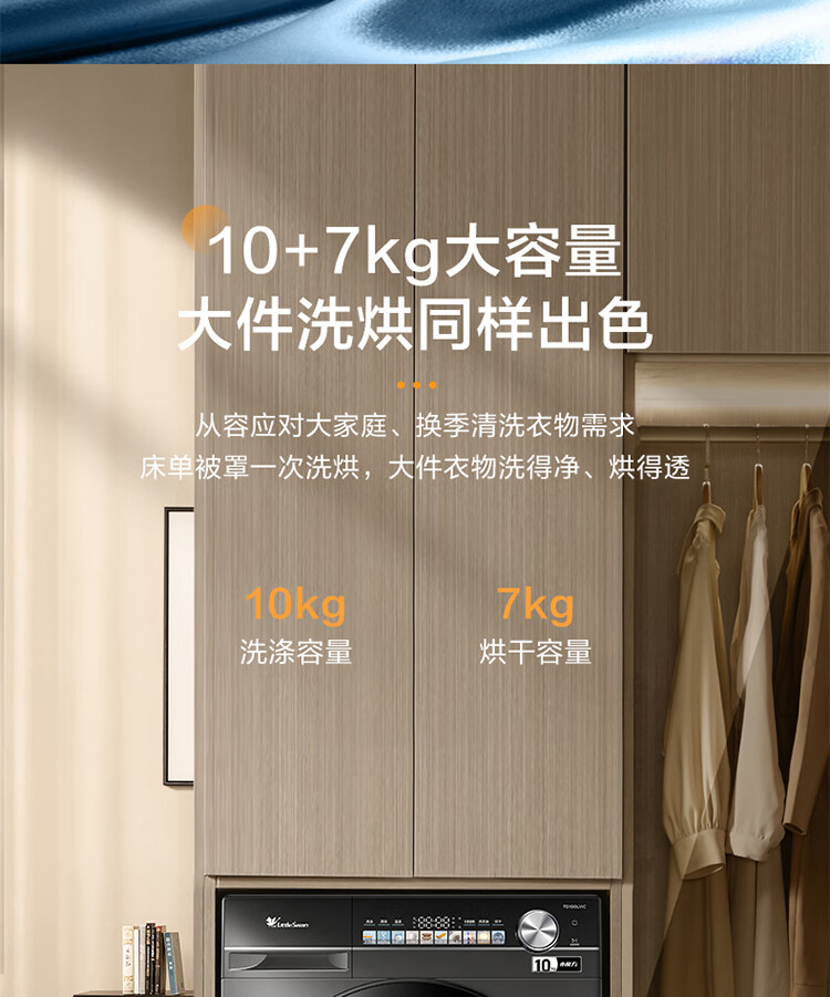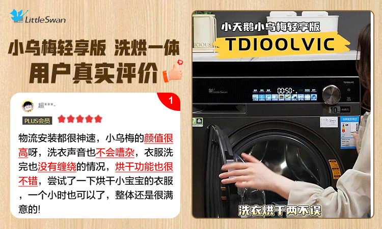 小天鹅(LittleSwan)滚筒洗衣机全自动家用_超薄全嵌【小乌梅轻享_TD100LVIC】推荐购买升级款E10_洗烘一体_10公斤_