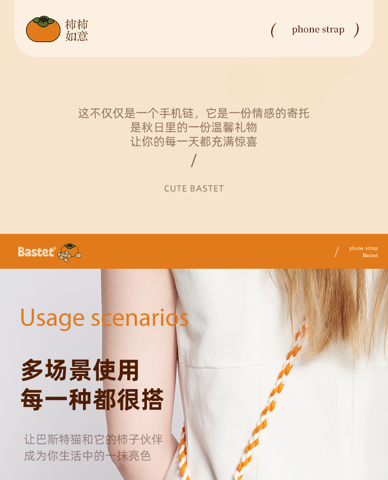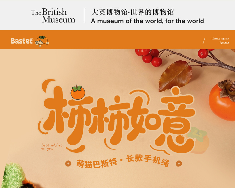 大英博物馆 盖亚·巴斯特系列 柿柿如意 萌猫巴斯特长款手机绳