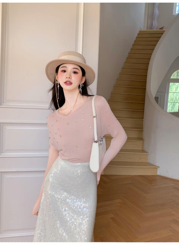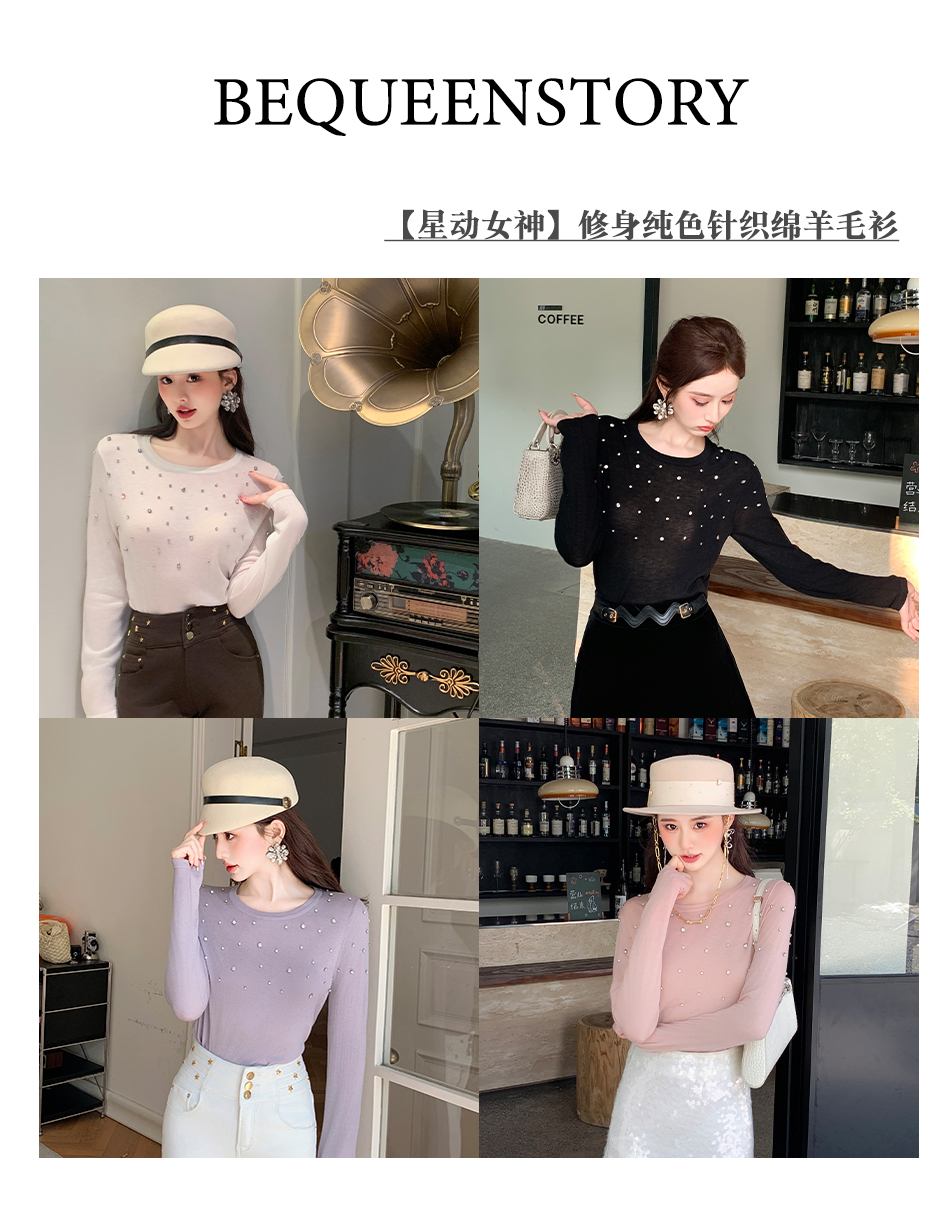 BeQueenStory【星动女神】轻奢修身纯色套头针织时尚圆领绵羊毛衫