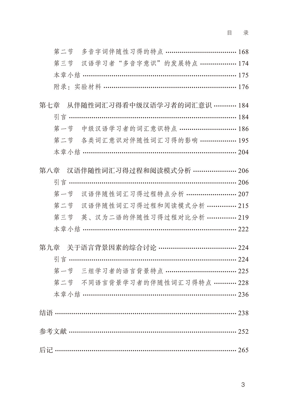 本书从控制条件和自然条件两个维度考察了中级汉语学习者伴随性词汇习得的影响因素;归纳了汉语伴随性词汇习得的特点;探讨了学习者各词汇意识的发展特点;总结了汉语词汇学习和阅读加工的模式。本研究运用纸笔测试、出声思维等多种方法,尤其是把心理学界先进的眼动技术引入对外汉语习得研究;将过去较少探讨的因素(语义透明度、词性、结构、语境等)逐一进行单项的实证研究;比较了汉语作为二语和一语、英语作为二语伴随性词汇学习的异同,探讨汉语词汇习得特色,为世界范围内的二语词汇习得研究提供相应成果。本研究还针对汉语词汇教学和阅读教学提出了相应的教学建议和教材编写建议,具有较高的现实意义。