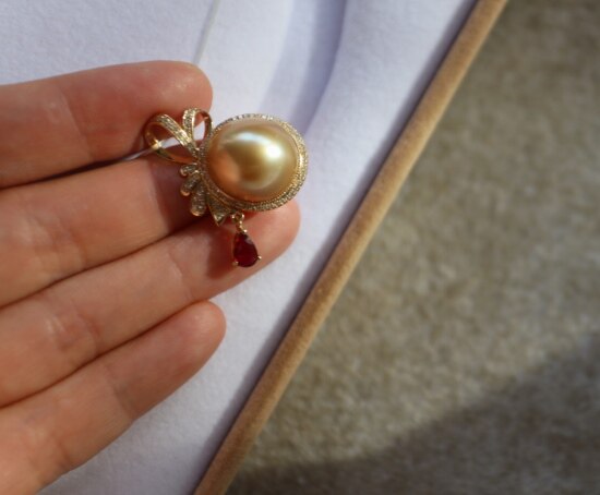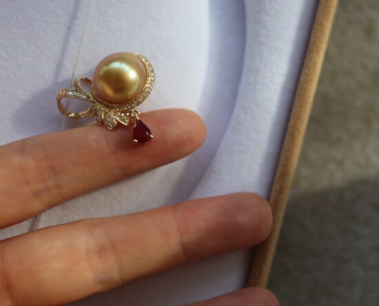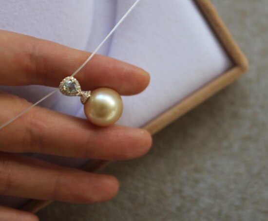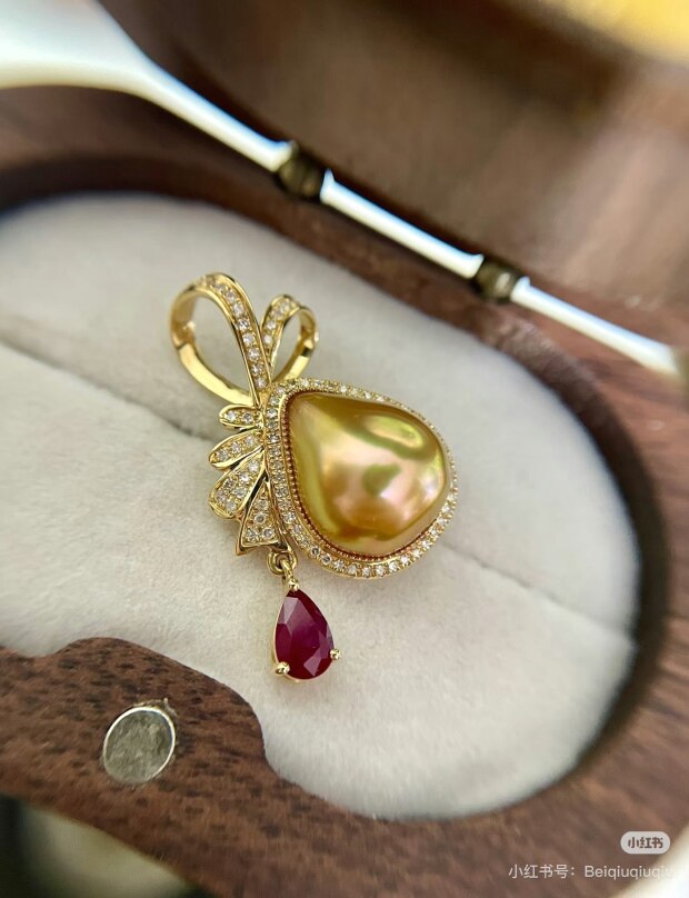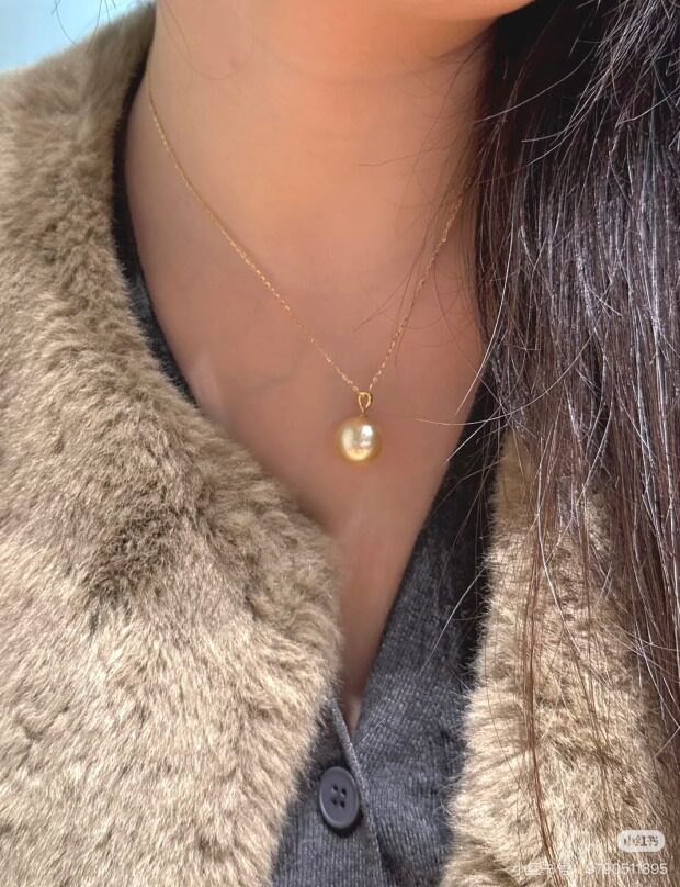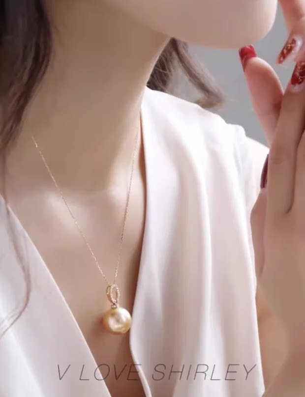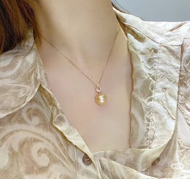 年少不知珍珠美 哈!天然海水 南洋金珠 18K+天然小碎钻 吊坠 三款入