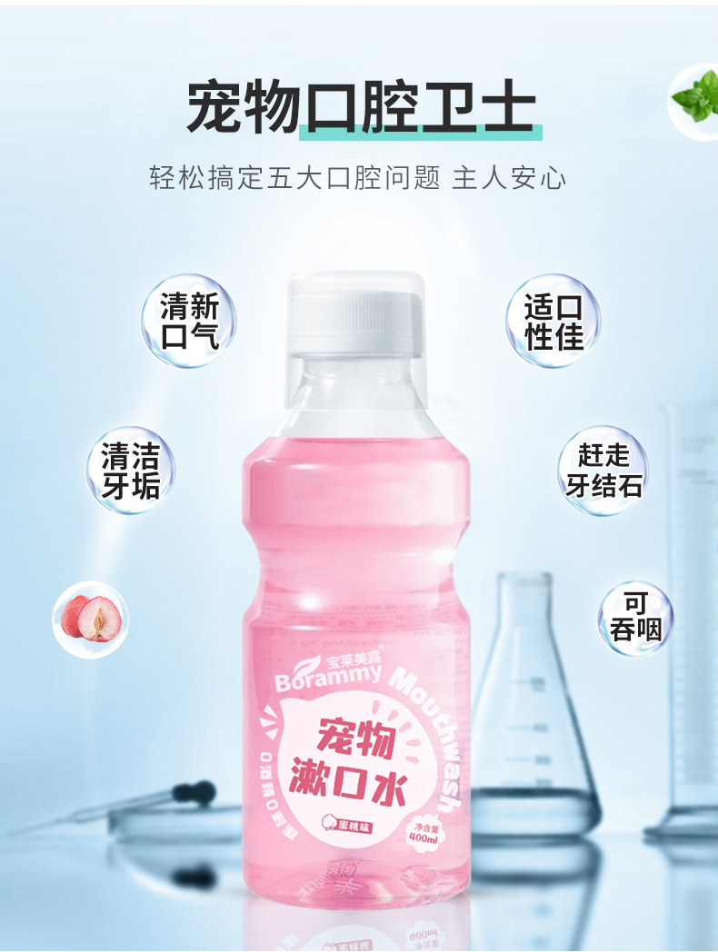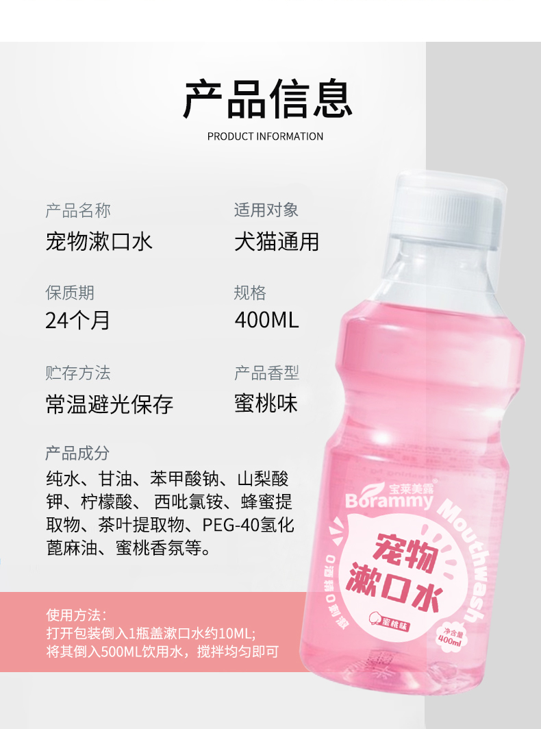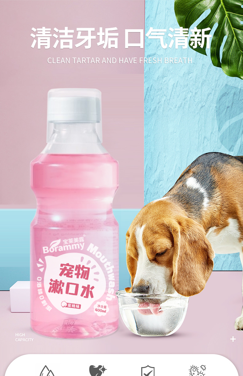 宝莱美露宠物漱口水400ml蜜桃味清洁口腔 去牙垢 可吞咽 持续使用效果更佳!