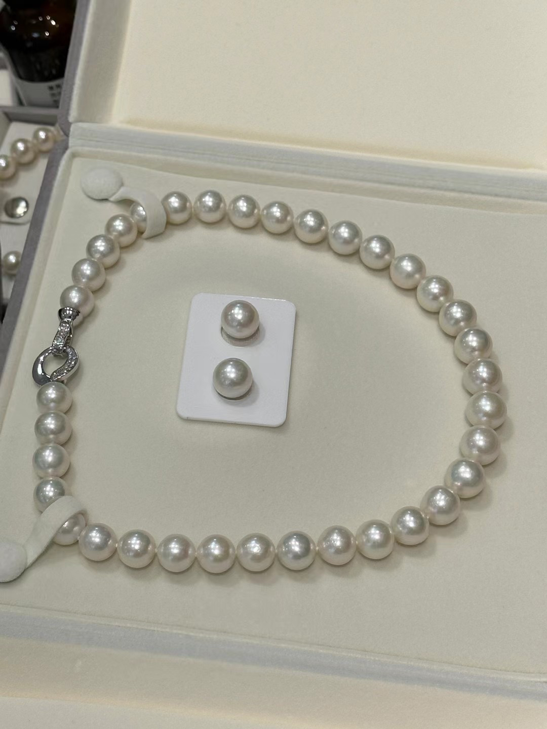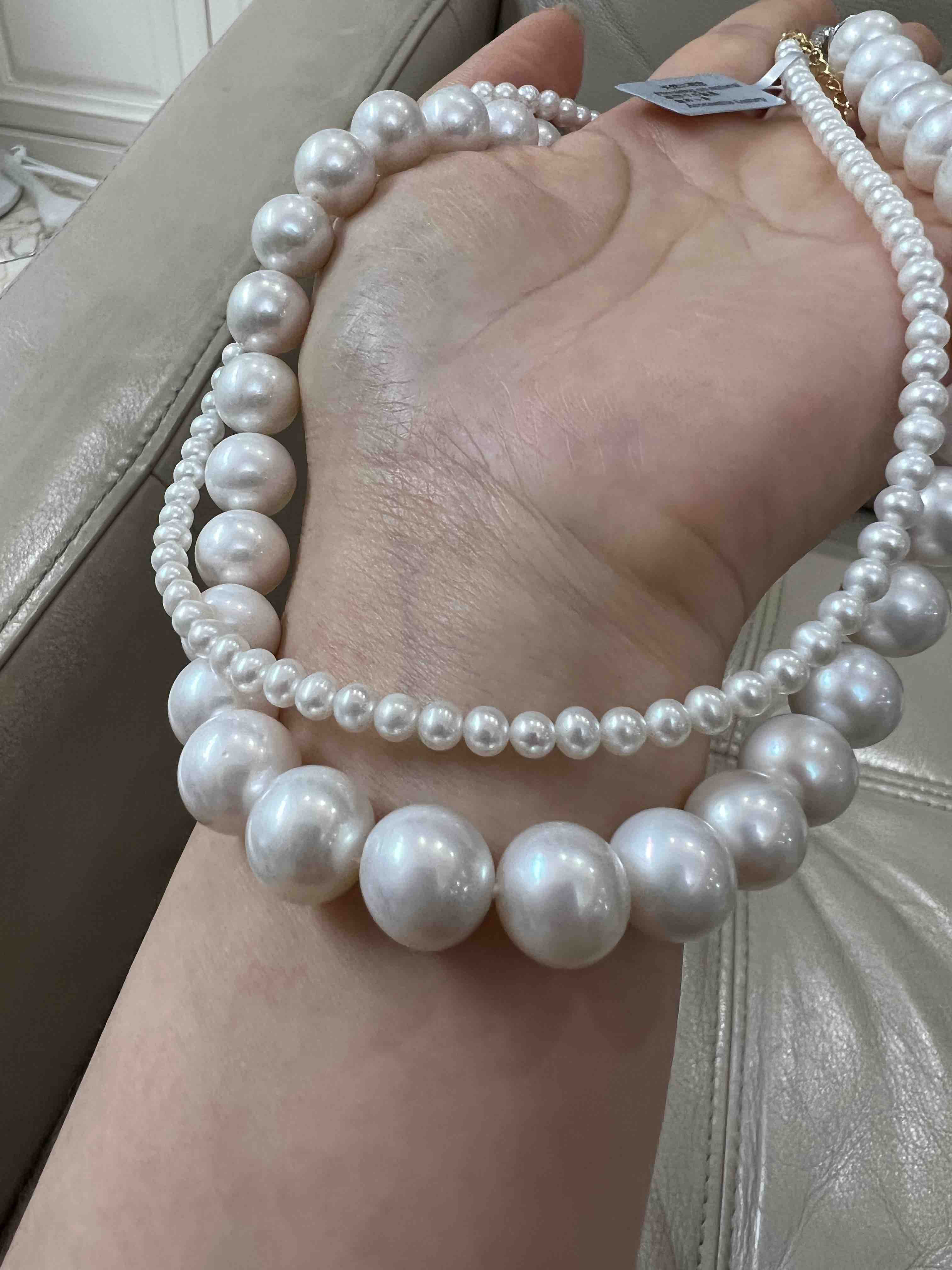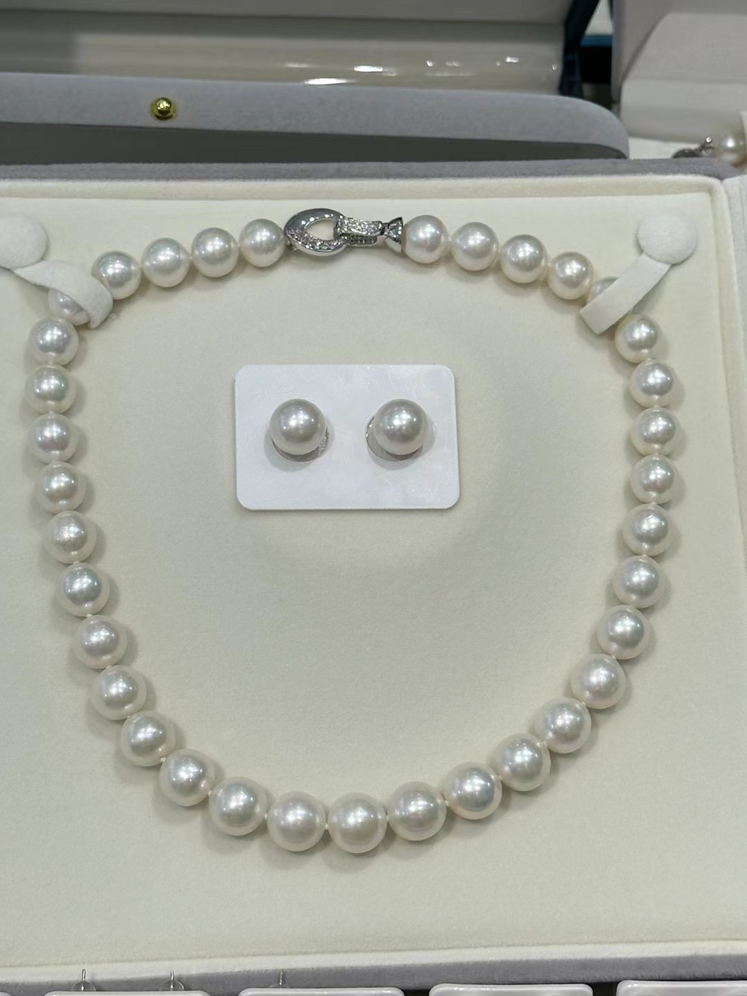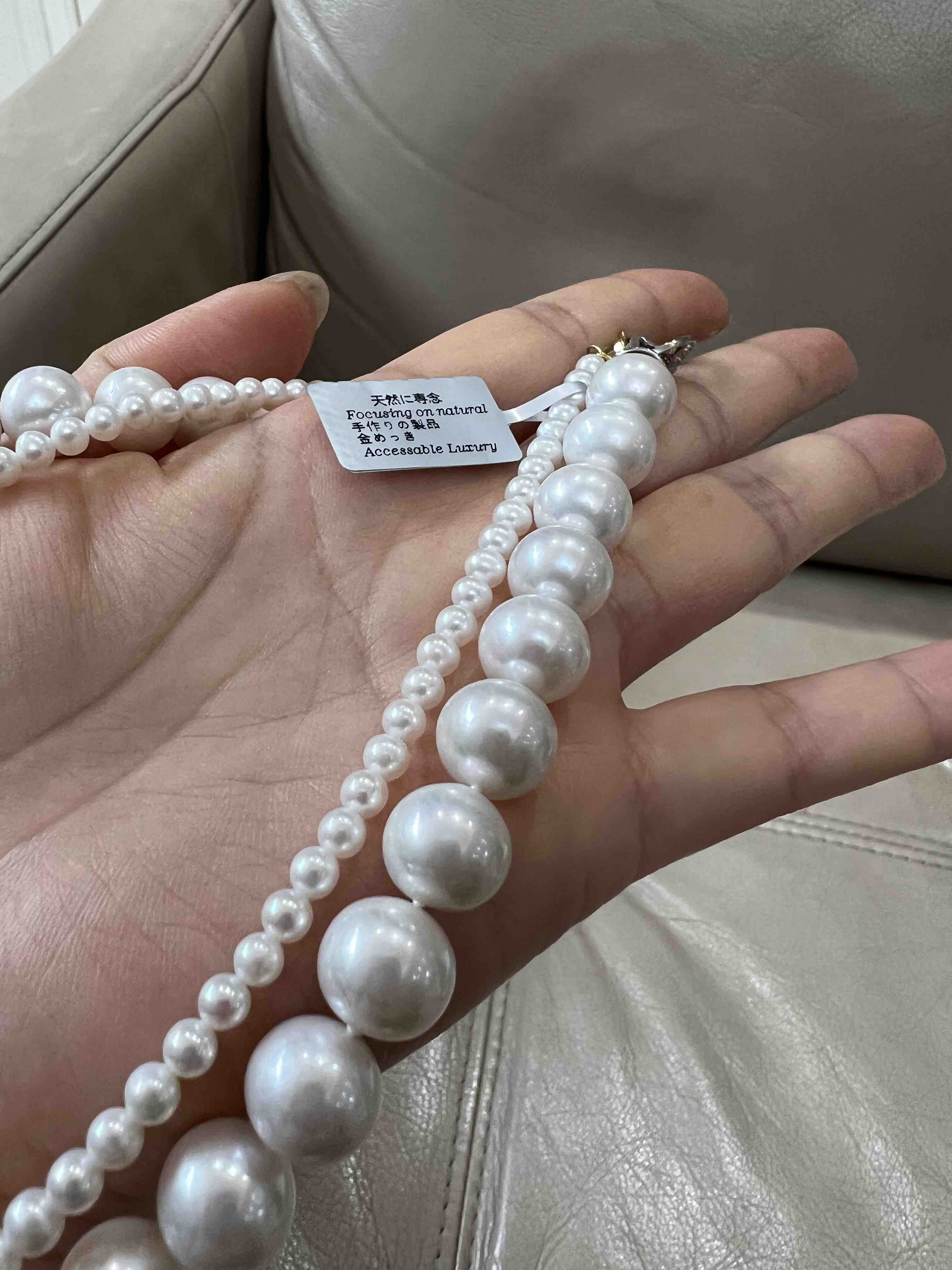 这种稀缺大珠珠,真的很少见了。不是随随便便的淡水珠都能澳白平替,它替不了。这条的优点在于,有澳白的冷光,就显得分外高级。光泽度很好,微瑕真的社交距离完全看不出。