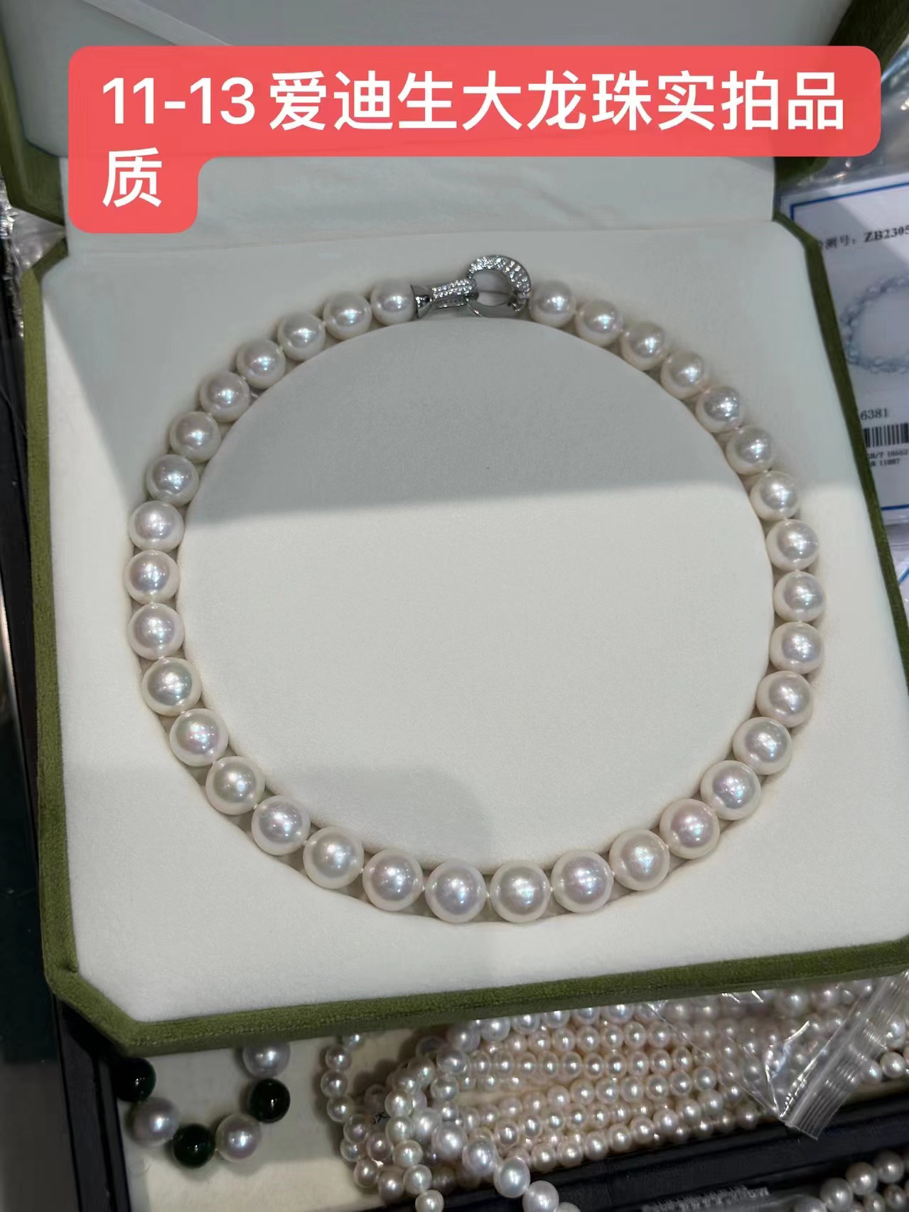 511-3 澳白平替 11-13mm爱迪生珍珠项链 近圆强光的大龙珠 带证书全套