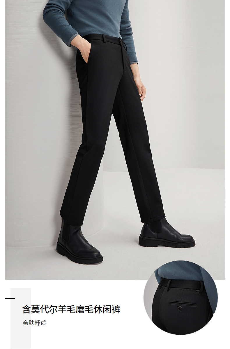 【含羊毛】柒牌男士休闲裤秋冬2024新品双面磨毛通勤商务针织长裤 127H72260