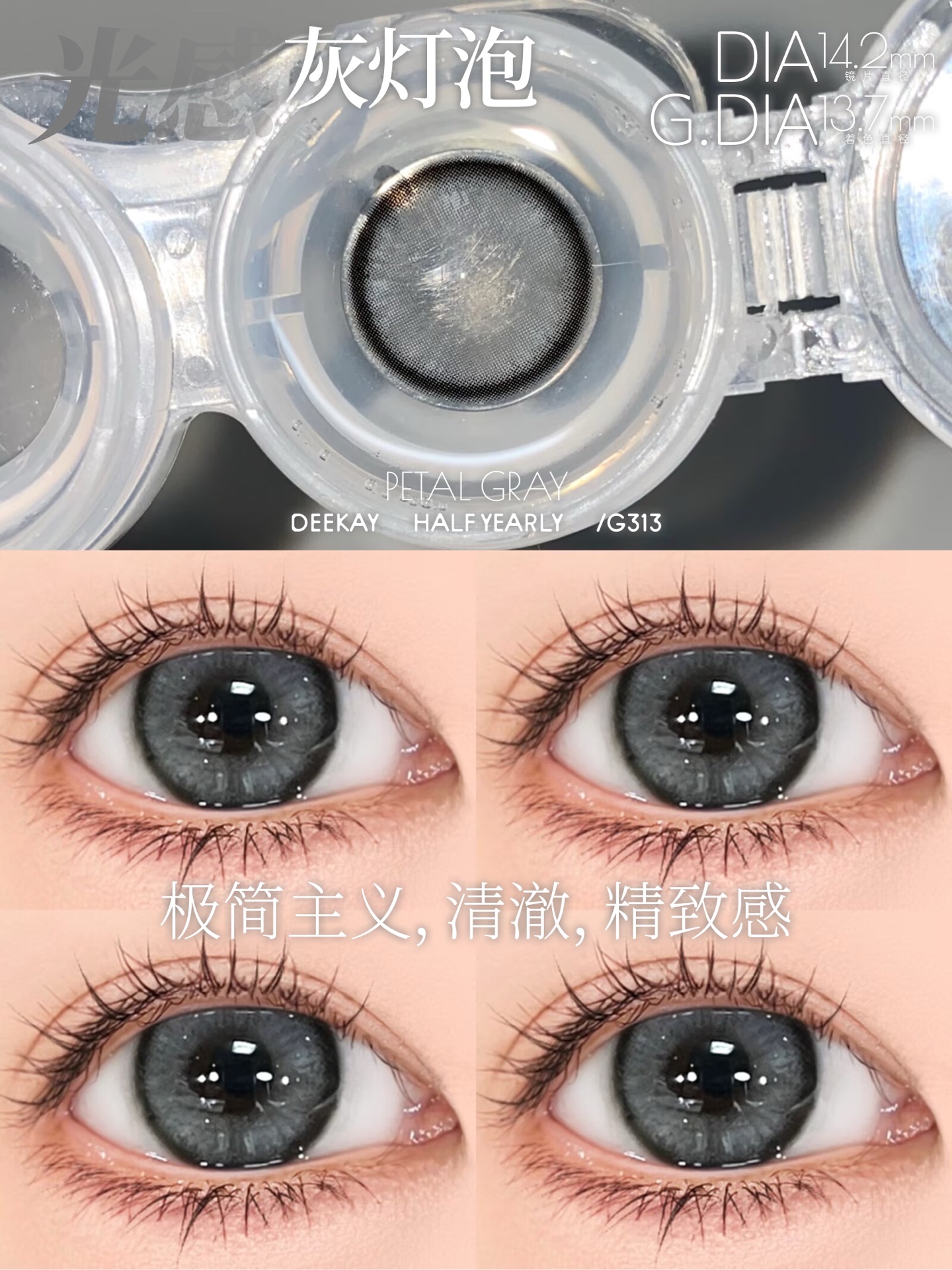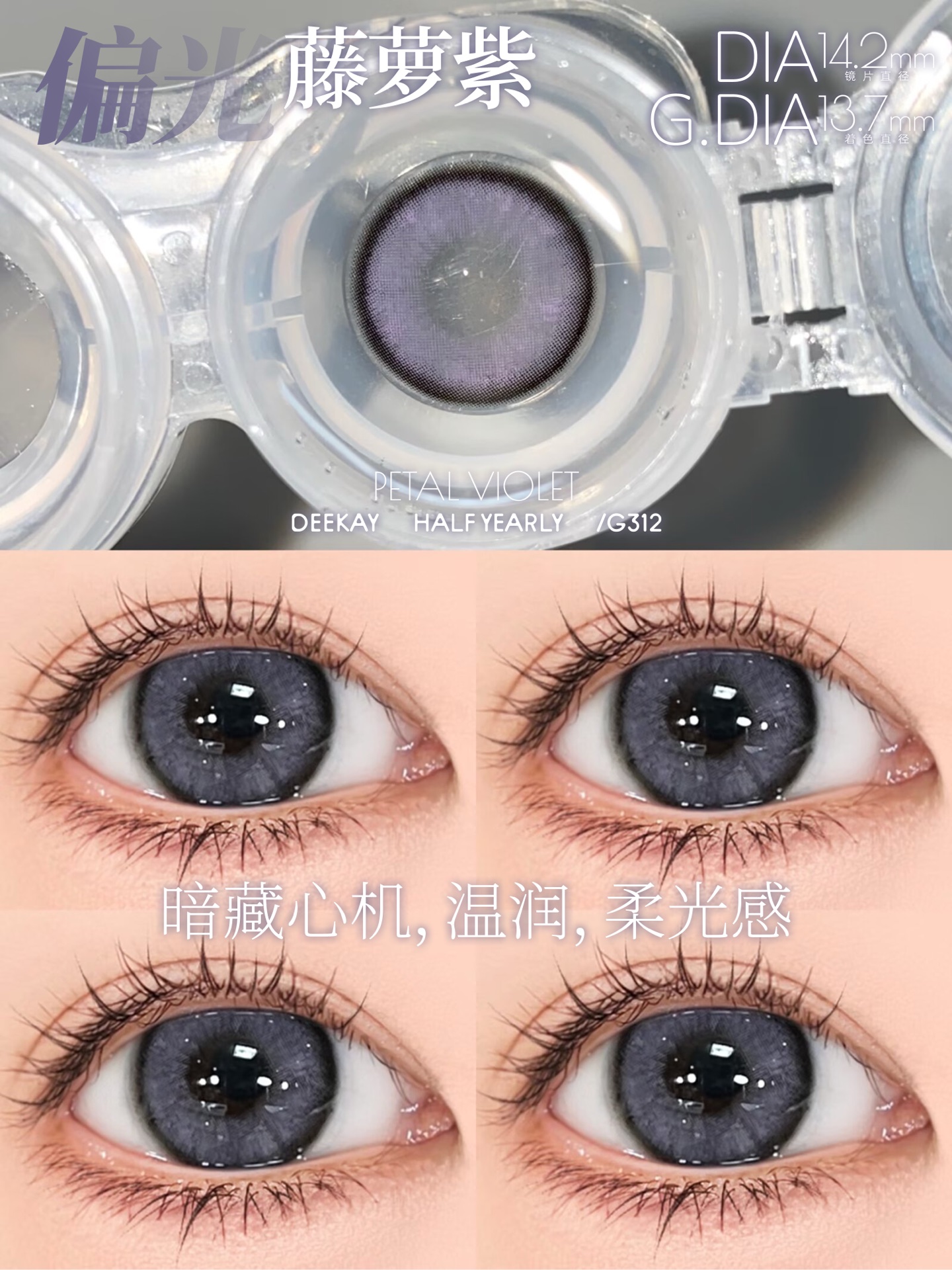 「高端美瞳 」DK G312/G313 柔光天鹅绒 紫/灰 14.2mm 半年抛 含硅水凝胶