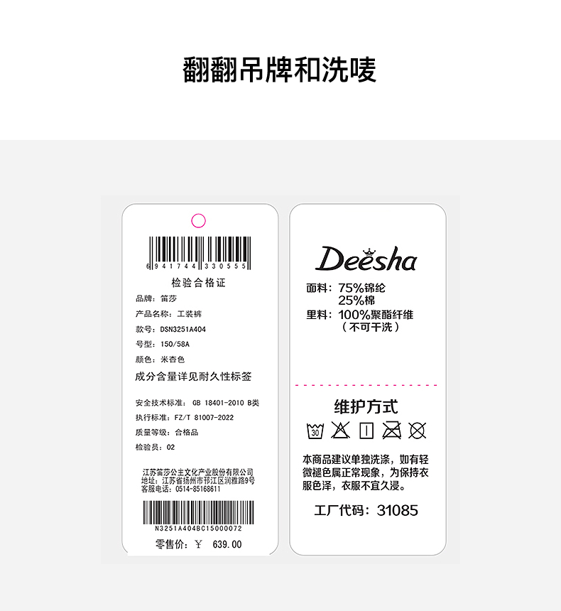 笛莎Deesha青少年女童裤子2025春季女童工装裤