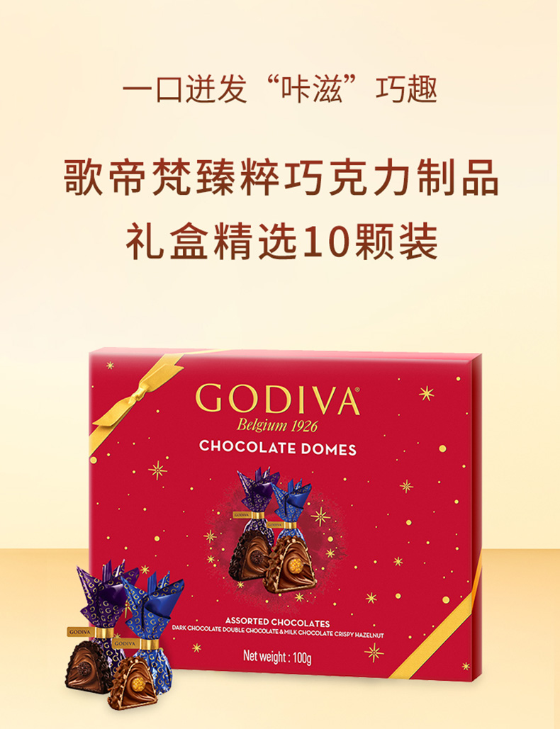 歌帝梵臻萃巧克力礼盒精选10颗装100g/040858 二种不同风味四重口感交融