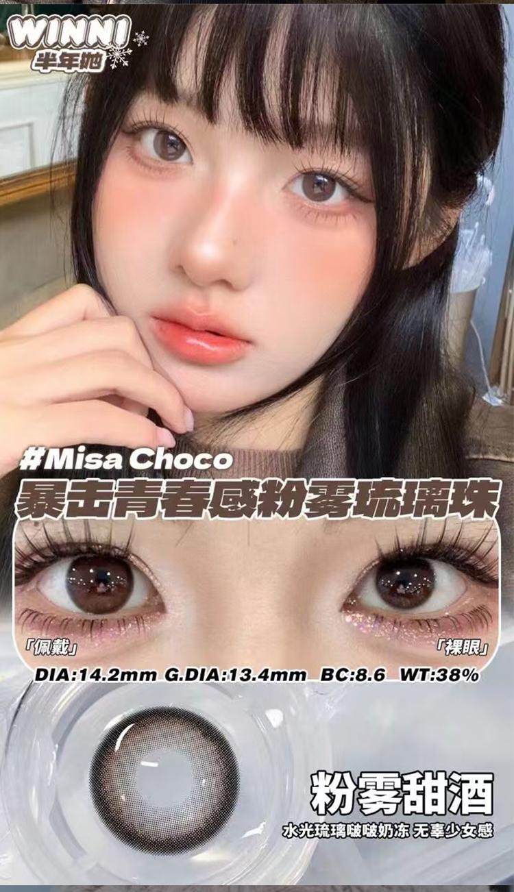 【半年抛】winni新品上市 Milcacon 直径14.5/14.2/14.0 1片/盒(度数不同请拍两盒)
