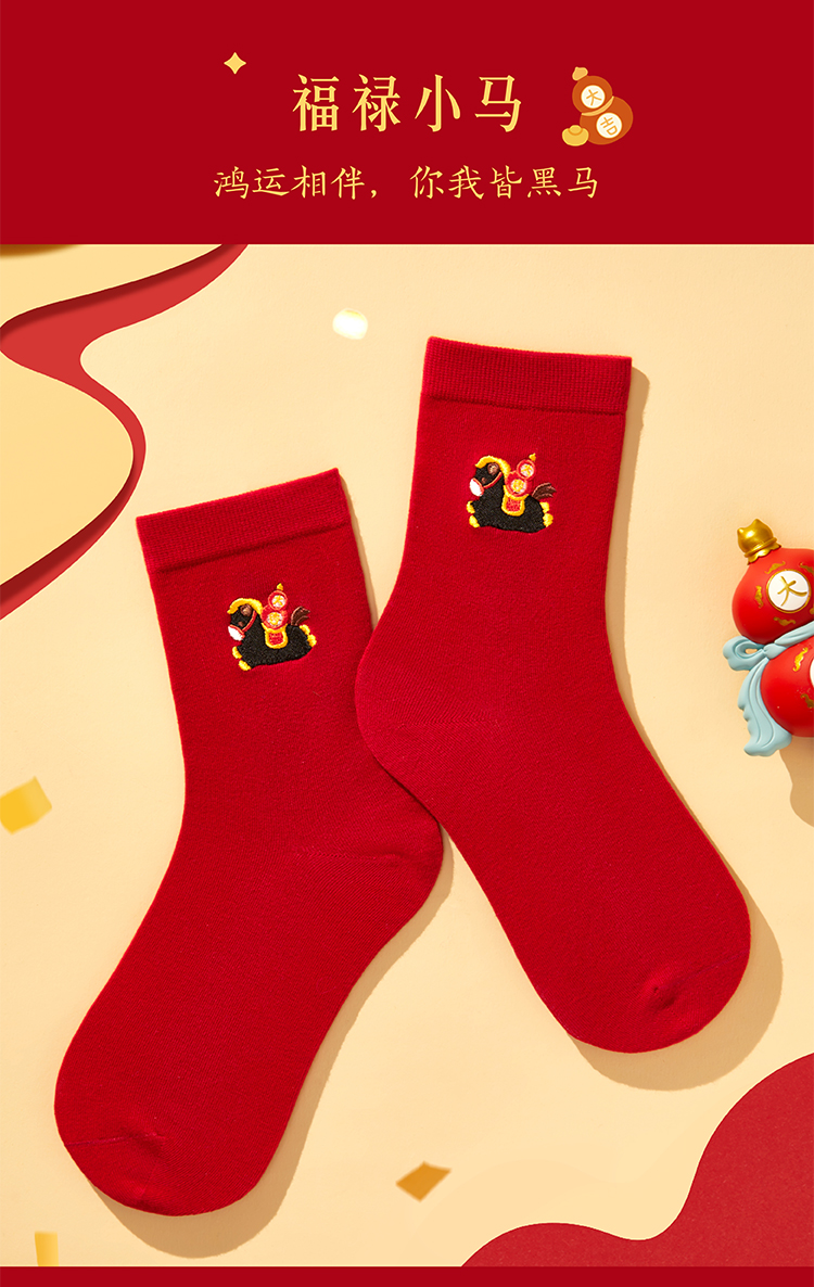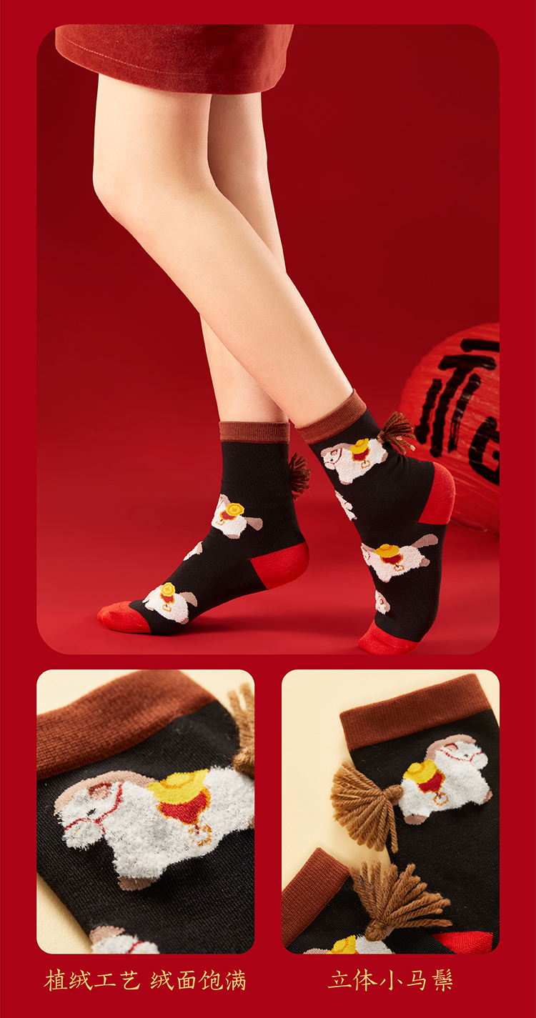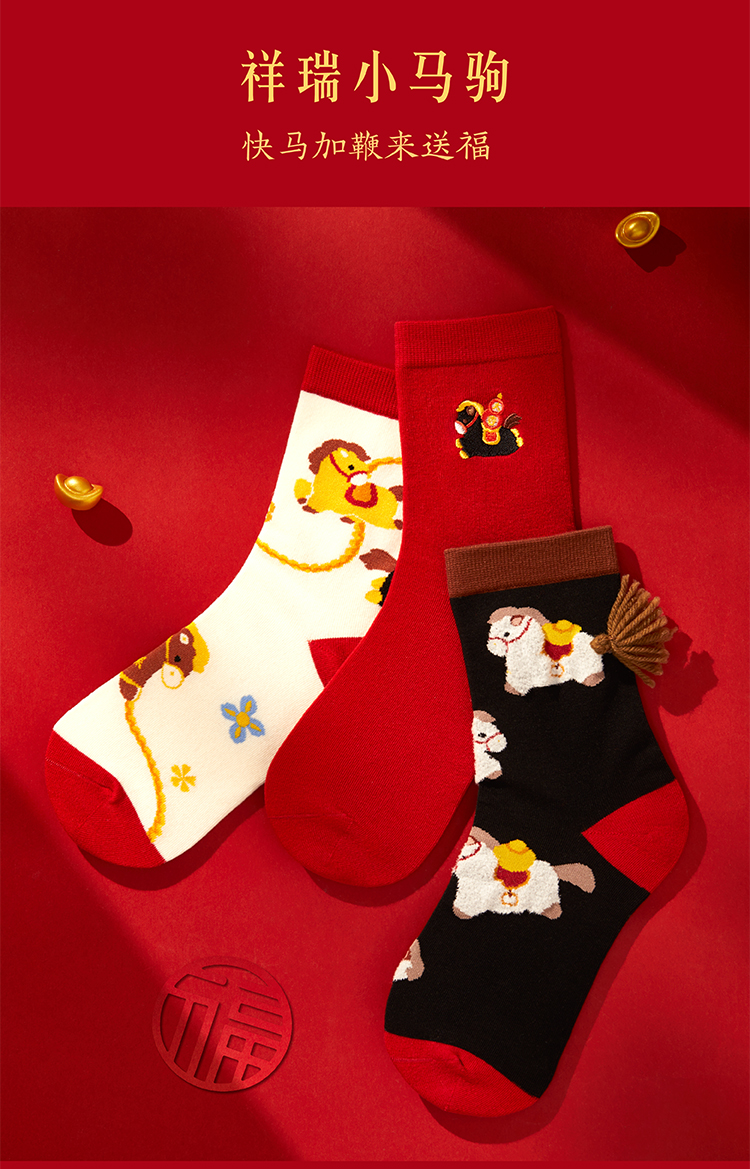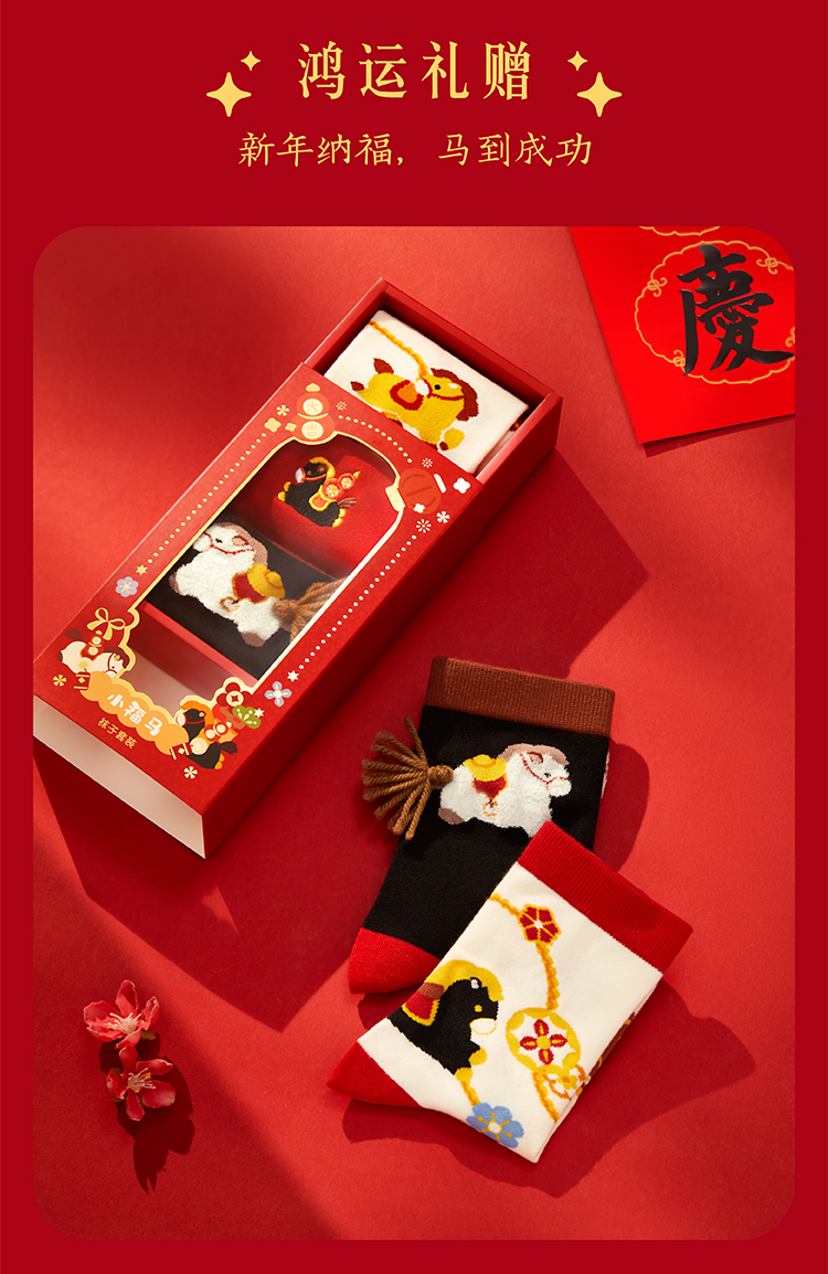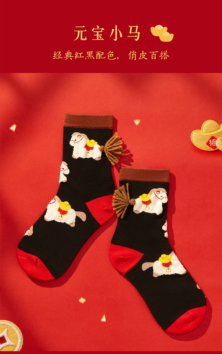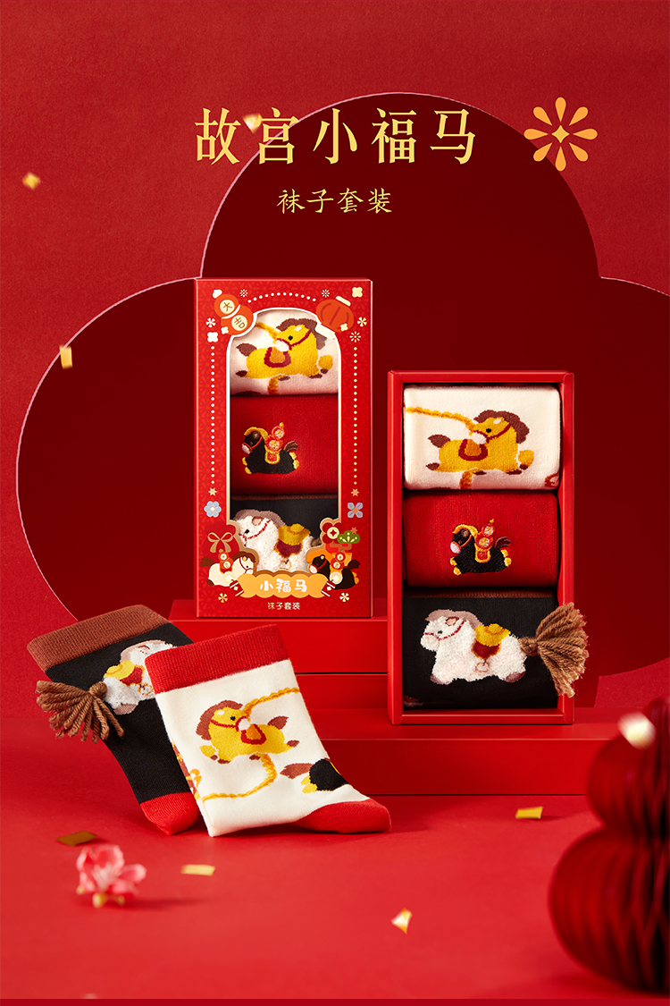 【故宫袜子】小福马袜子套装女中筒袜秋冬红袜子新年马年本命年礼盒
