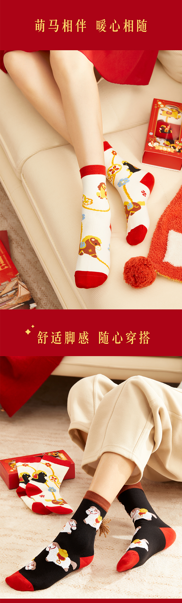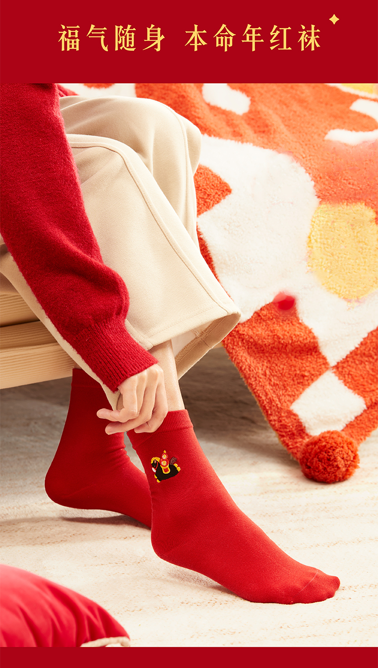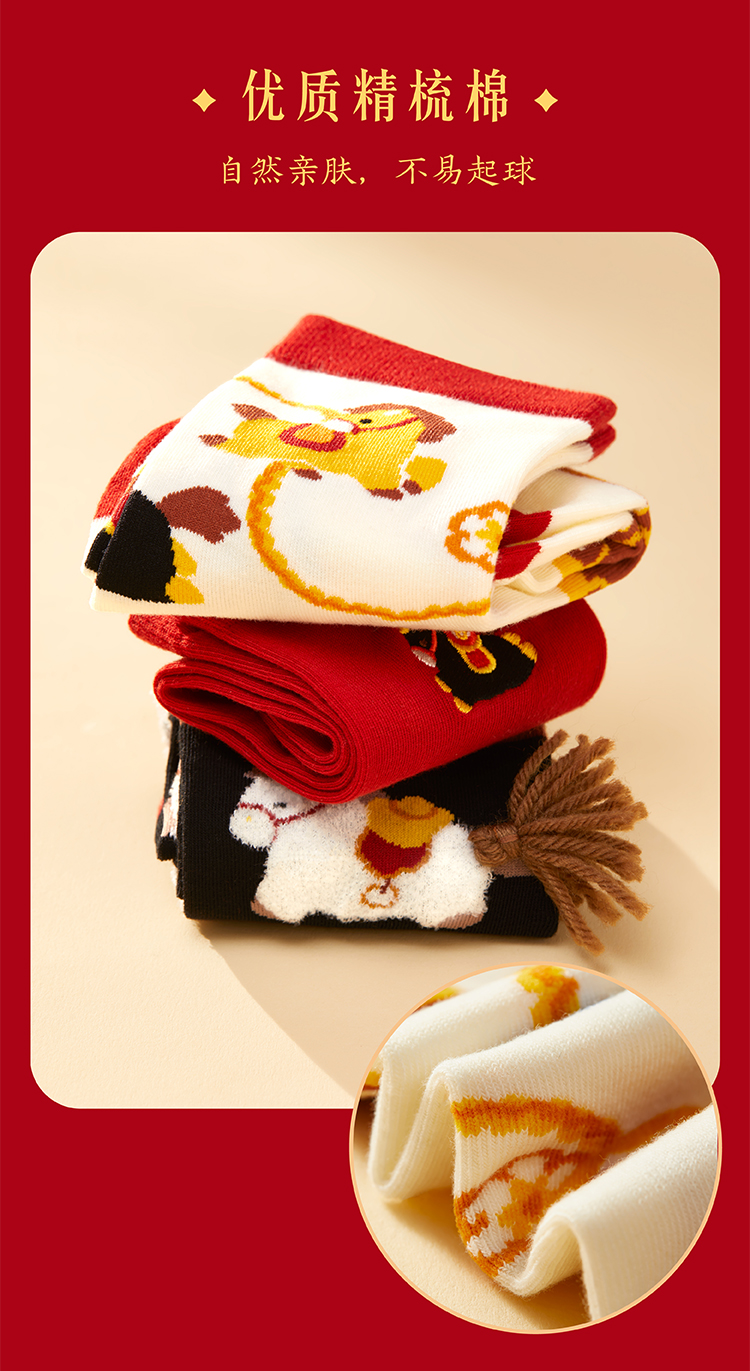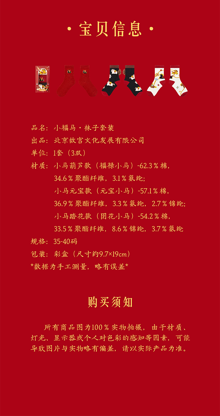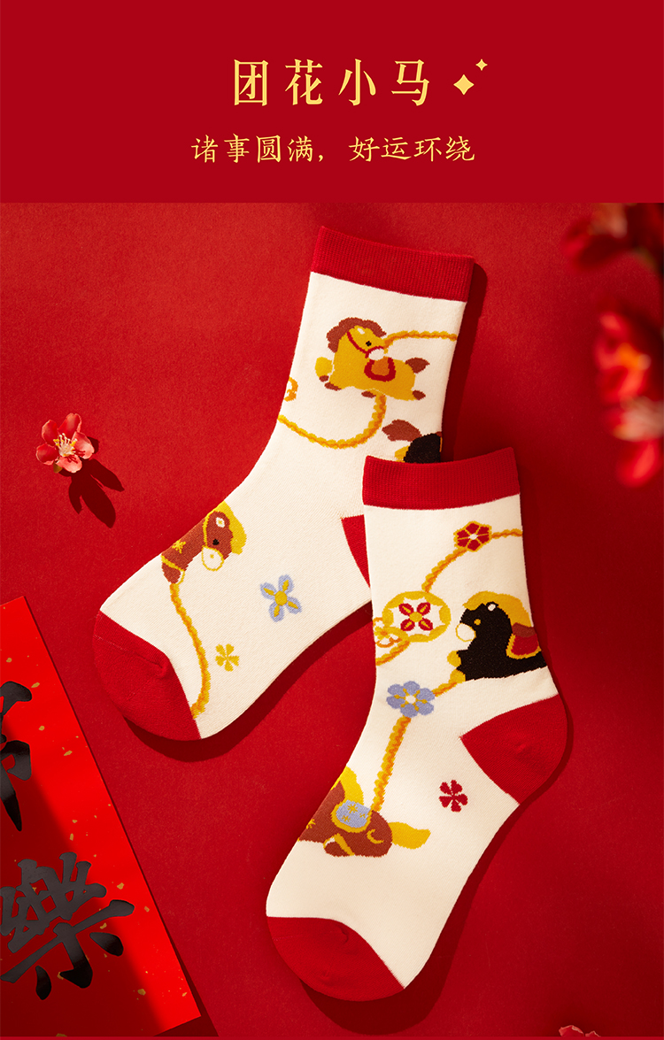 【故宫袜子】小福马袜子套装女中筒袜秋冬红袜子新年马年本命年礼盒