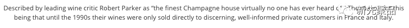 他说:“the finest Champagne house virtually no one has ever heard of”(几乎没人听过的最顶级精致的香槟酒庄)