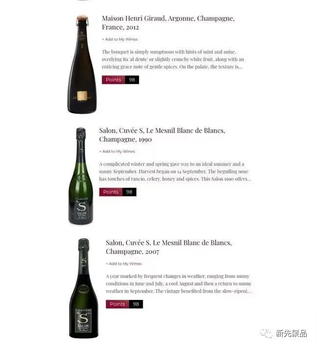 而他家的新出的2012年份香槟排名与1990年和2007年的Salon年份香槟并列世界第三,达到了98分的高分,但是1990年可是上个世纪除了96年以外最顶级的年份,人家一个2012年普通年份的新年份香槟得分都和Salon 1990年的老香槟一个水平,大家仔细品品!关键是老年份Salon不但存世数量不多不好买,而且价格可是四倍于HG,HG的价格真的是太良心了!