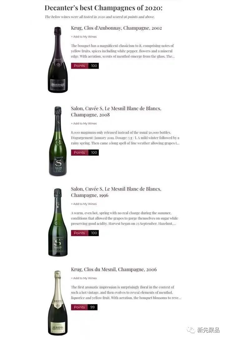 前两名虽然仍然是Krug和Salon,可是拿出最伟大年份,甚至是老香槟来和HG的普通年份新年份香槟PK,谁才是真正的王者还用说吗?!