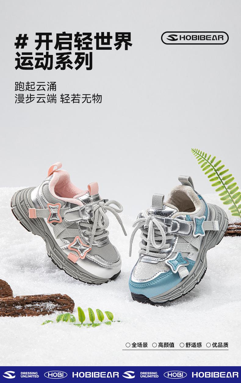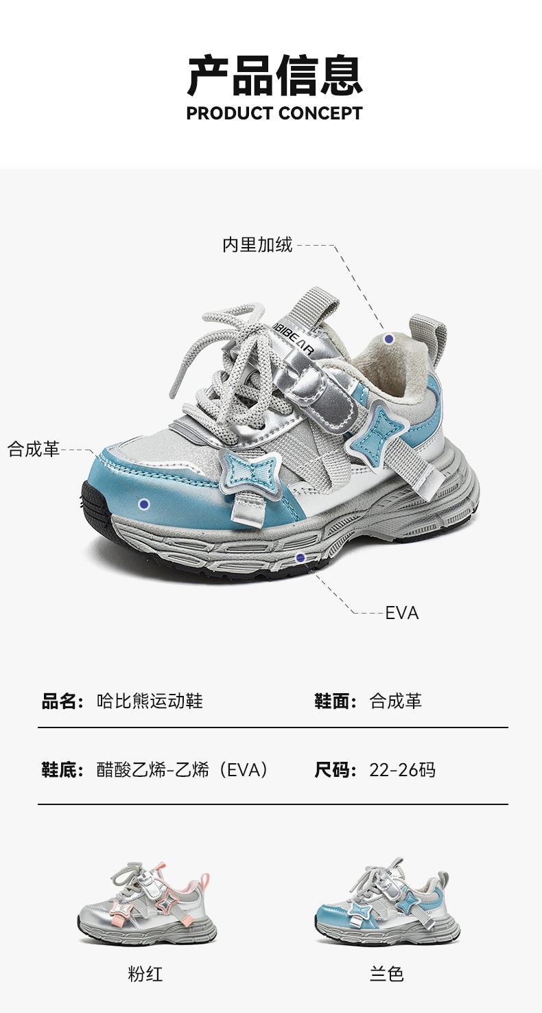 哈比熊加绒儿童运动鞋冬季防寒老爹鞋轻便小童休闲鞋棉鞋