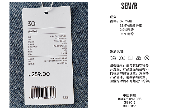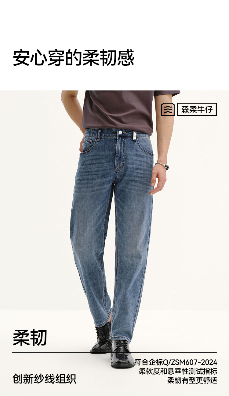 森柔|商场同款森马牛仔裤男夏季合体小脚裤2026新款经典舒弹长裤