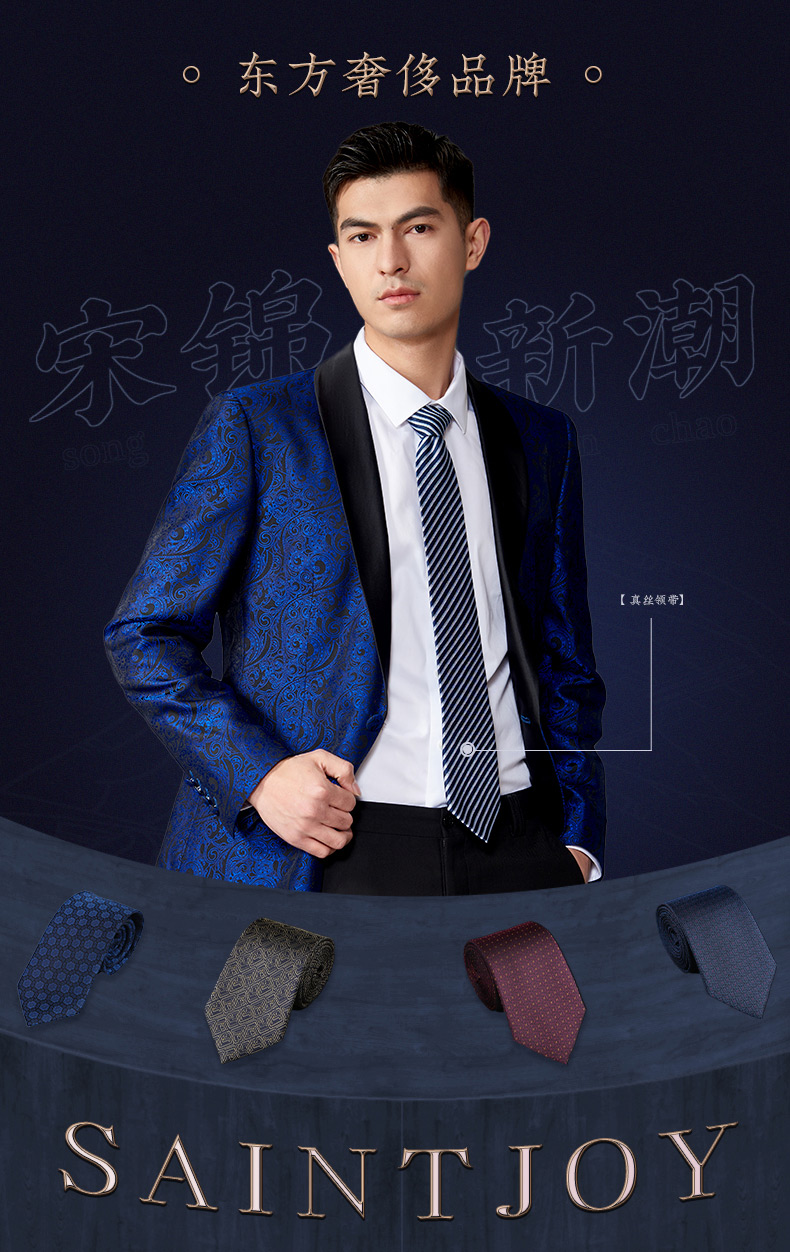 SAINTJOY/上久楷 真丝领带 粗斜纹蓝色 PZS21A11