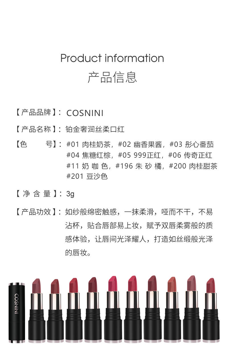 【哑光柔雾,柔润不干!】COSNINI口红防水不易掉色 不沾杯不脱色持久 生日礼物七夕情人节礼物-QB