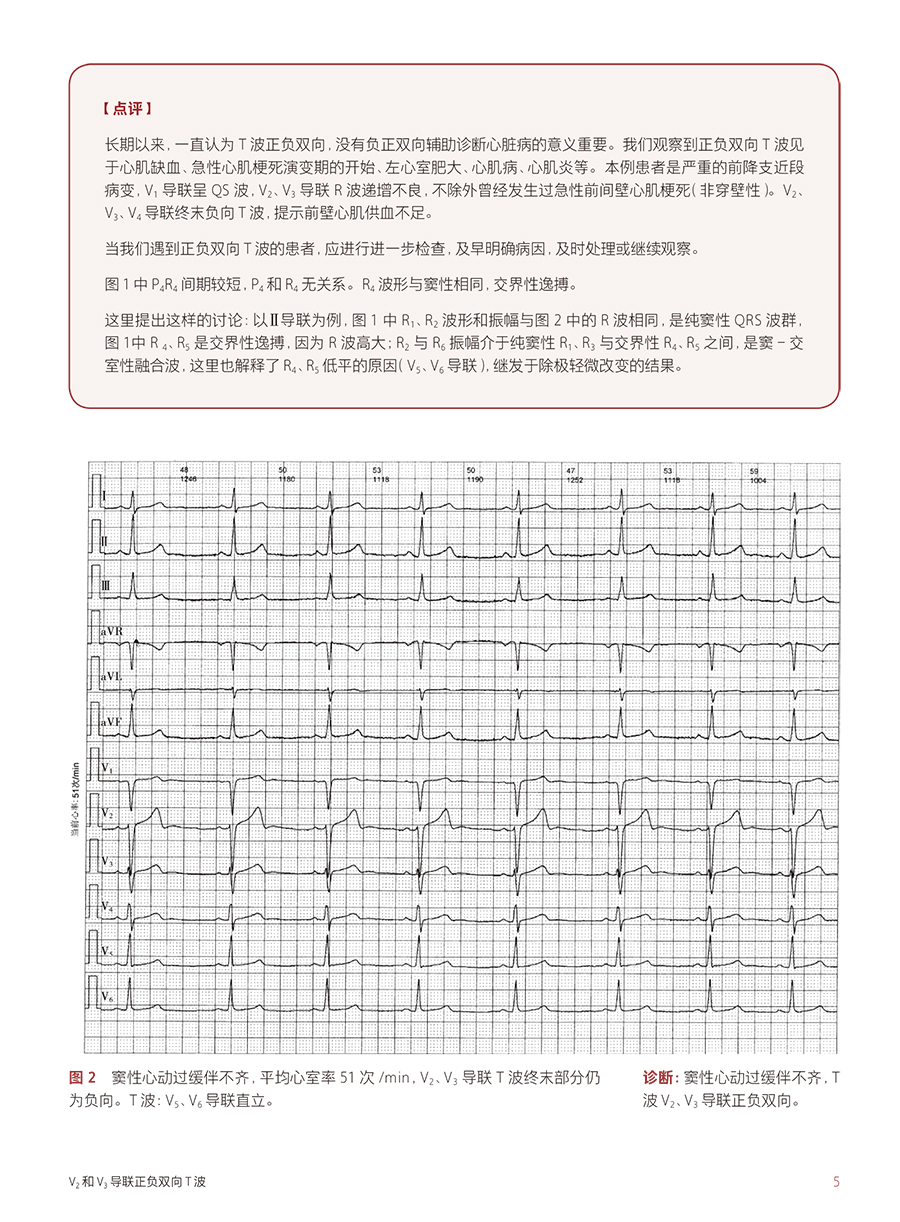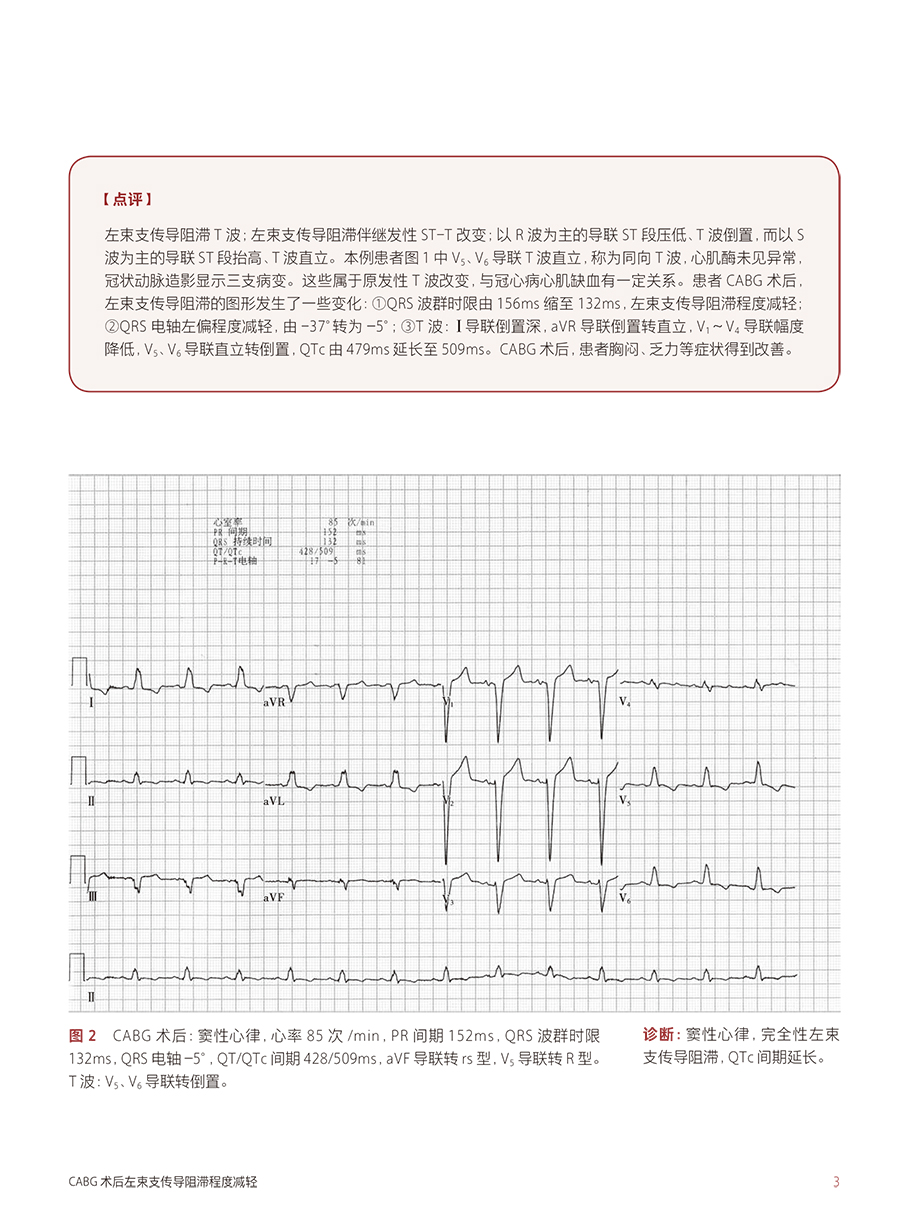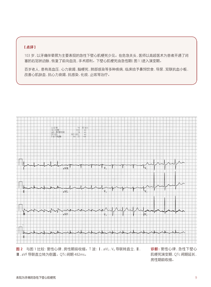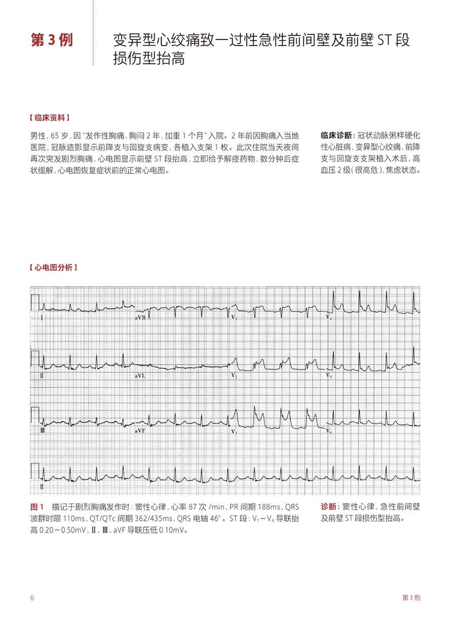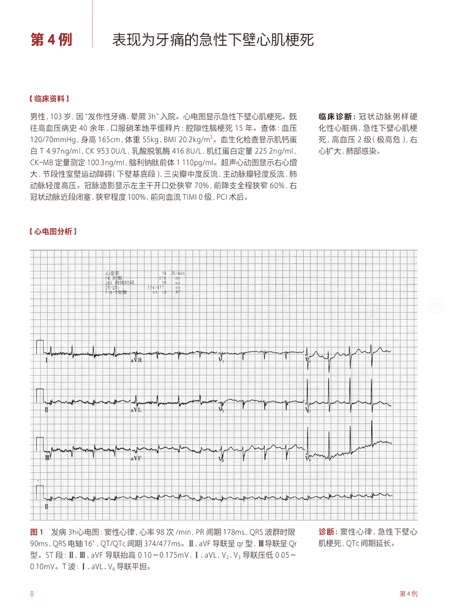 【1】以疾病为章,包括先天性心脏病、冠心病、心肌病、心律失常、起搏心电图及心血管系统疾病之外其他疾病等章;【2】复杂心电图包含图形复杂、病情复杂及病程中心电图变化与转归复杂等情况;【3】基本设计是1~2个对开页是一个案例,单页码是一组心电图,双页码是相关临床资料,及对诊断有关键作用的心电图表现分析,针对文字在心电图上加以细致标注;【4】为控制篇幅,同时又要展示给读者疾病转归与心电图变化的关系,将一部分病程中的心电图及关联紧密的临床资料以二维码的形式加以链接;【5】文字部分体现“临床精研”的深度和广度。
