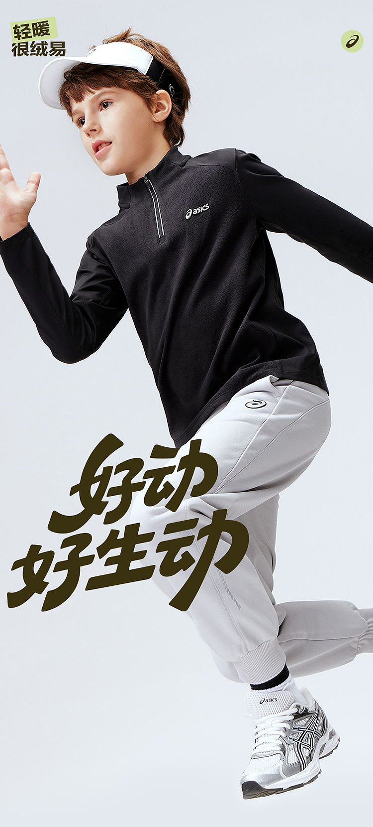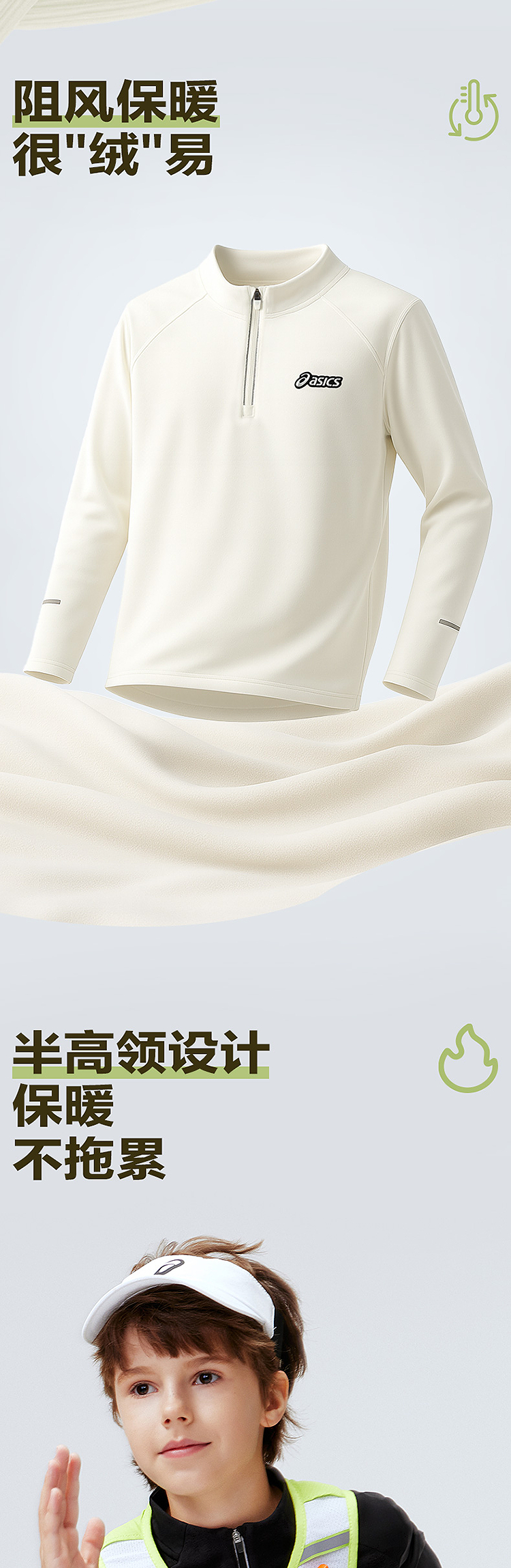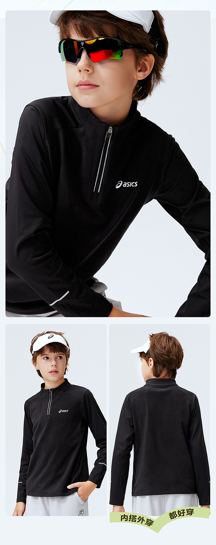 ASICS/亚瑟士儿童2026年新款长袖T恤半拉链吸湿速干弹力舒适