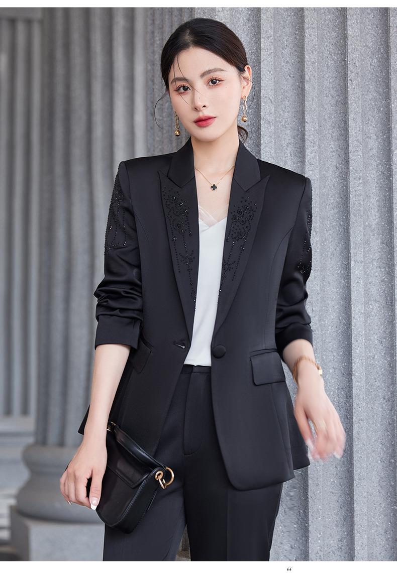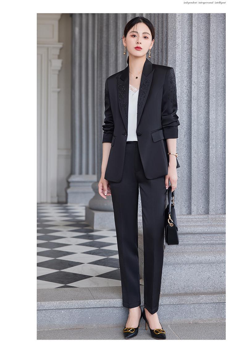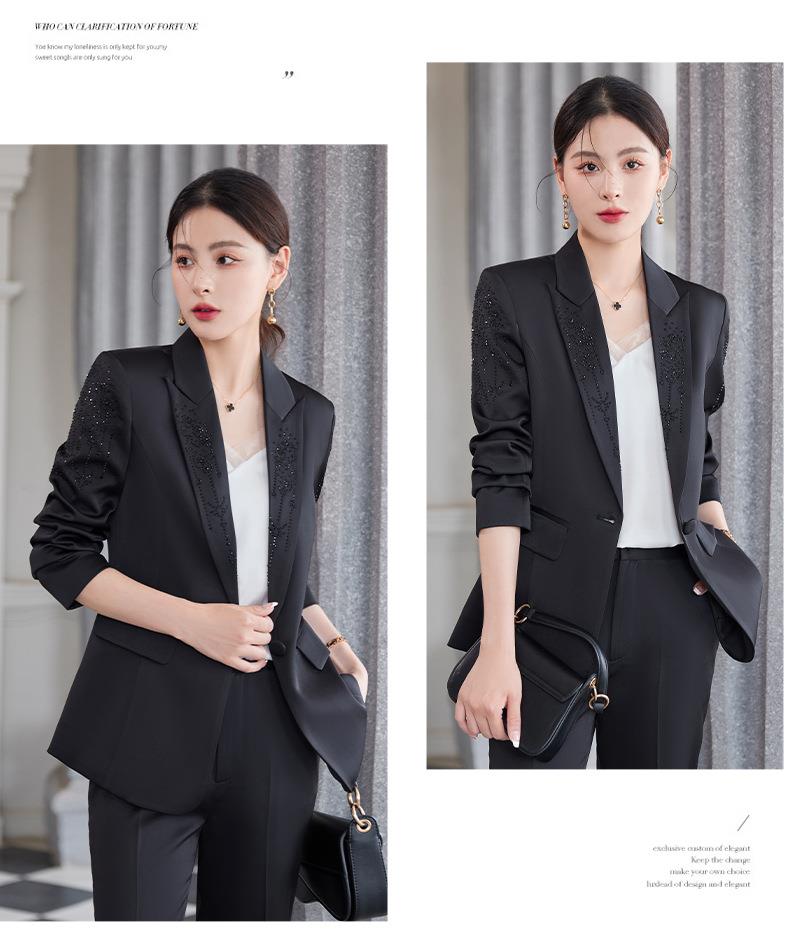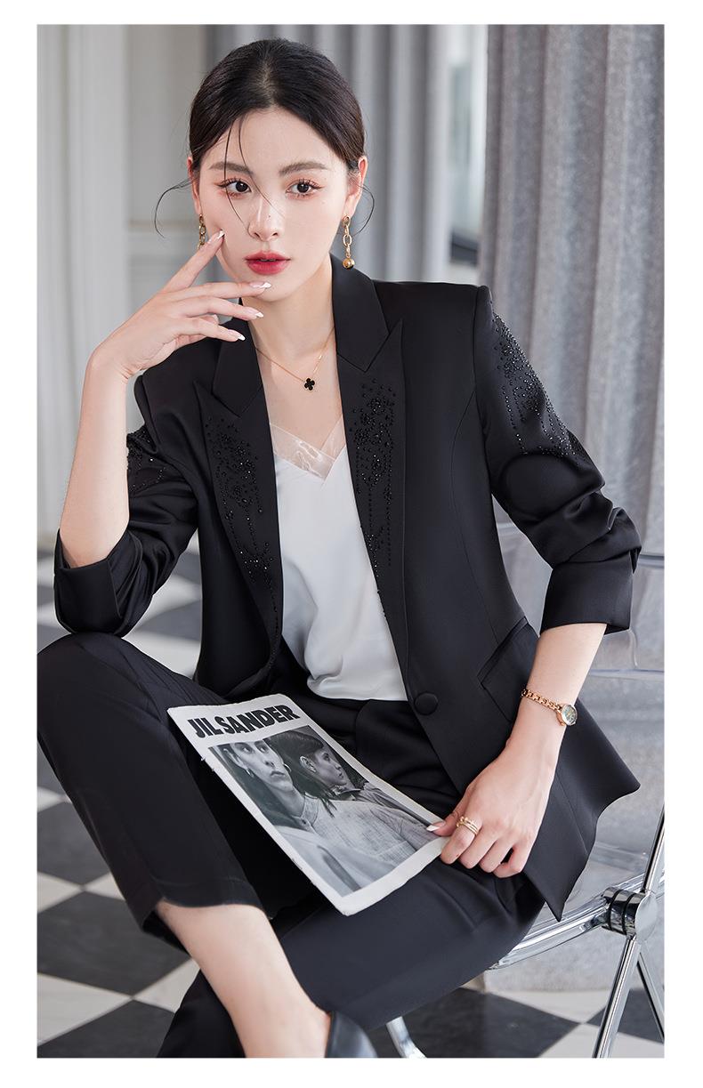 娜璐多 气质优雅女士西装套装2023年春秋季新款优雅商务通勤烫钻长袖西服