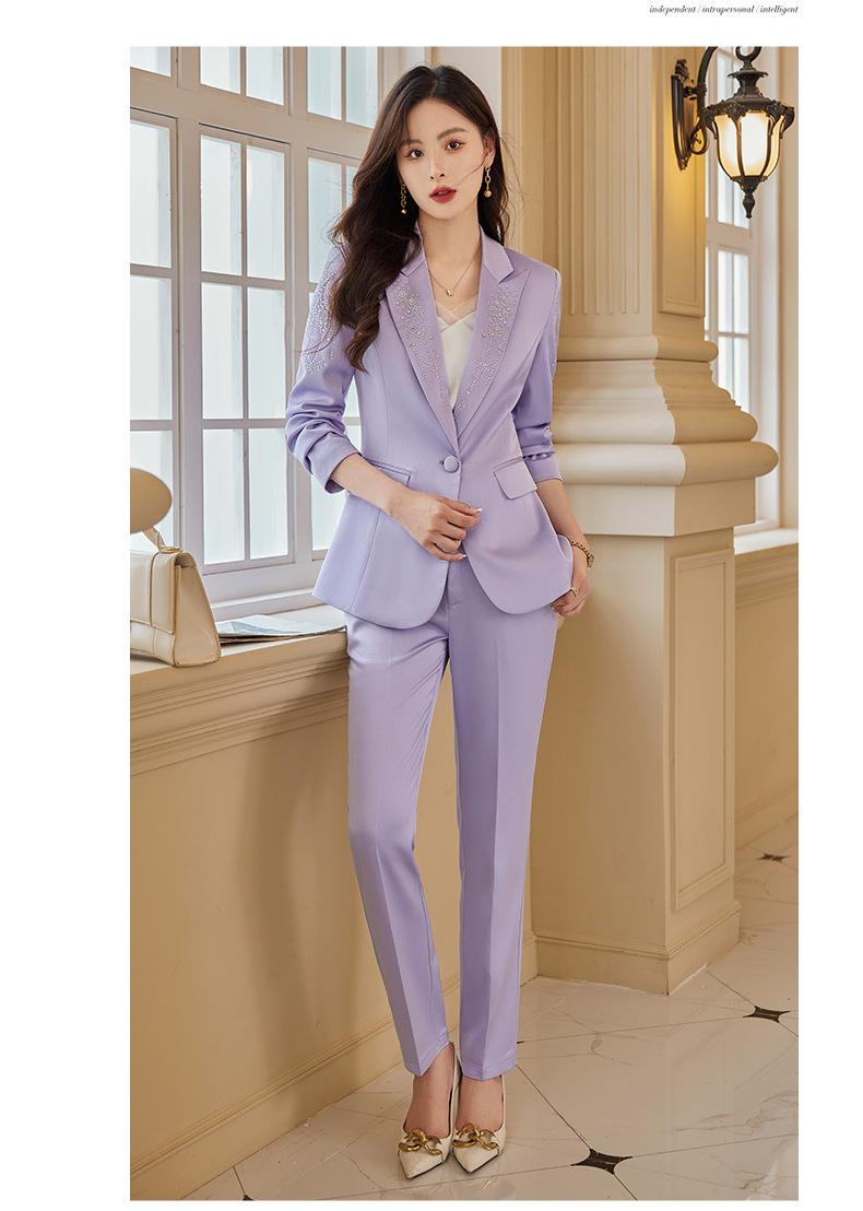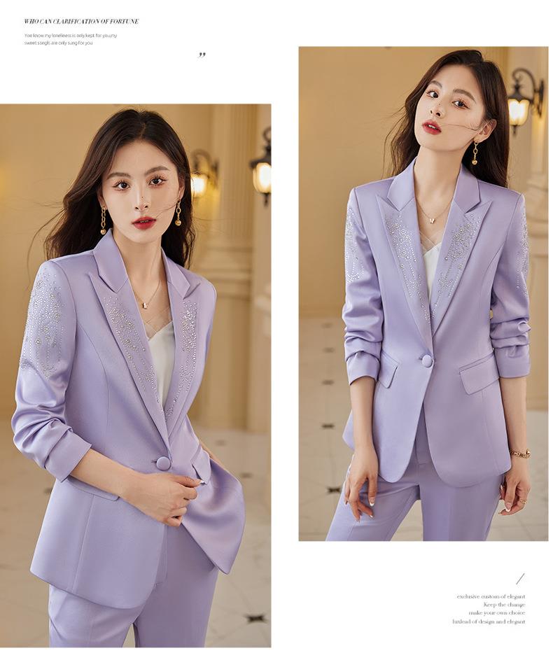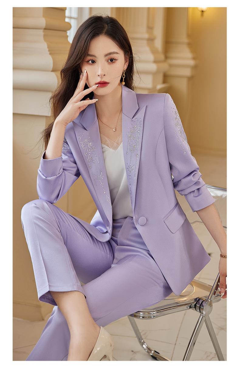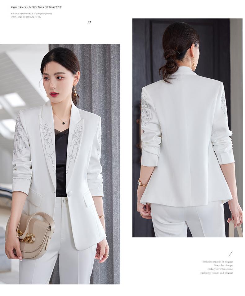 娜璐多 气质优雅女士西装套装2023年春秋季新款优雅商务通勤烫钻长袖西服