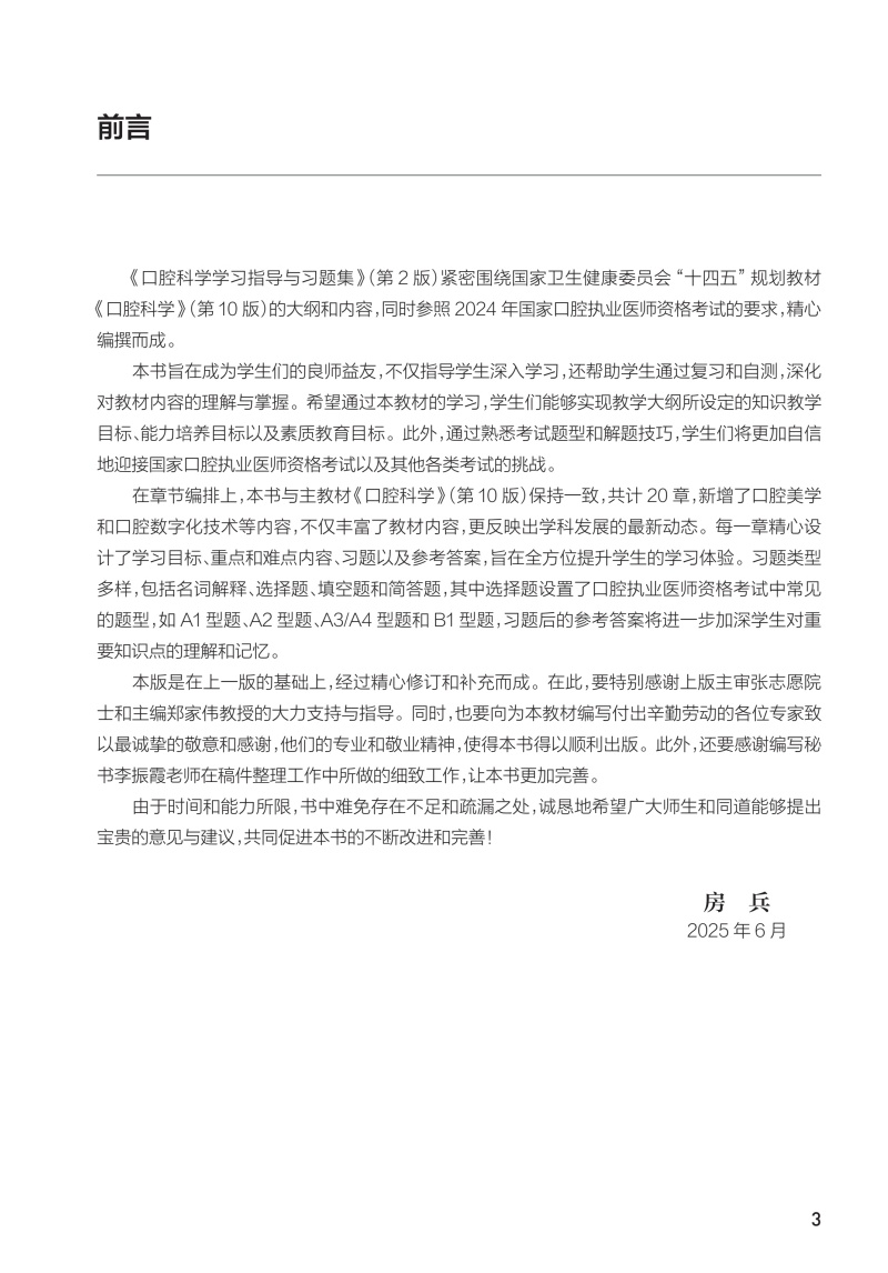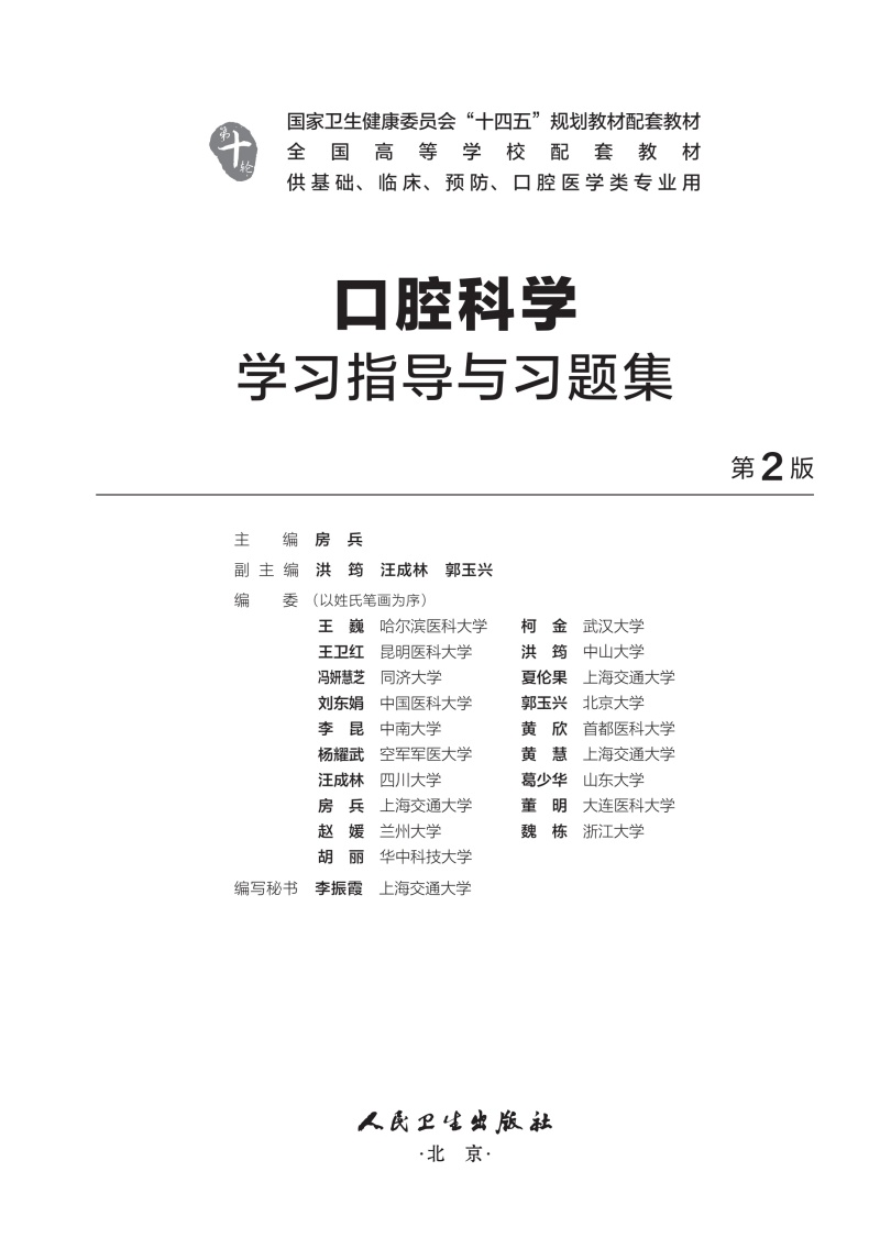 口腔科学学习指导与习题集 第2二版 十四五规划教材配套教材全国高等学校配套教材 房兵 供基础临床口腔医学类专业用人民卫生出版社