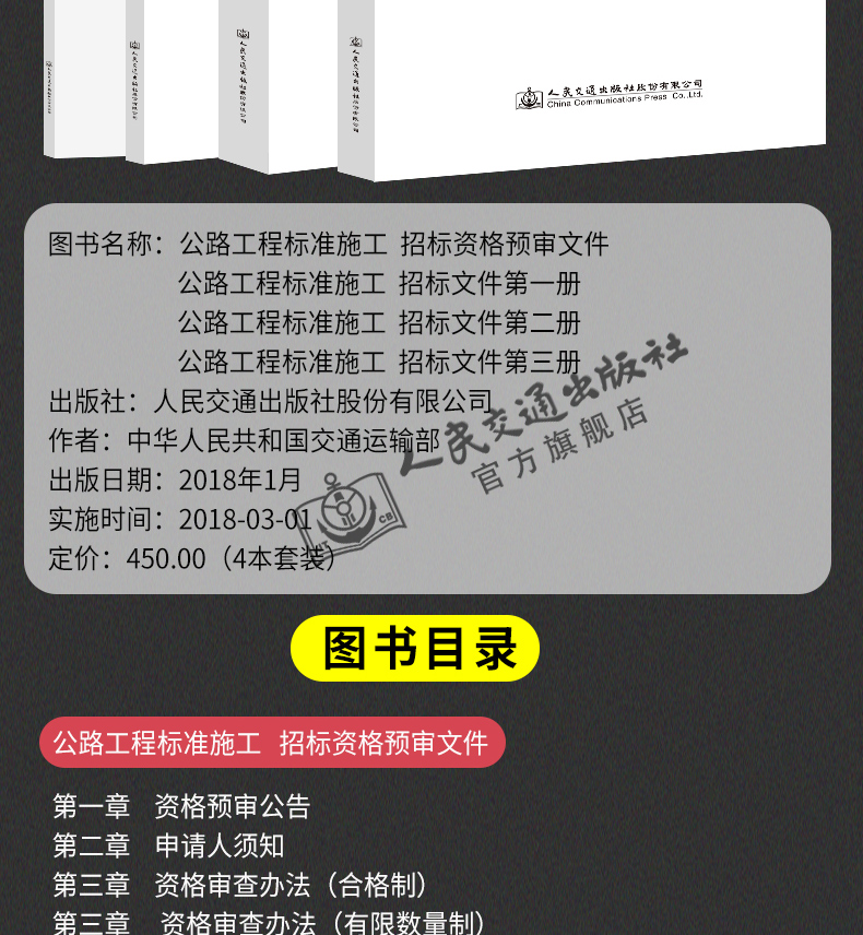 现货2018公路工程标准施工招标文件2018版上中下 +资格预审文件四本套装(全4册)商务文件+技术规范+工程量清单计价规则