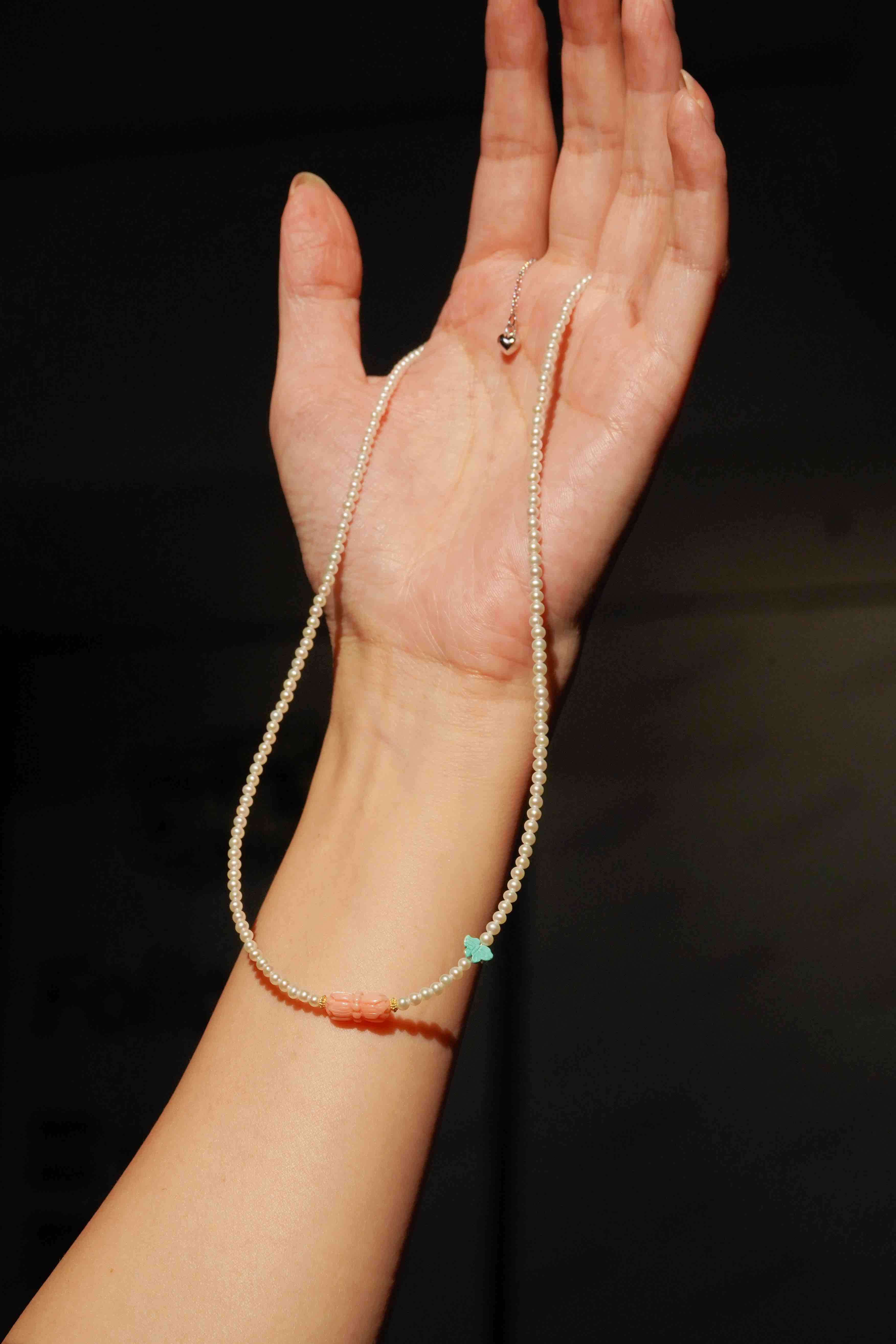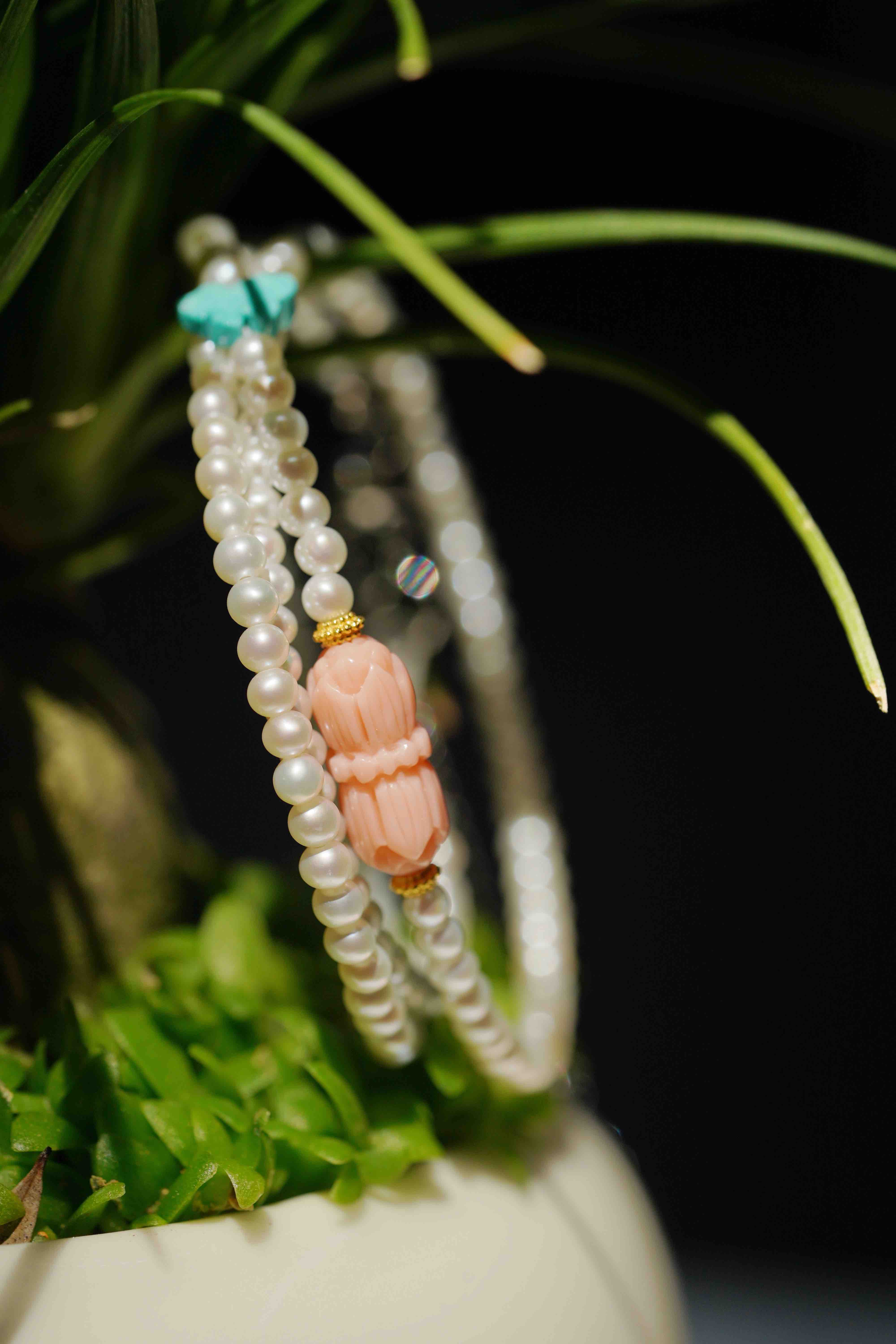 但是并蒂莲花的粉珊瑚,翠爽的绿松