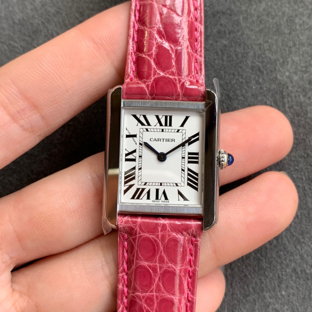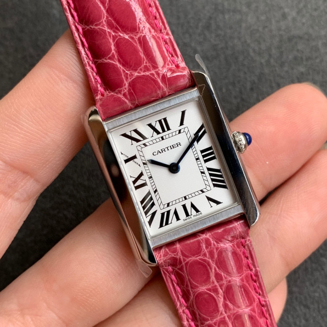 zui高版本 卡地亚TANK坦克系列 新款银色 原装折叠扣 美洲鳄鱼皮 瑞士朗达石英机芯。