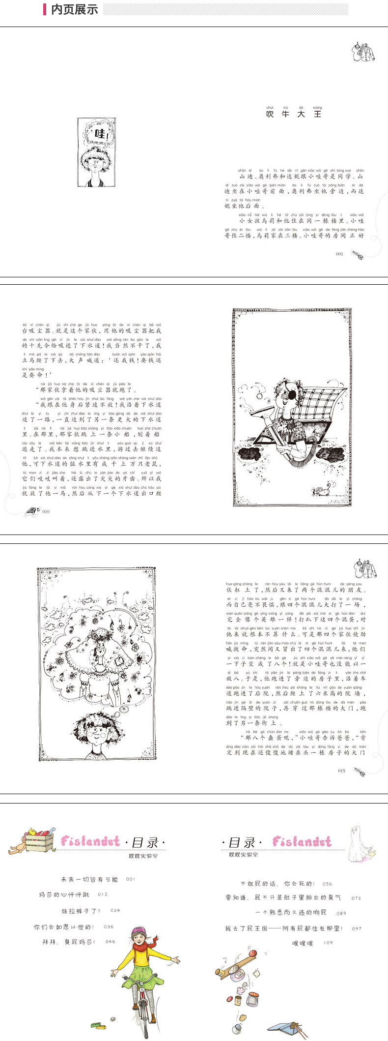 国际大奖小说注音版第三辑包括《农场疑案》《天才小狼的烦恼》《鳄鱼公主》《本和我》《男孩向前冲》《胖迪迪》《吹牛大王小哇哥》《遇见奥兹》《噗噗实验室》《圣诞星愿》共十部当代经典儿童文学作品。《本和我》:创造伟大人物也没什么了不起!《农场疑案》:逻辑环保加侦探,老狗来破案!《天才小狼的烦恼》:宽恕天才学生也会为作文烦恼?!《鳄鱼公主》:规划让孩子学会表达,让家长学会倾听!《男孩向前冲》:追梦想要去的地方,怎么能在半路就返航?《胖迪迪》:自信特别胖胖特别棒!《吹牛大王小哇哥》:诚信吹牛皮容易,圆牛皮难!《噗噗实验室》:勇气打破对放臭屁的坏印象!《遇见奥兹》:责任将心比心,谁说小狗不会忧郁?