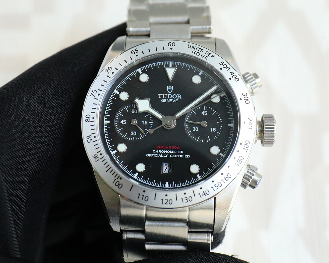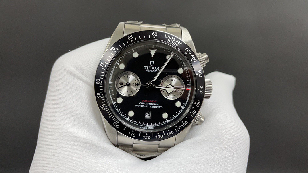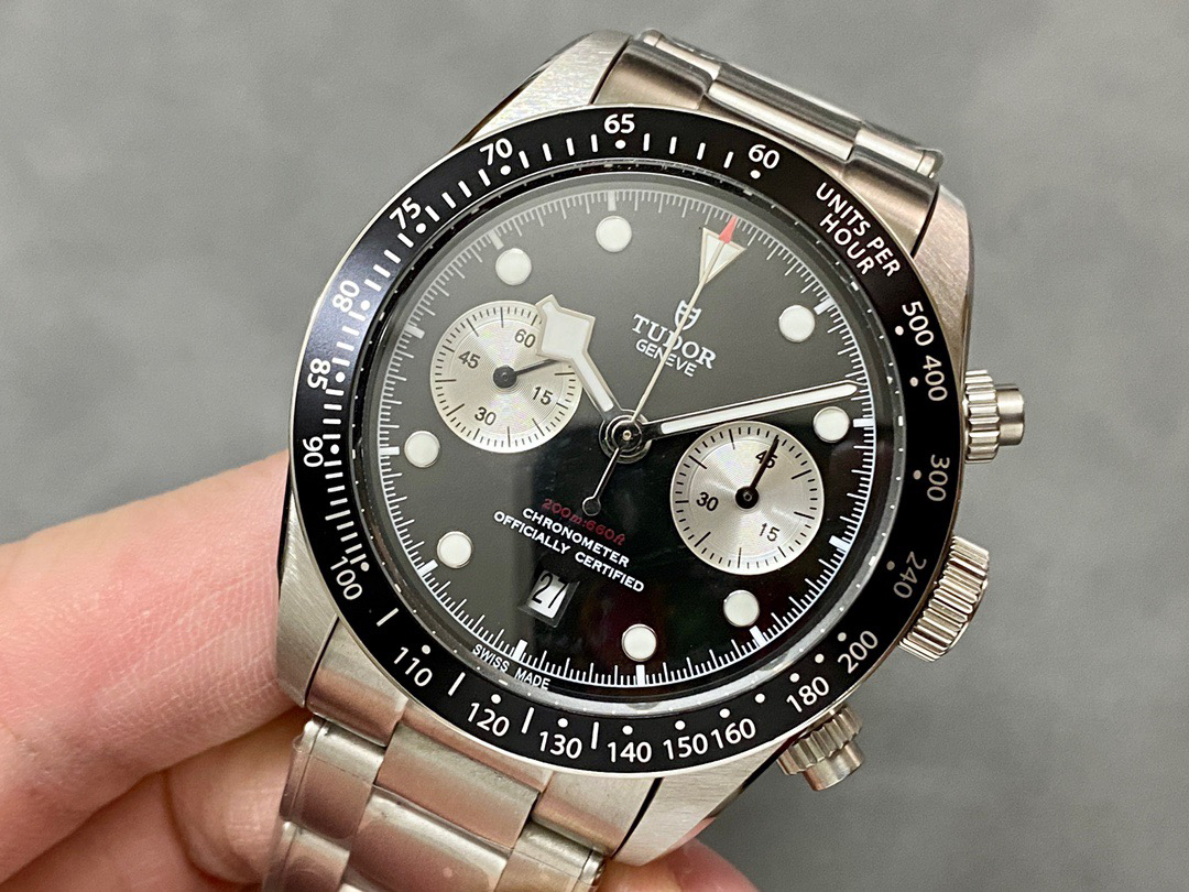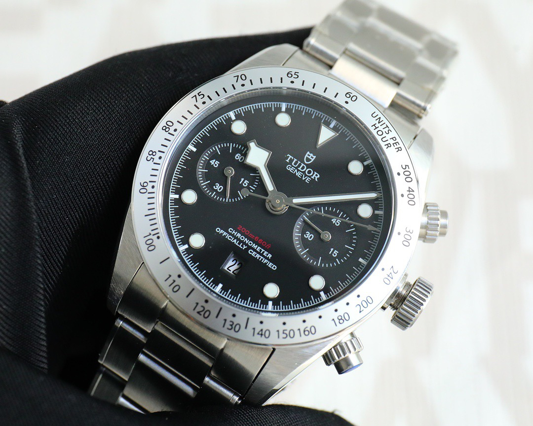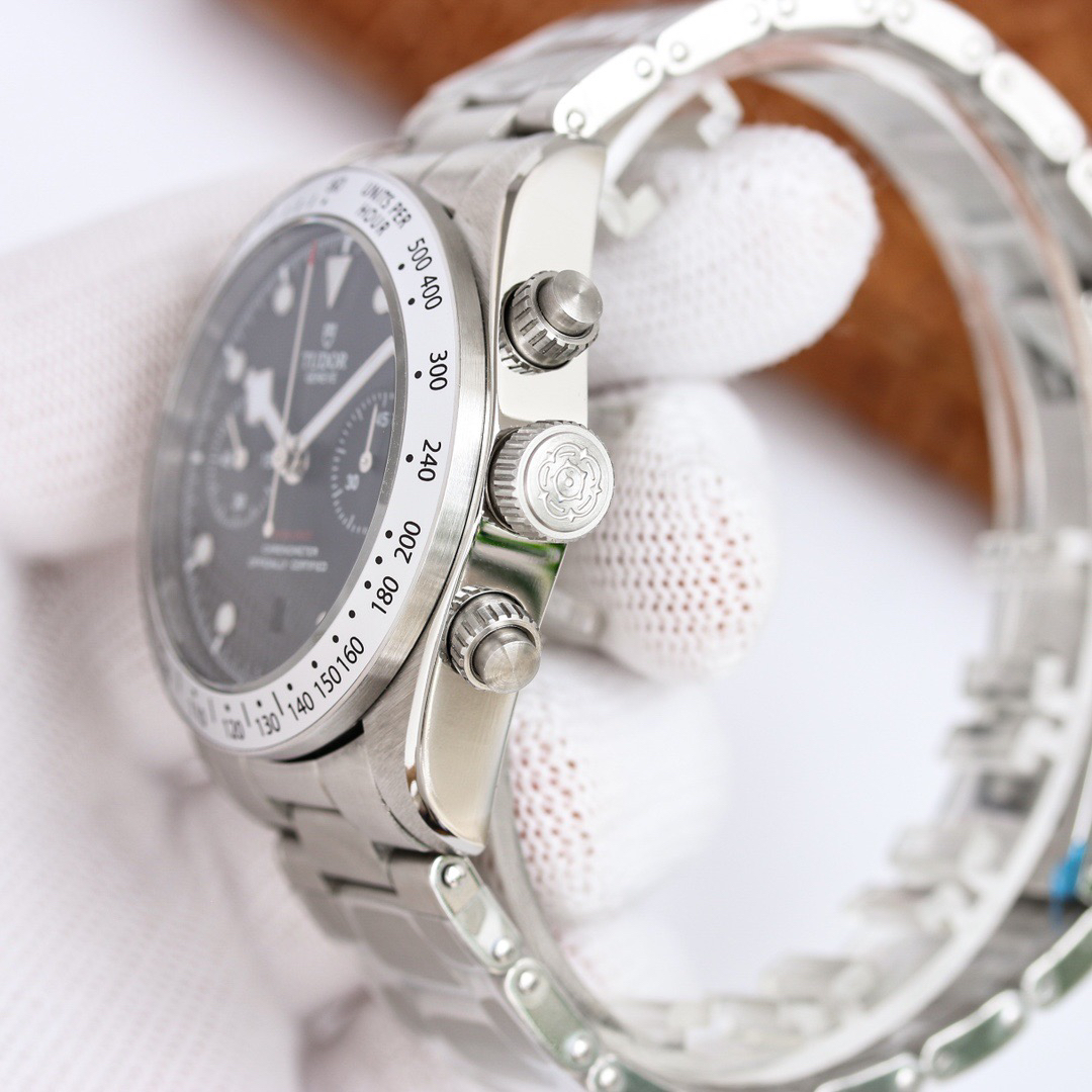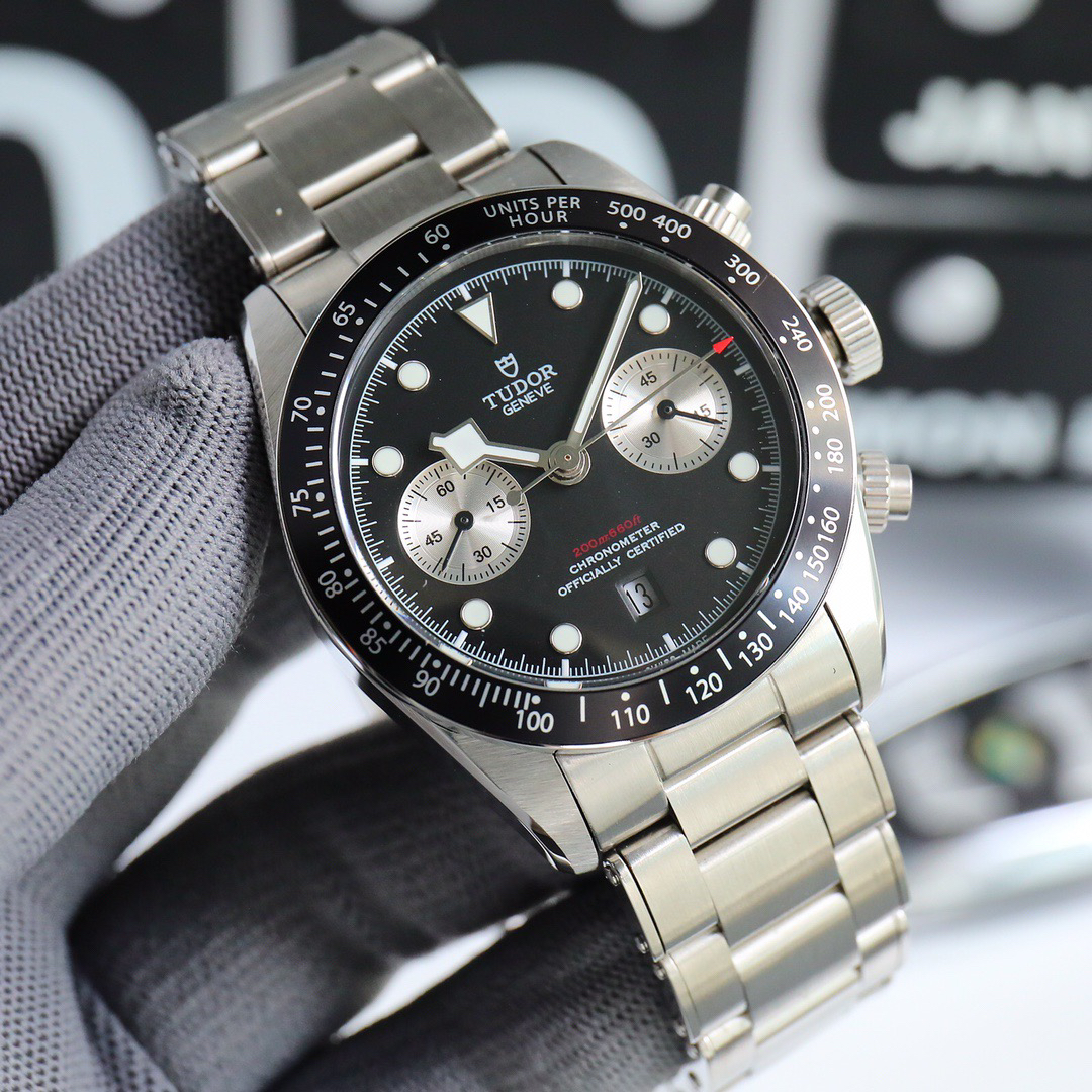 NOOB Maker出品,必属精品‼️TUDOR帝舵—碧湾计时型(Black Bay Chrono)精钢款腕表!🆕 细致刻画表盘完美对称,纹路清晰、提升质感与美感!采用磨砂及磨光搭配正品一致的316L精钢打造!🔥 直径41MM!圆拱形表盘一比一完美还原!帝舵标志性雪花指针 更具代表!搭载全新亚洲定制版7750多功能机械机芯,还原正品所有功能,完美呈现计时功能!旋入式把头深度防水,超强夜光,高端工艺品质上乘!计时腕表的外观个性十足,兼备运动气息与时髦风尚‼️