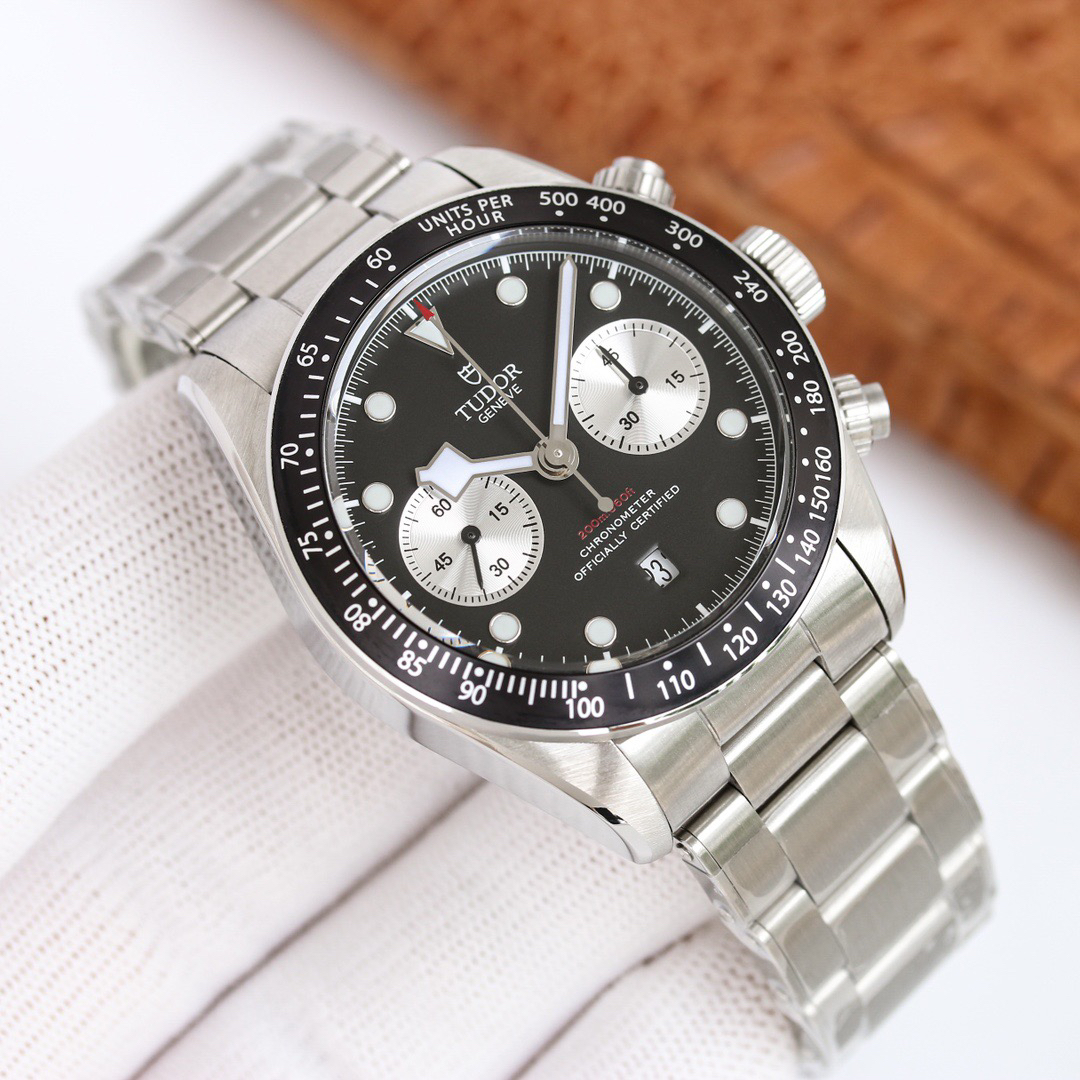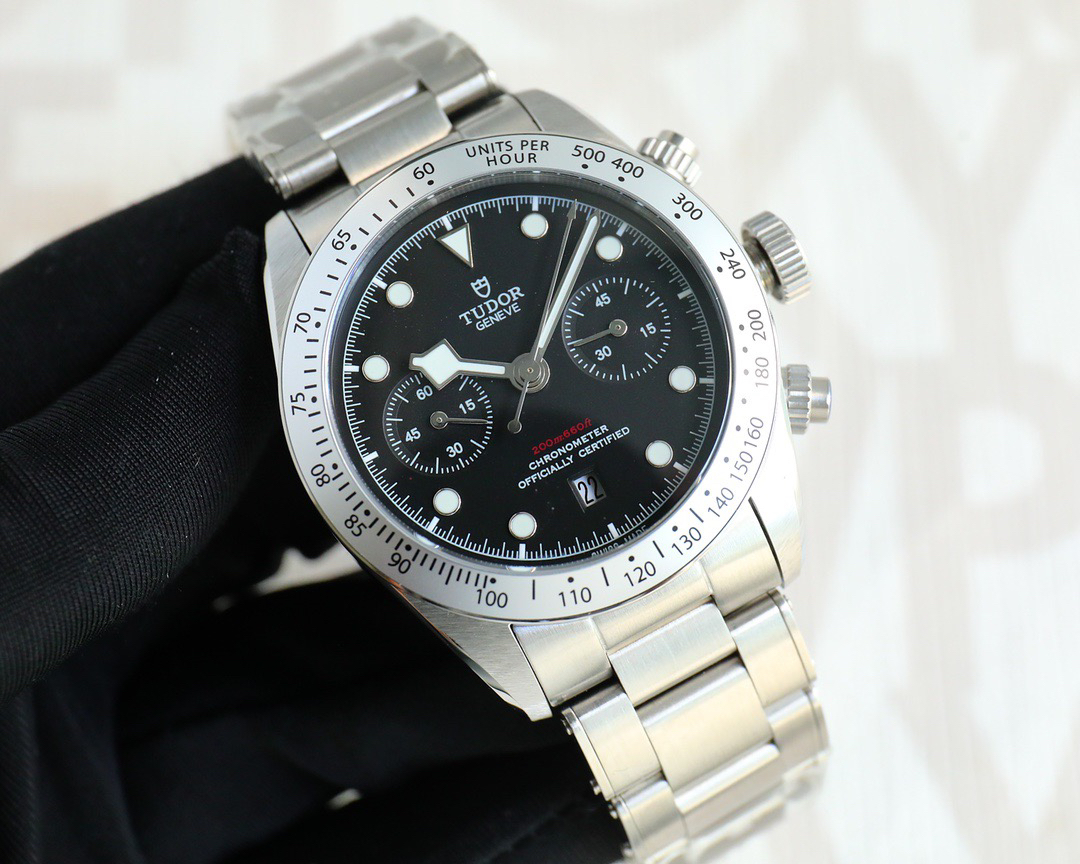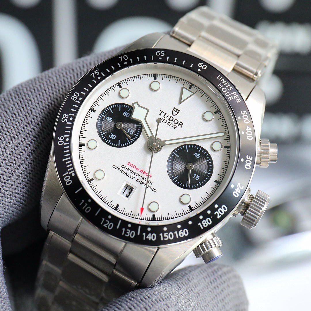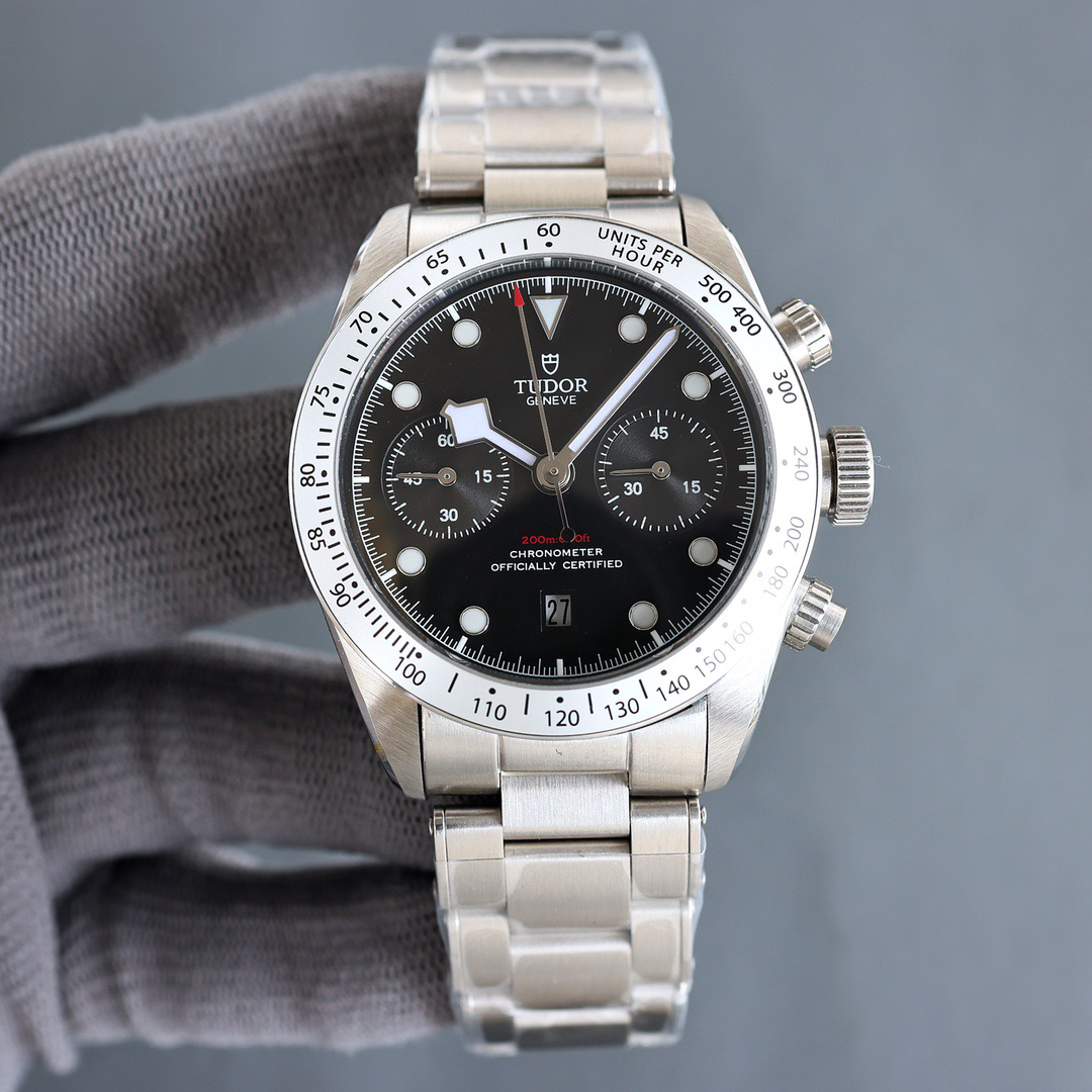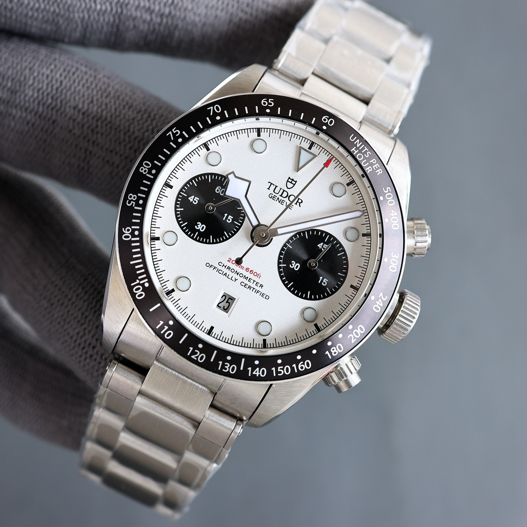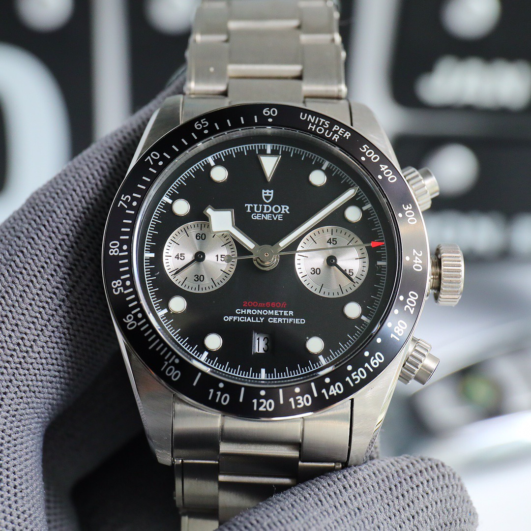 NOOB Maker出品,必属精品‼️TUDOR帝舵—碧湾计时型(Black Bay Chrono)精钢款腕表!🆕 细致刻画表盘完美对称,纹路清晰、提升质感与美感!采用磨砂及磨光搭配正品一致的316L精钢打造!🔥 直径41MM!圆拱形表盘一比一完美还原!帝舵标志性雪花指针 更具代表!搭载全新亚洲定制版7750多功能机械机芯,还原正品所有功能,完美呈现计时功能!旋入式把头深度防水,超强夜光,高端工艺品质上乘!计时腕表的外观个性十足,兼备运动气息与时髦风尚‼️