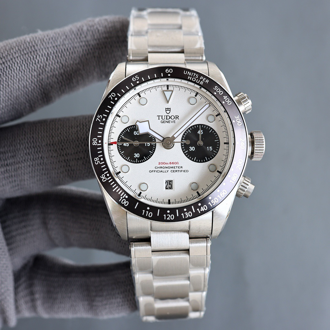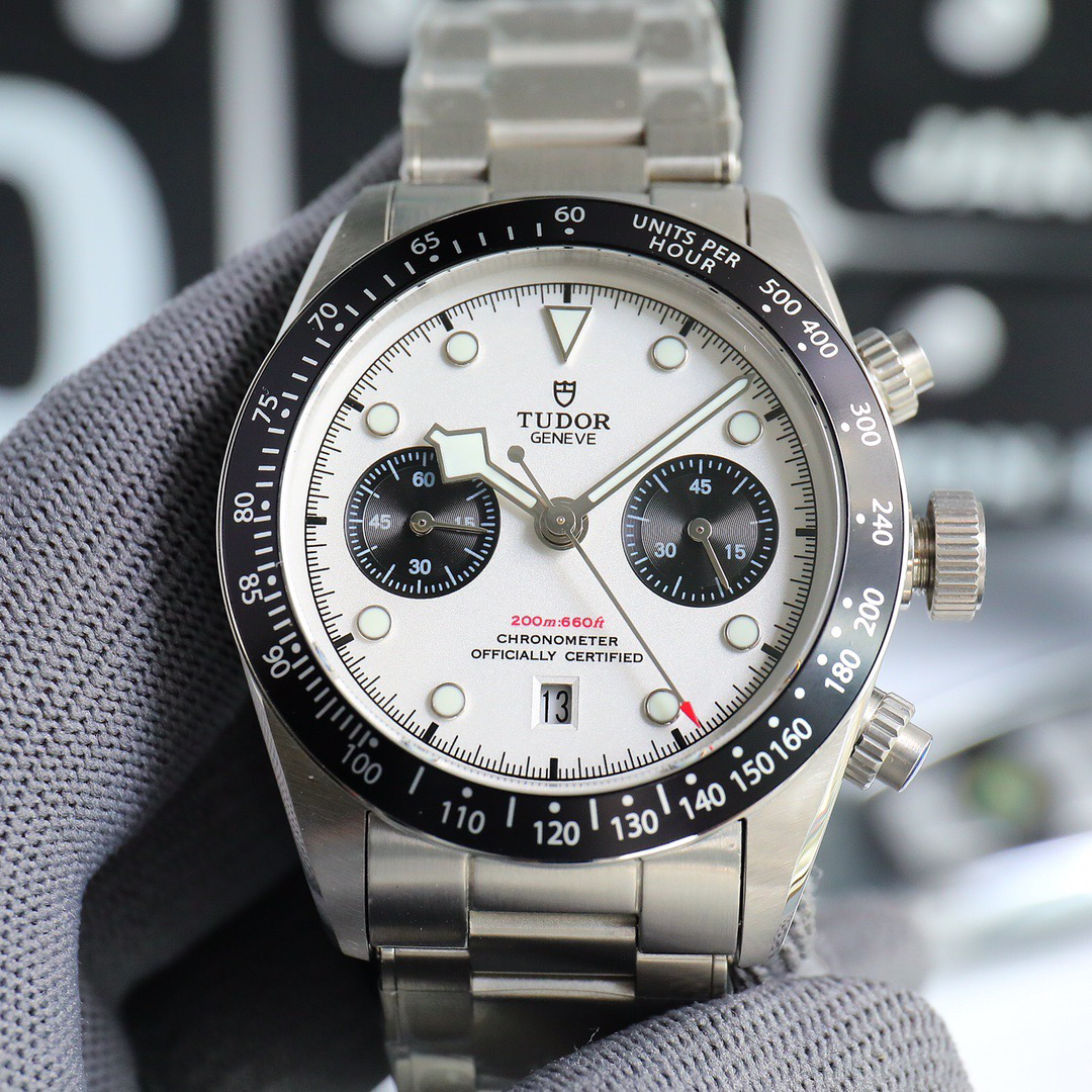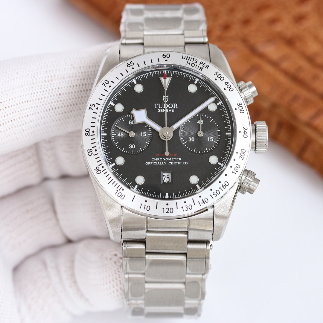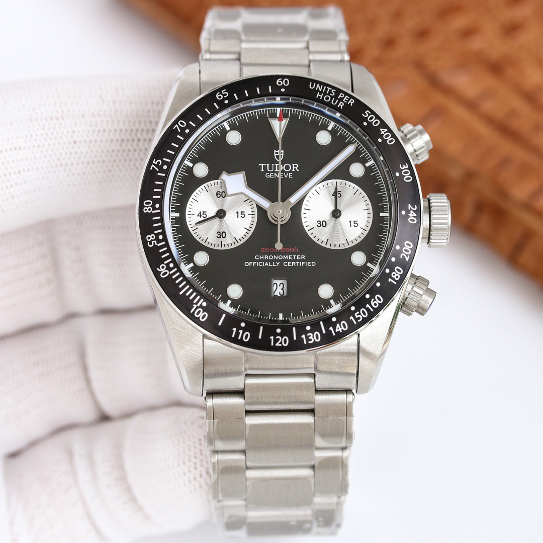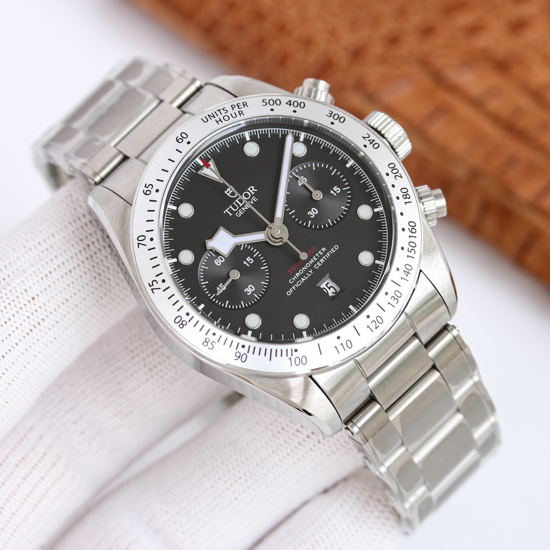 NOOB Maker出品,必属精品‼️TUDOR帝舵—碧湾计时型(Black Bay Chrono)精钢款腕表!🆕 细致刻画表盘完美对称,纹路清晰、提升质感与美感!采用磨砂及磨光搭配正品一致的316L精钢打造!🔥 直径41MM!圆拱形表盘一比一完美还原!帝舵标志性雪花指针 更具代表!搭载全新亚洲定制版7750多功能机械机芯,还原正品所有功能,完美呈现计时功能!旋入式把头深度防水,超强夜光,高端工艺品质上乘!计时腕表的外观个性十足,兼备运动气息与时髦风尚‼️